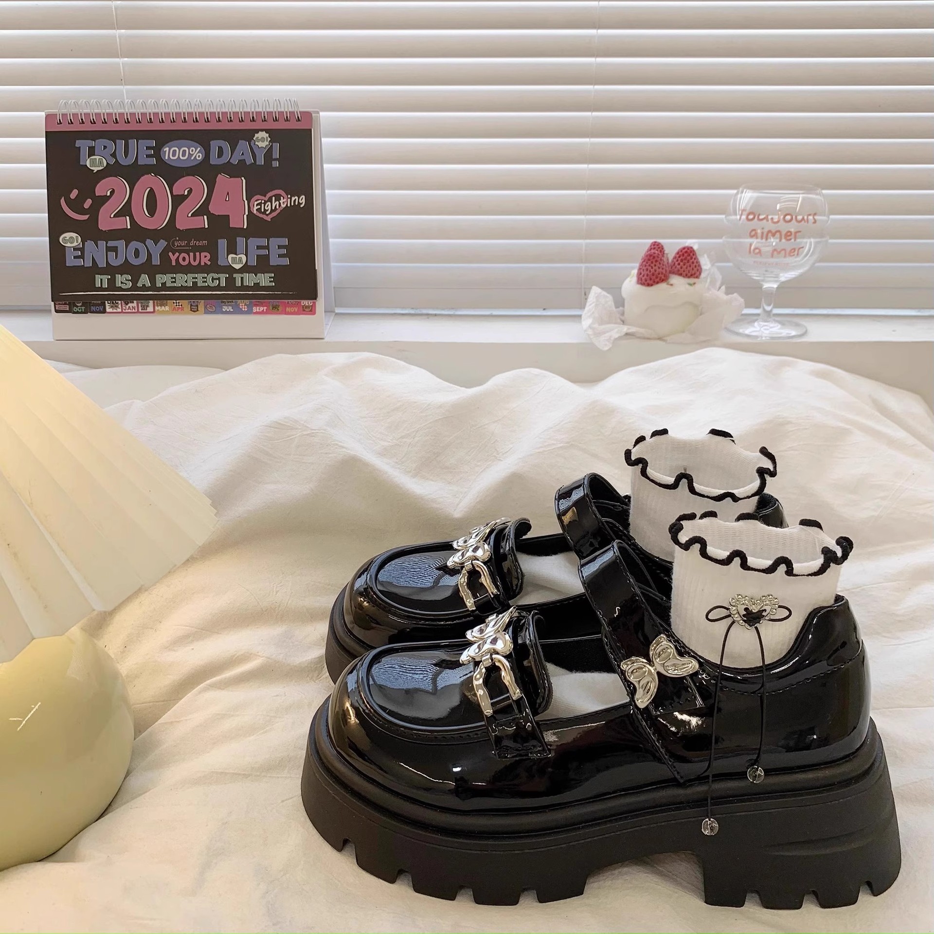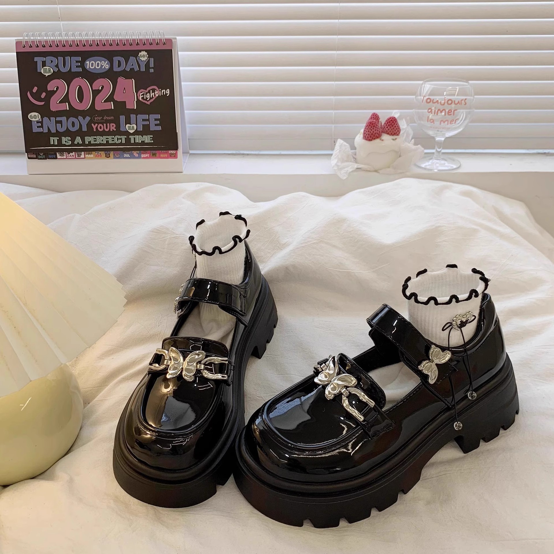 소녀 검은 가죽 신발 봄과 가을 메리 제인 싱글 레이어 신발 2025 봄과 가을 새로운 영국 스타일 공주 두꺼운 단독 웨스턴 스타일 신발스토어 가기
