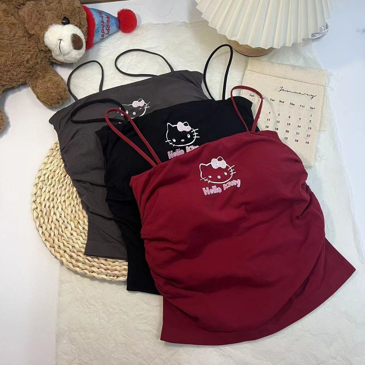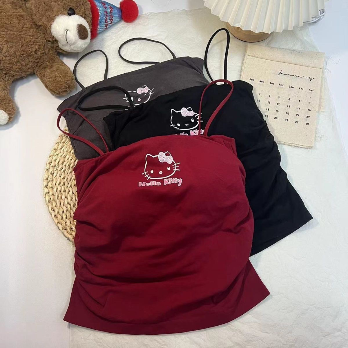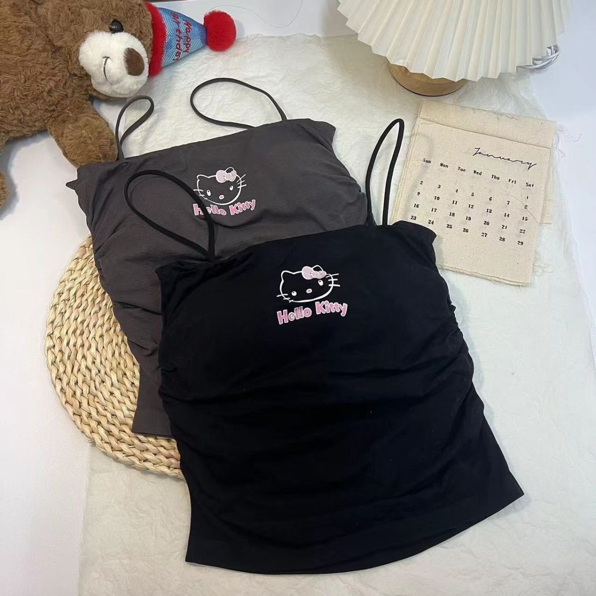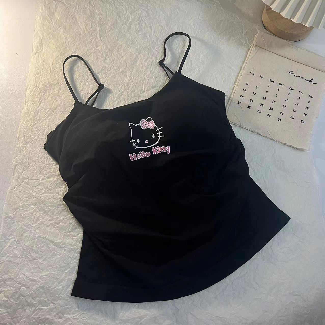 키티 슬링 가슴 패드 아메리칸 스타일 작은 조끼 여성 외부 착용 내부 브래지어 원피스 베이스 민소매 탑스토어 가기