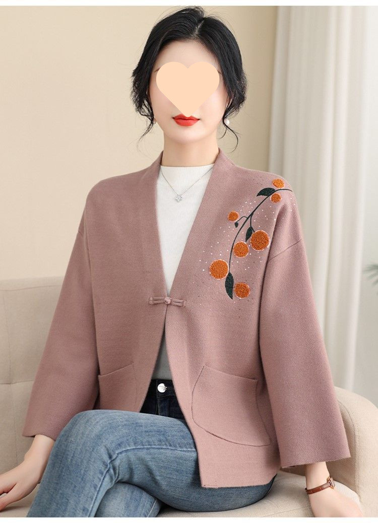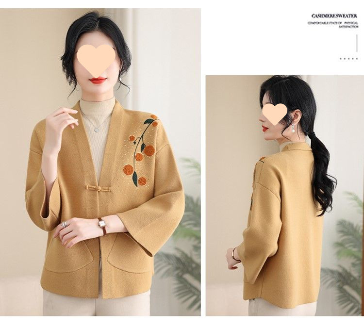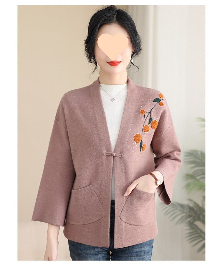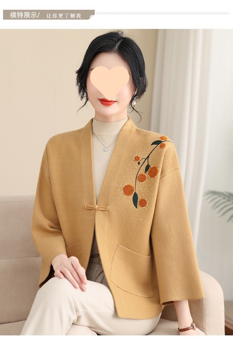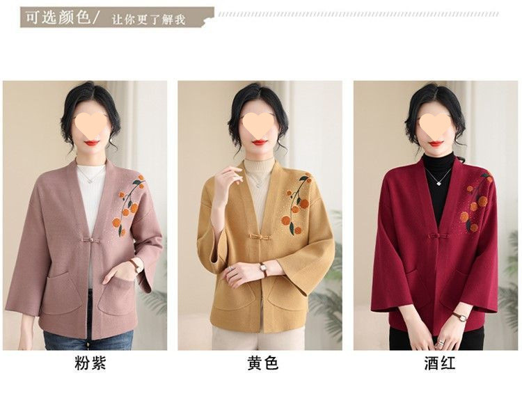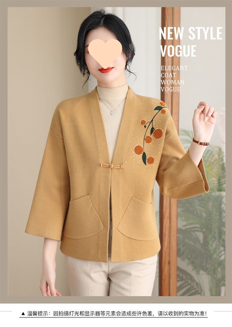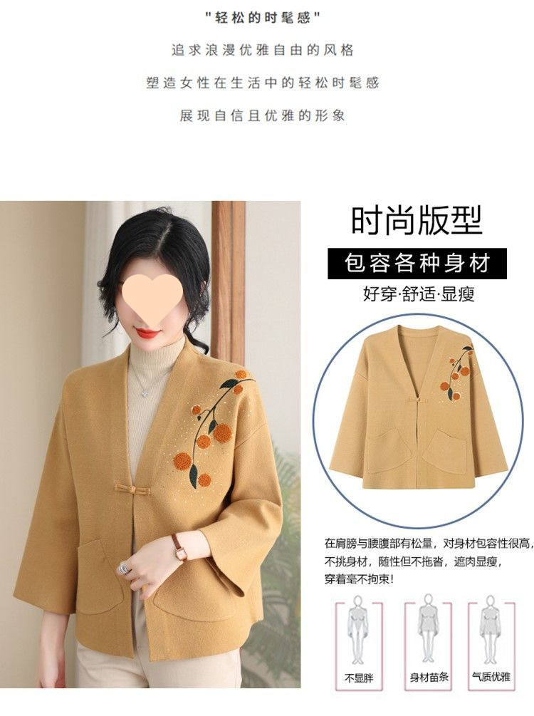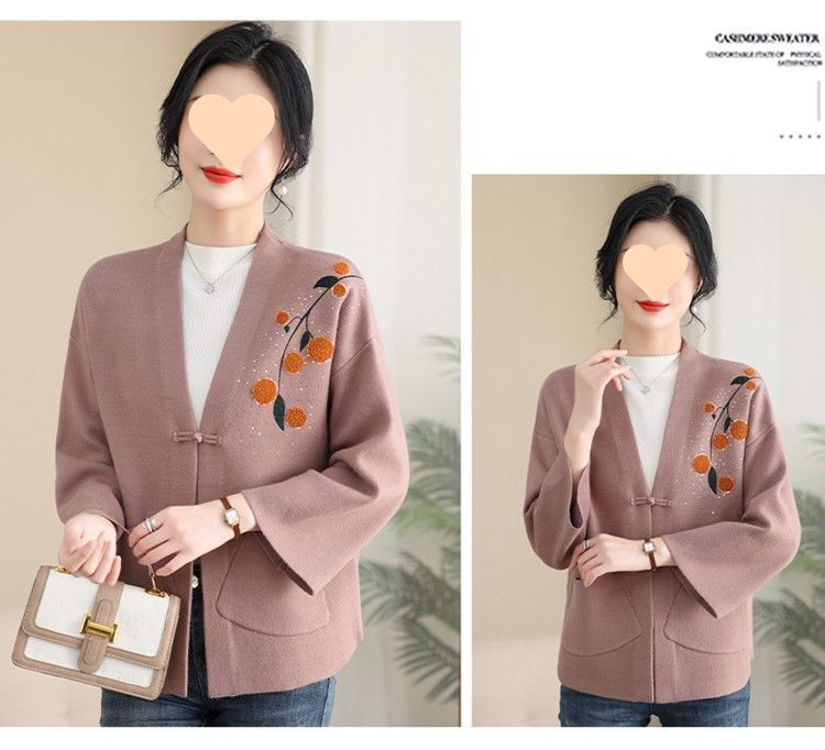 A6C 새로운 어머니 봄 니트 카디건 웨스턴 스타일 50 세 중년 여성의 봄과 가을 짧은 스웨터 외부 착용 V-Neck스토어 가기