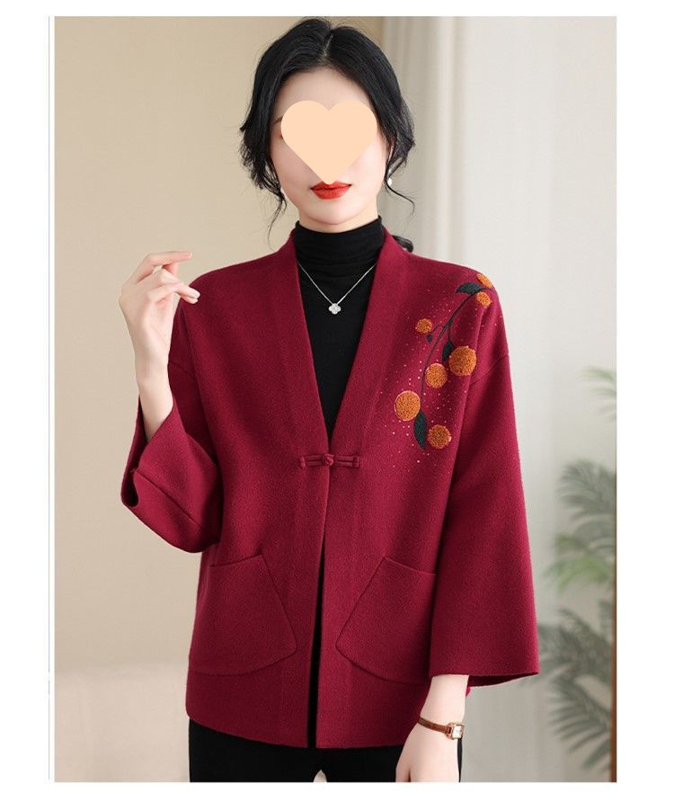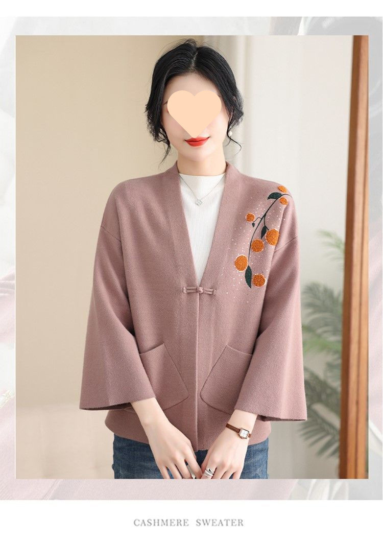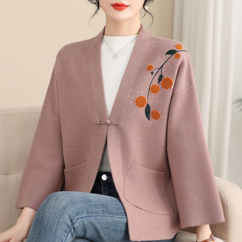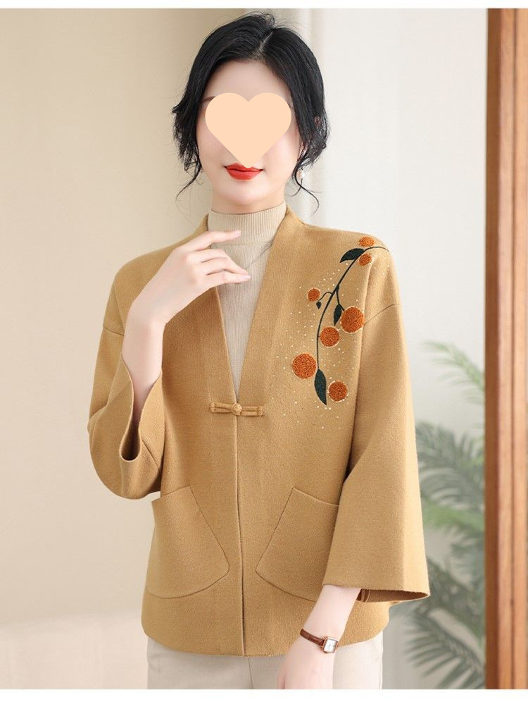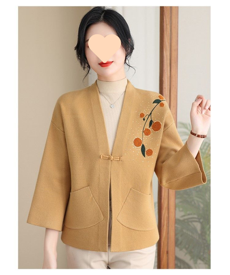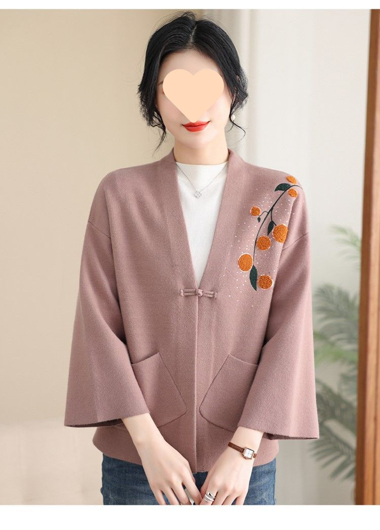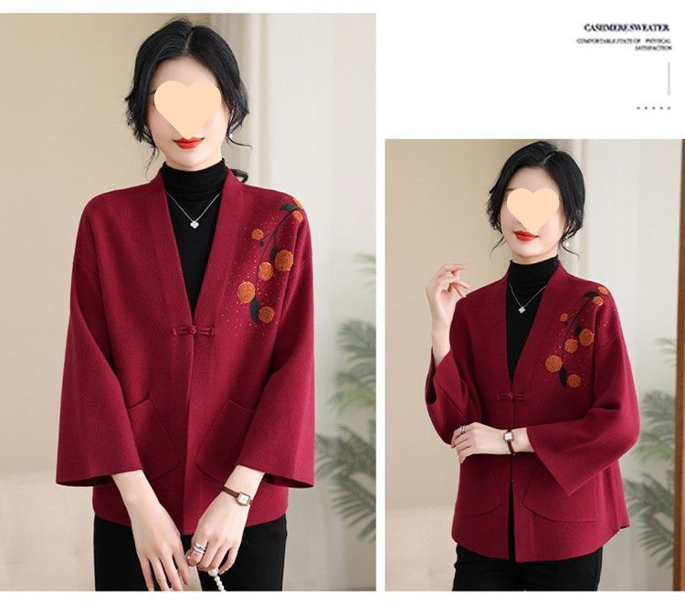 A6C 새로운 어머니 봄 니트 카디건 웨스턴 스타일 50 세 중년 여성의 봄과 가을 짧은 스웨터 외부 착용 V-Neck스토어 가기