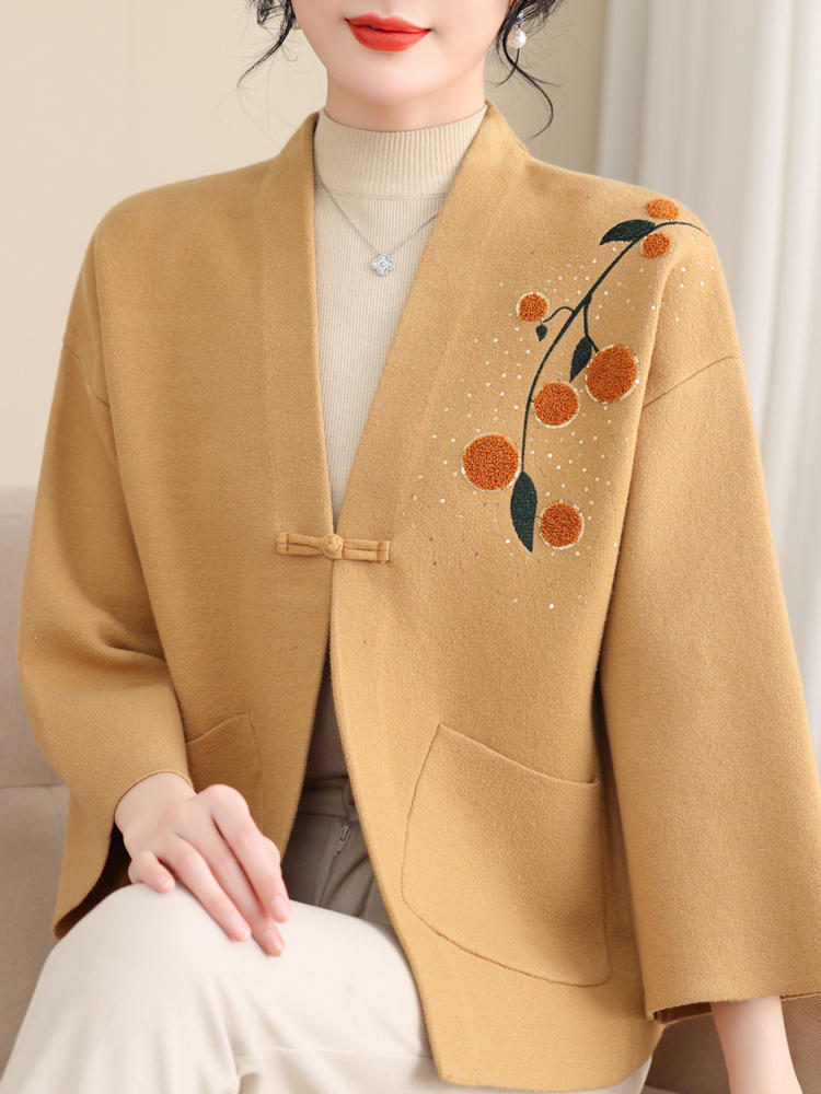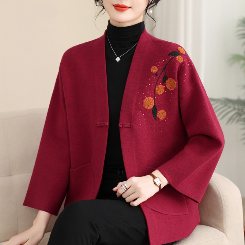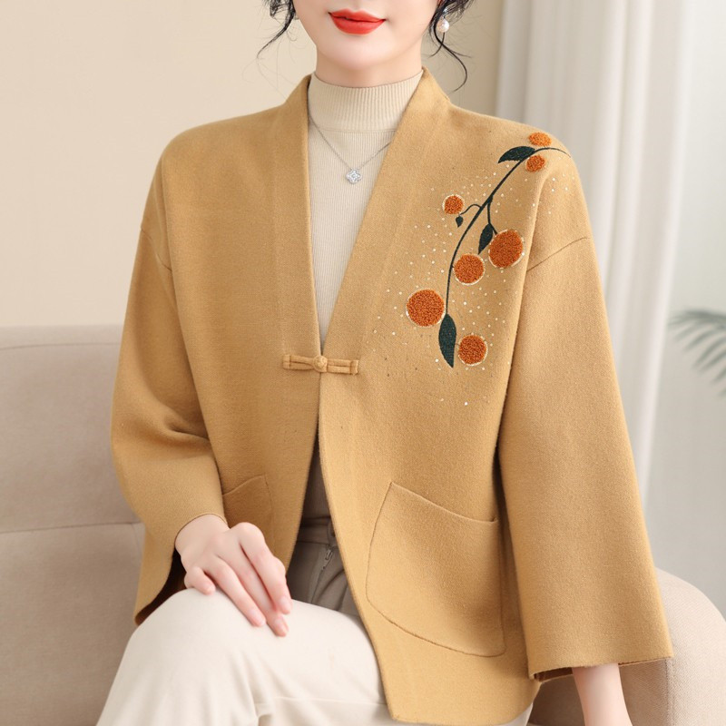 A6C 새로운 어머니 봄 니트 카디건 웨스턴 스타일 50 세 중년 여성의 봄과 가을 짧은 스웨터 외부 착용 V-Neck