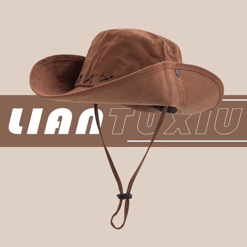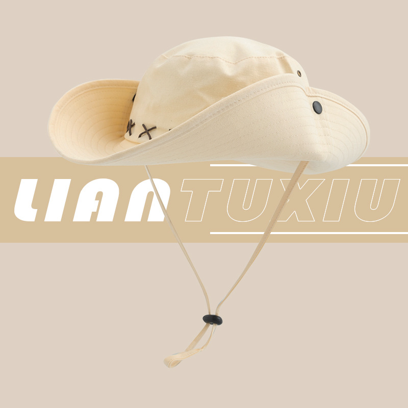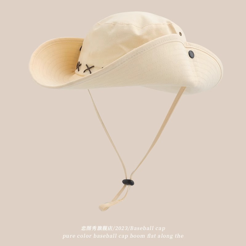 여성용 일본식 조임끈 야외 등산 모자, 낚시 자외선 차단제, 어부 모자, 여름 자외선 차단제, 챙이 큰 캠핑 카우보이 모자, 남성용