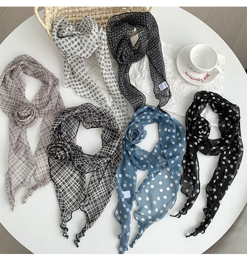 쉬폰 실크 스카프 긴 하이 엔드 센스 봄과 여름 목 스카프 명암 컬러 웨이브 도트 헤드 스카프 헤어 벨트 장식 벨트 도매스토어 가기