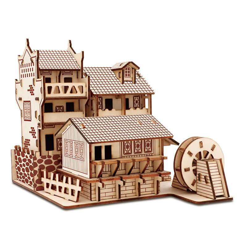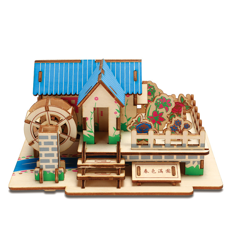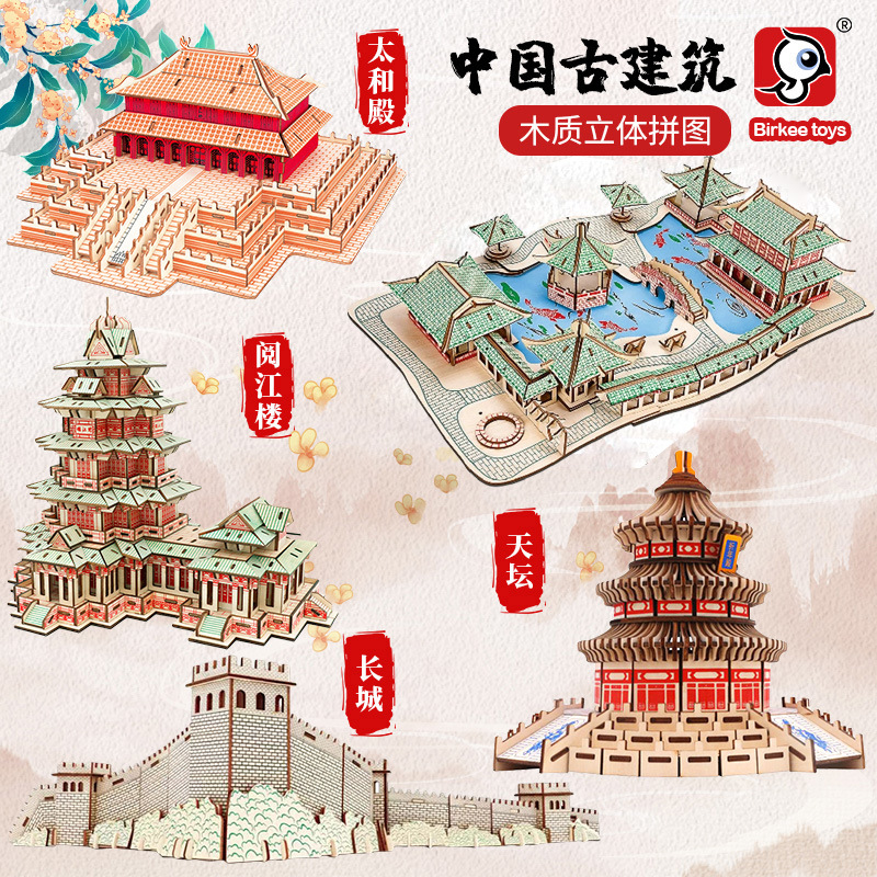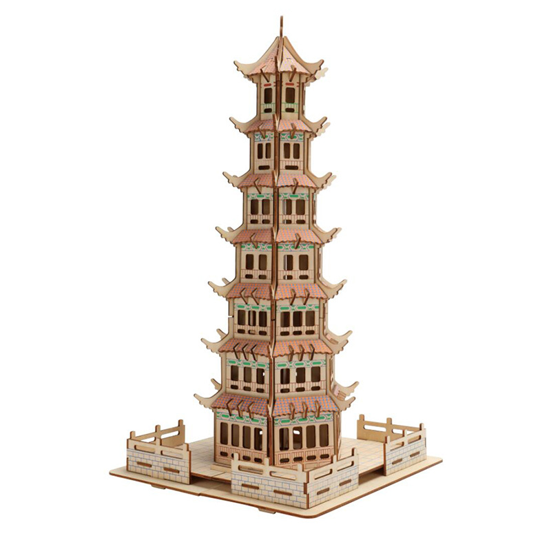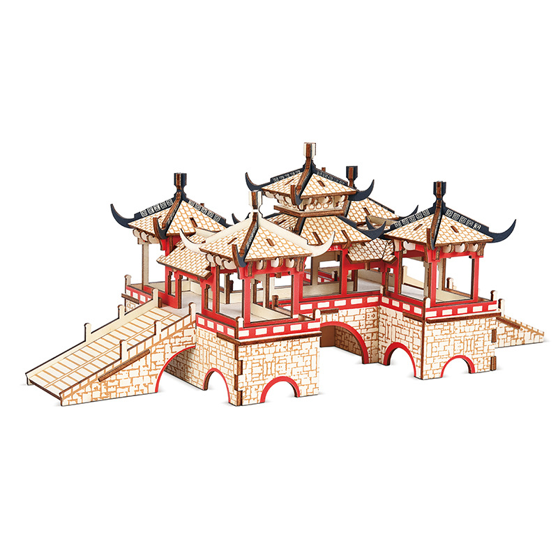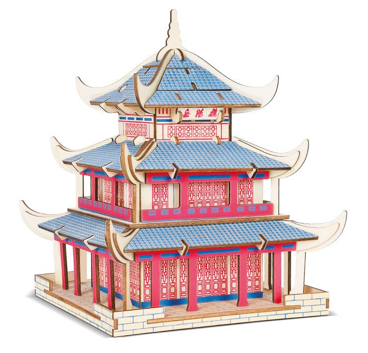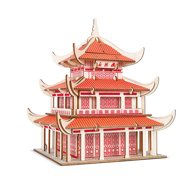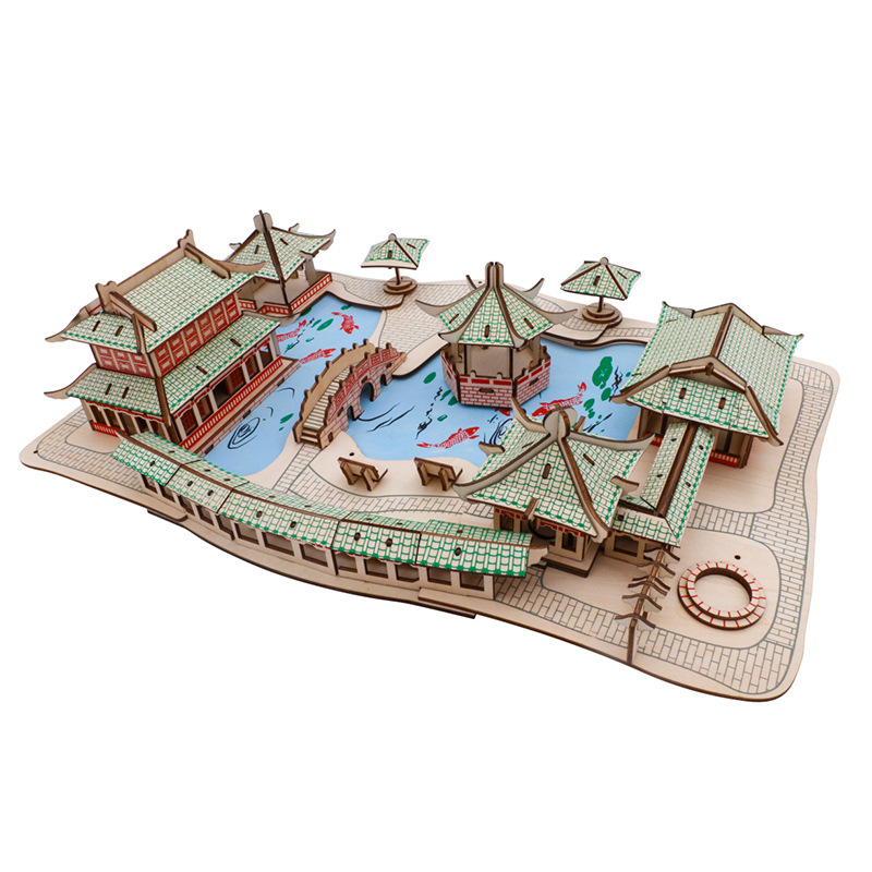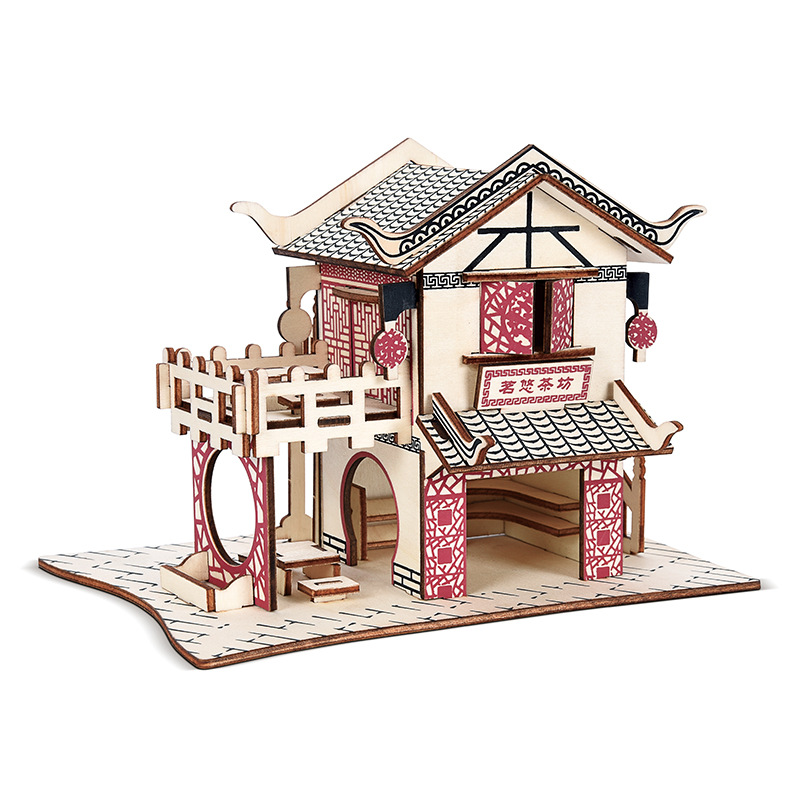 3D 나무 3 차원 퍼즐 중국 스타일 건물 나무 퍼즐 장난감 어린이 DIY 수제 퍼즐 장난감스토어 가기