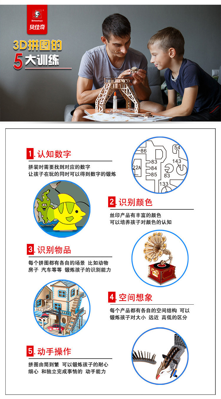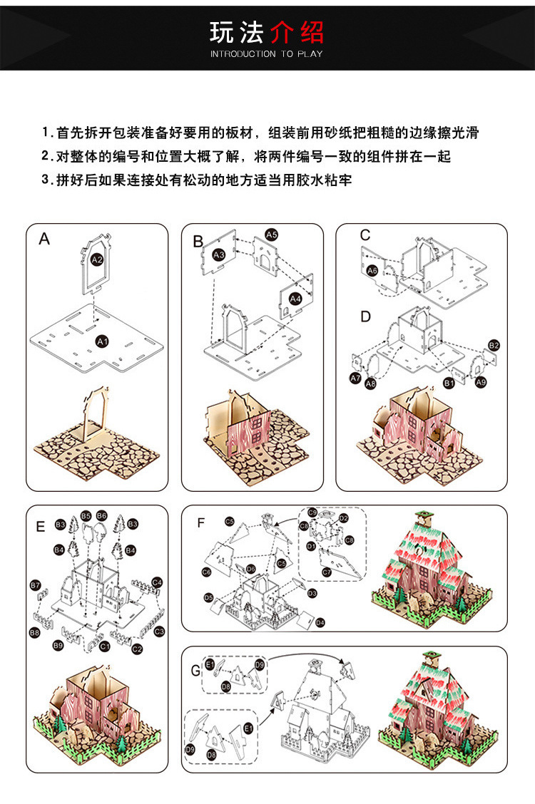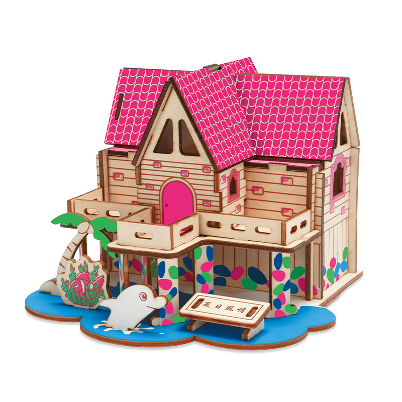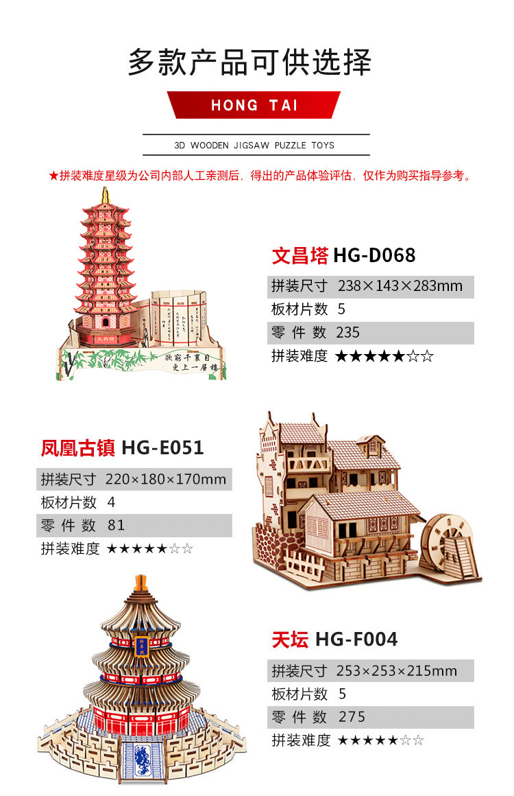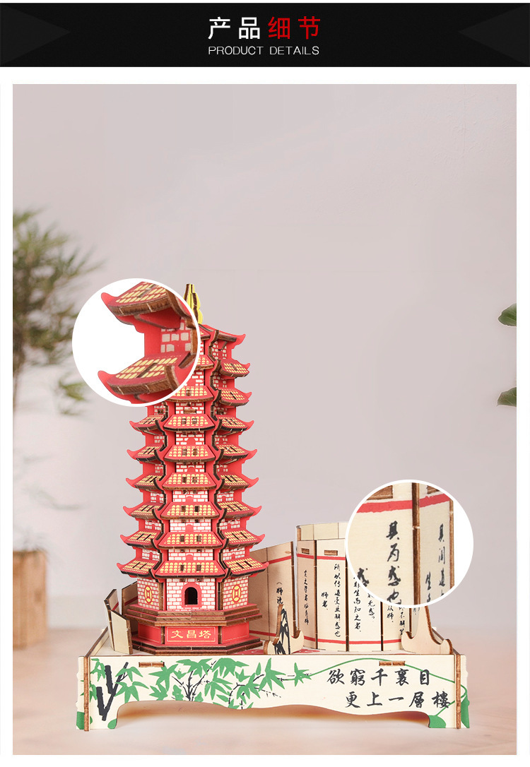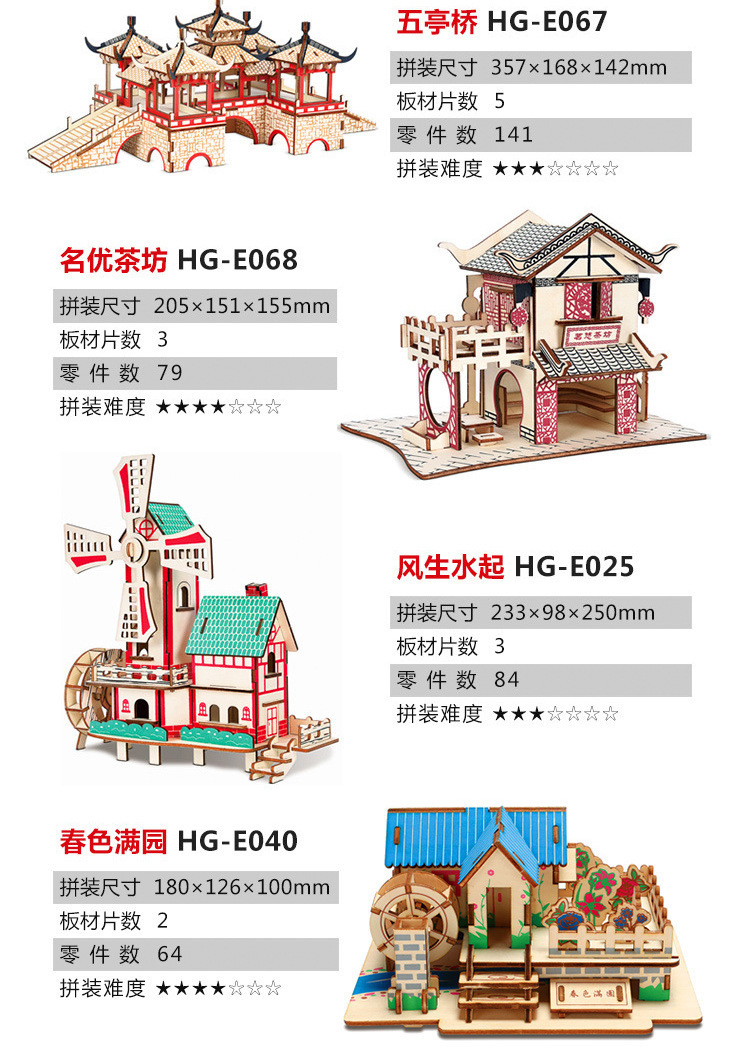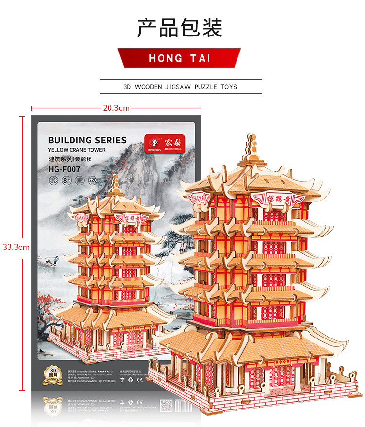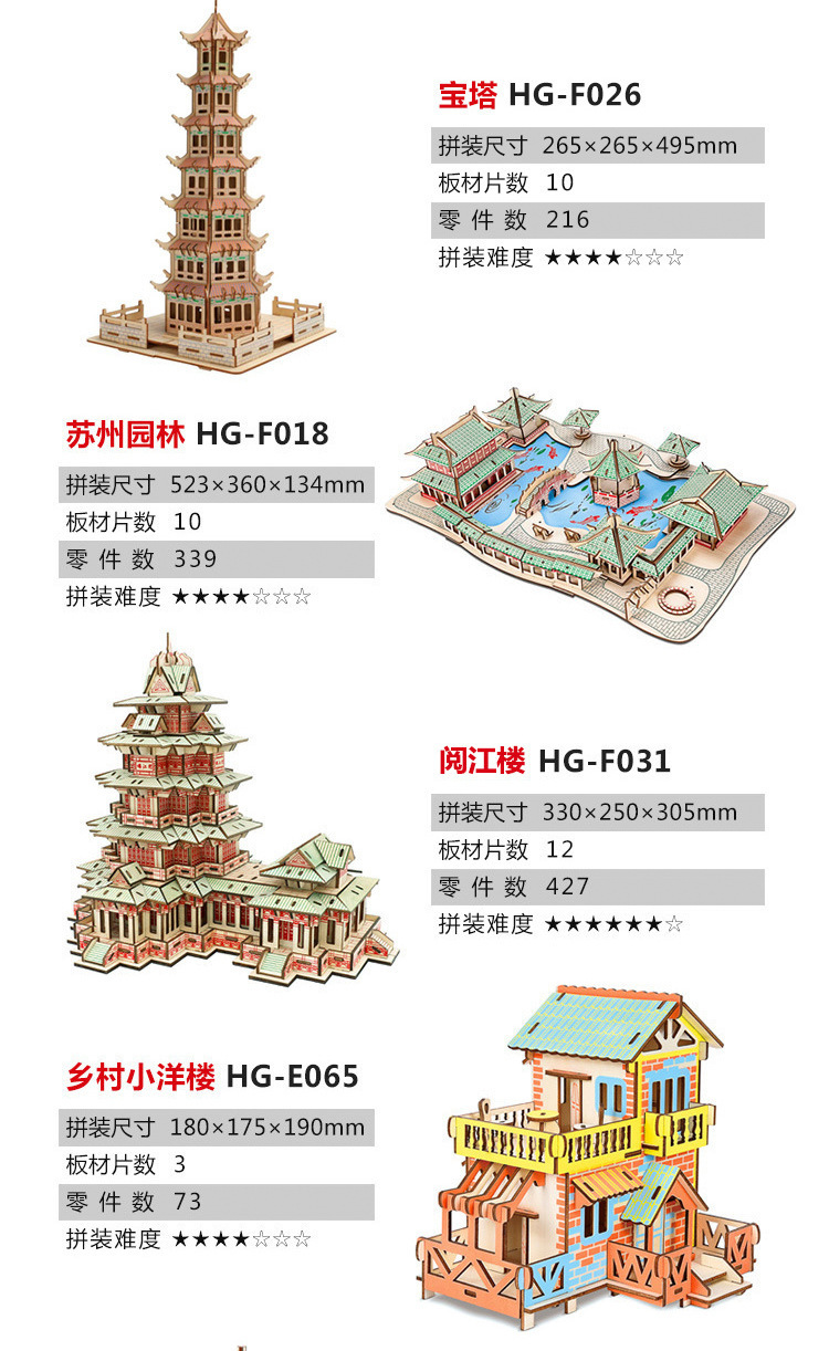 3D 나무 3 차원 퍼즐 중국 스타일 건물 나무 퍼즐 장난감 어린이 DIY 수제 퍼즐 장난감스토어 가기