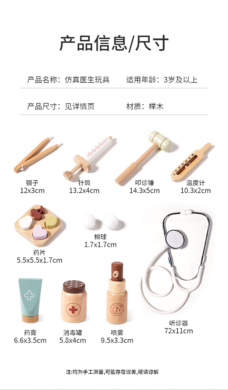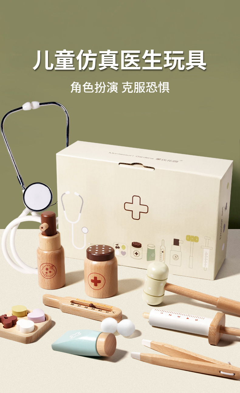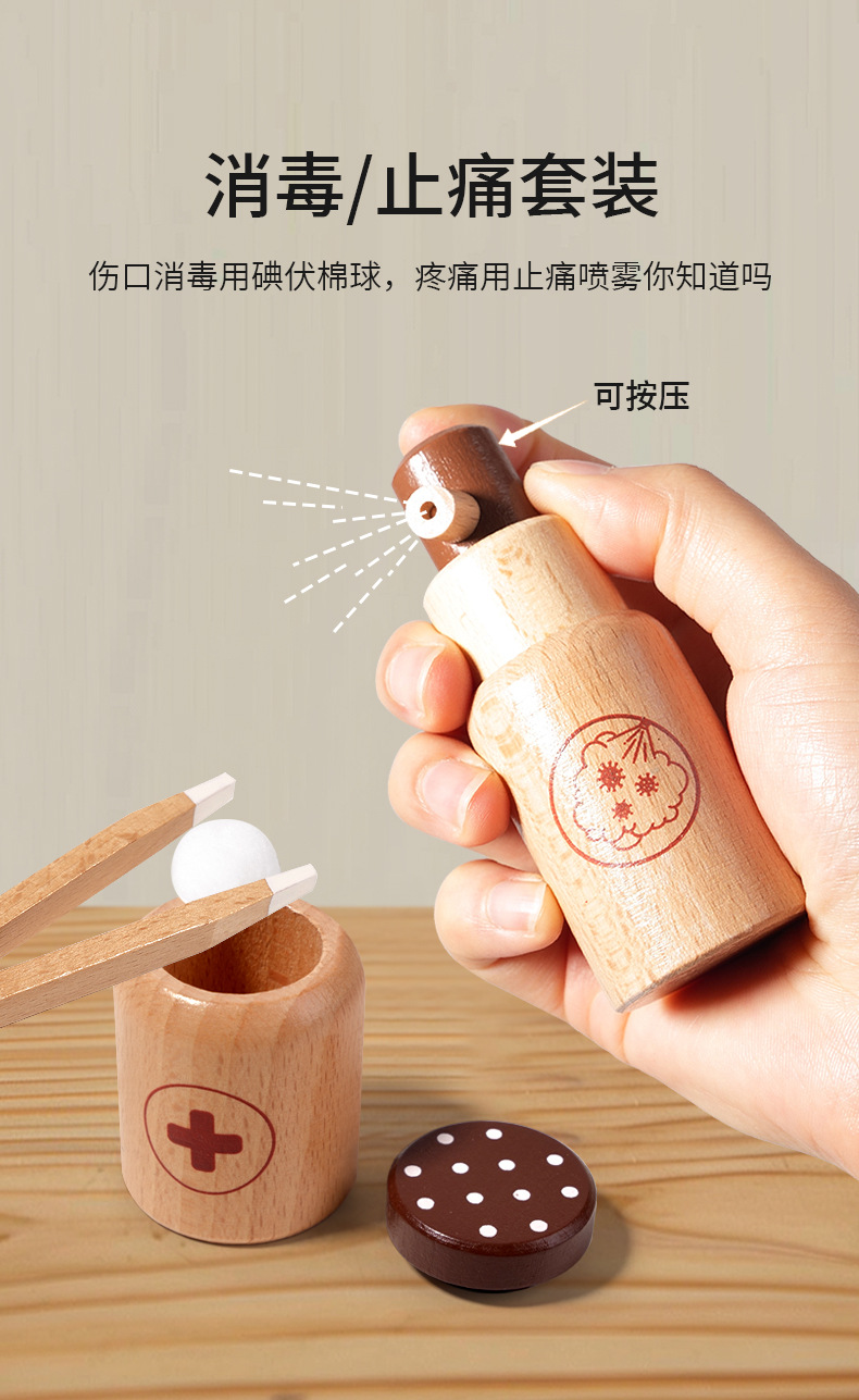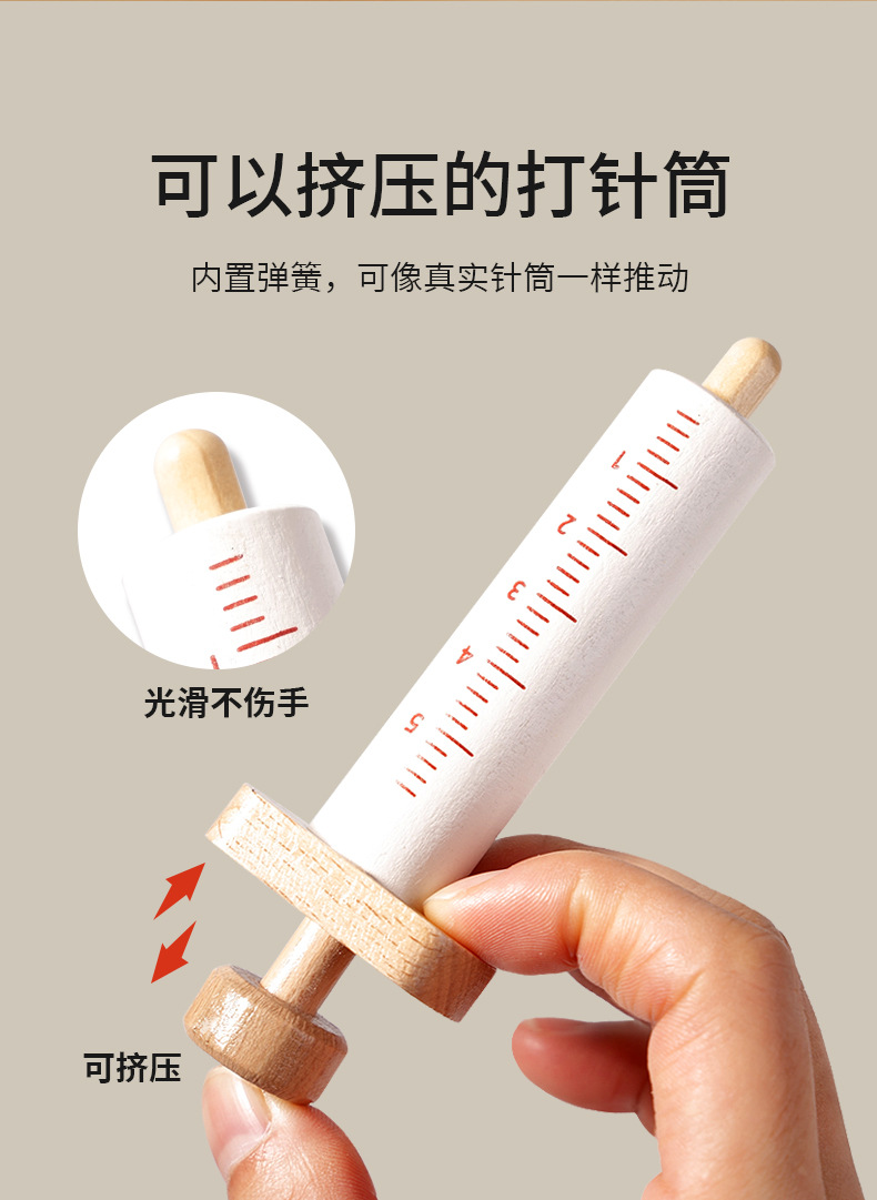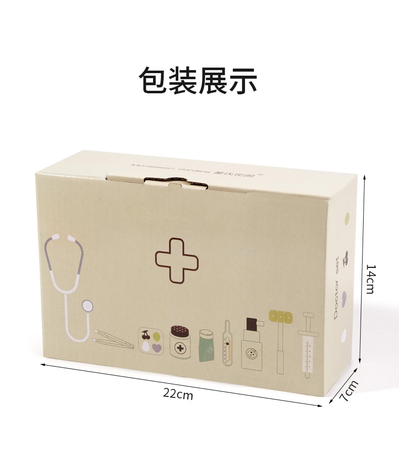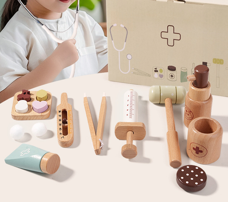어린이 놀이 집 나무 의사 의료 가방 세트 주사기 청진기 알약 체온계 너도밤 나무 롤 플레잉스토어 가기