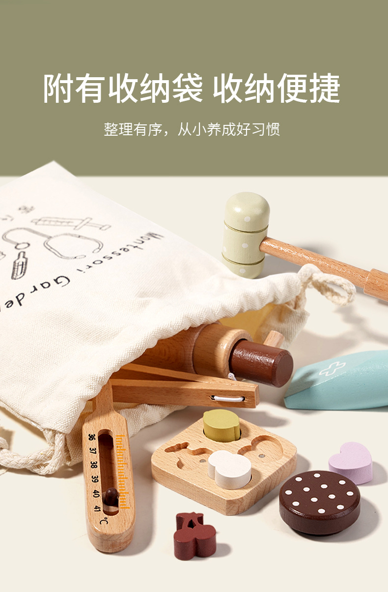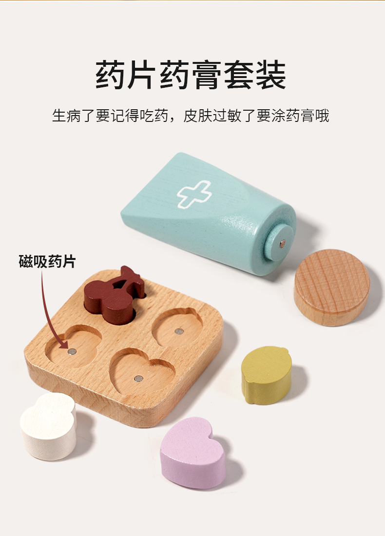 어린이 놀이 집 나무 의사 의료 가방 세트 주사기 청진기 알약 체온계 너도밤 나무 롤 플레잉