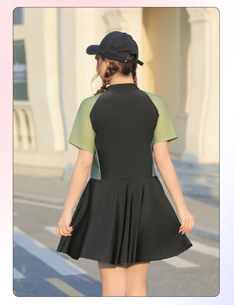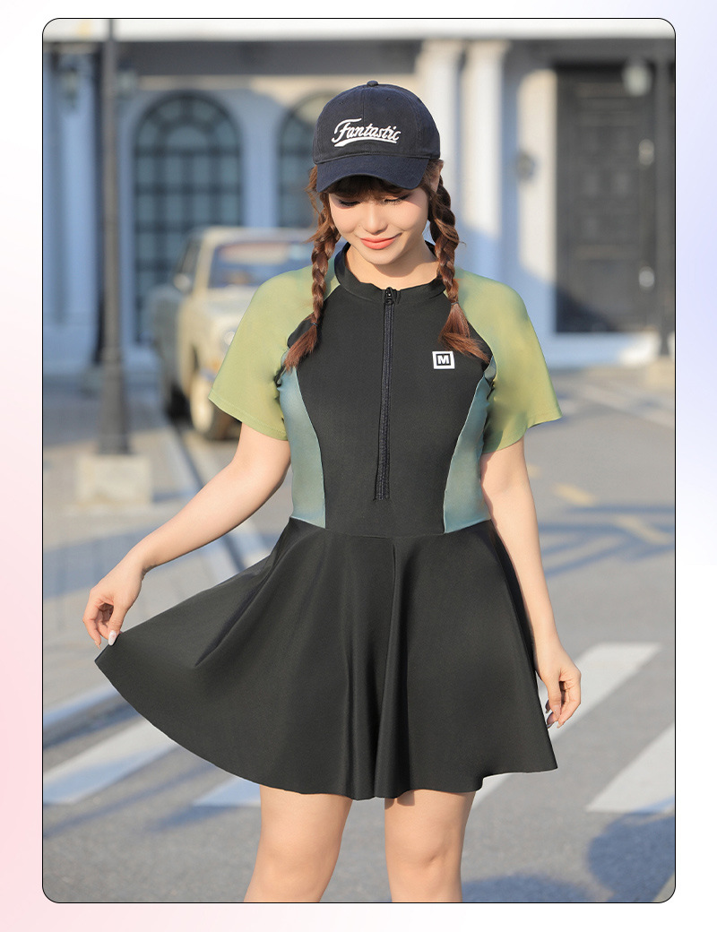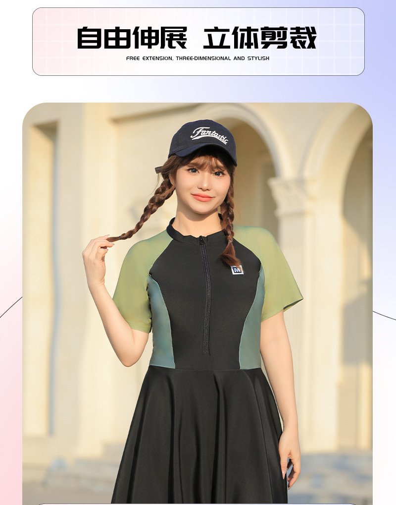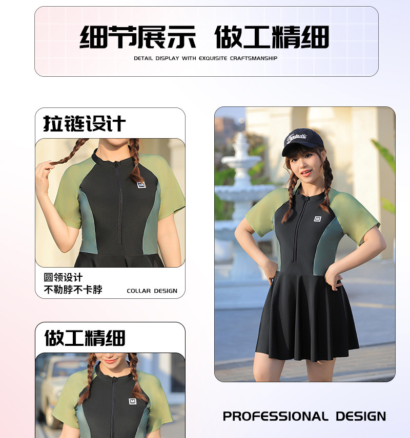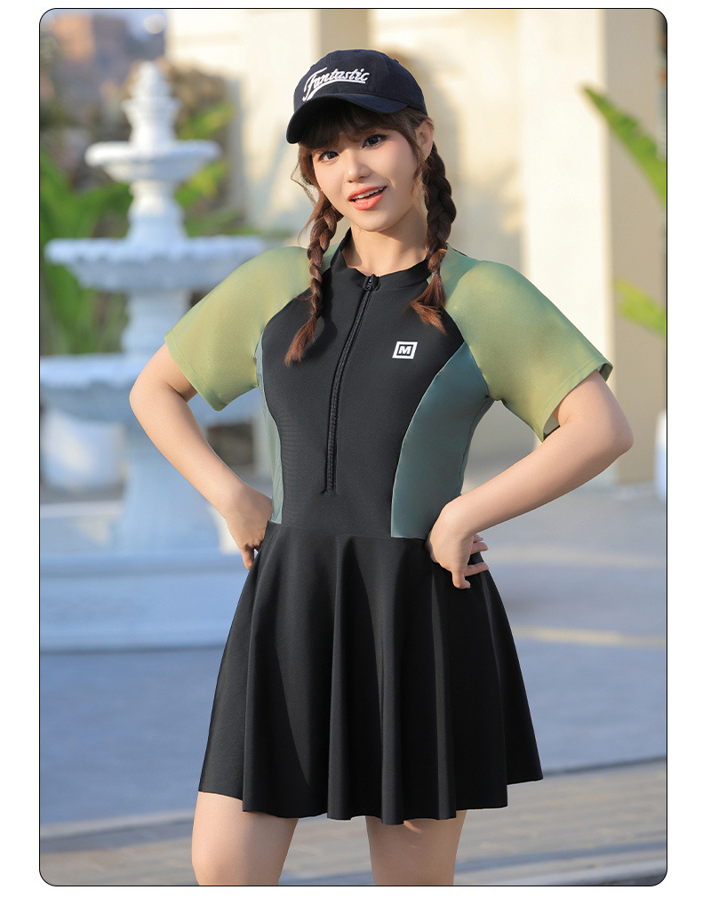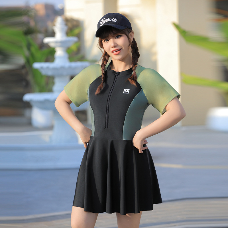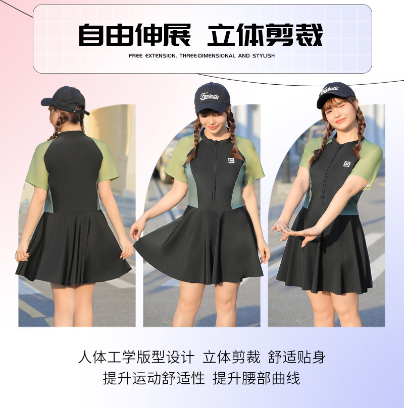 빠른 건조 스포츠 플러스 사이즈 여성 수영복 보수적 인 원피스 스커트 수영 세트 반팔 지방 온천 수영복 플러스 사이즈 느슨한스토어 가기