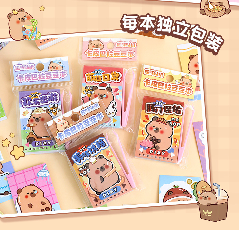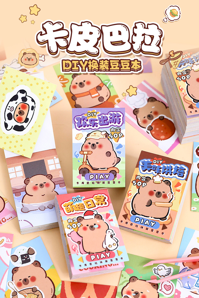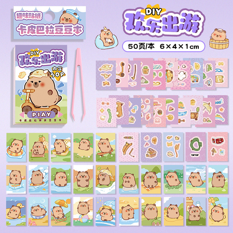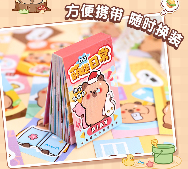 귀여운 카피 바라 원피스 스티커 책 세트 창조적 인 재미 어린이 감압 장난감 책 만화 카피 바라 퍼즐 스티커스토어 가기