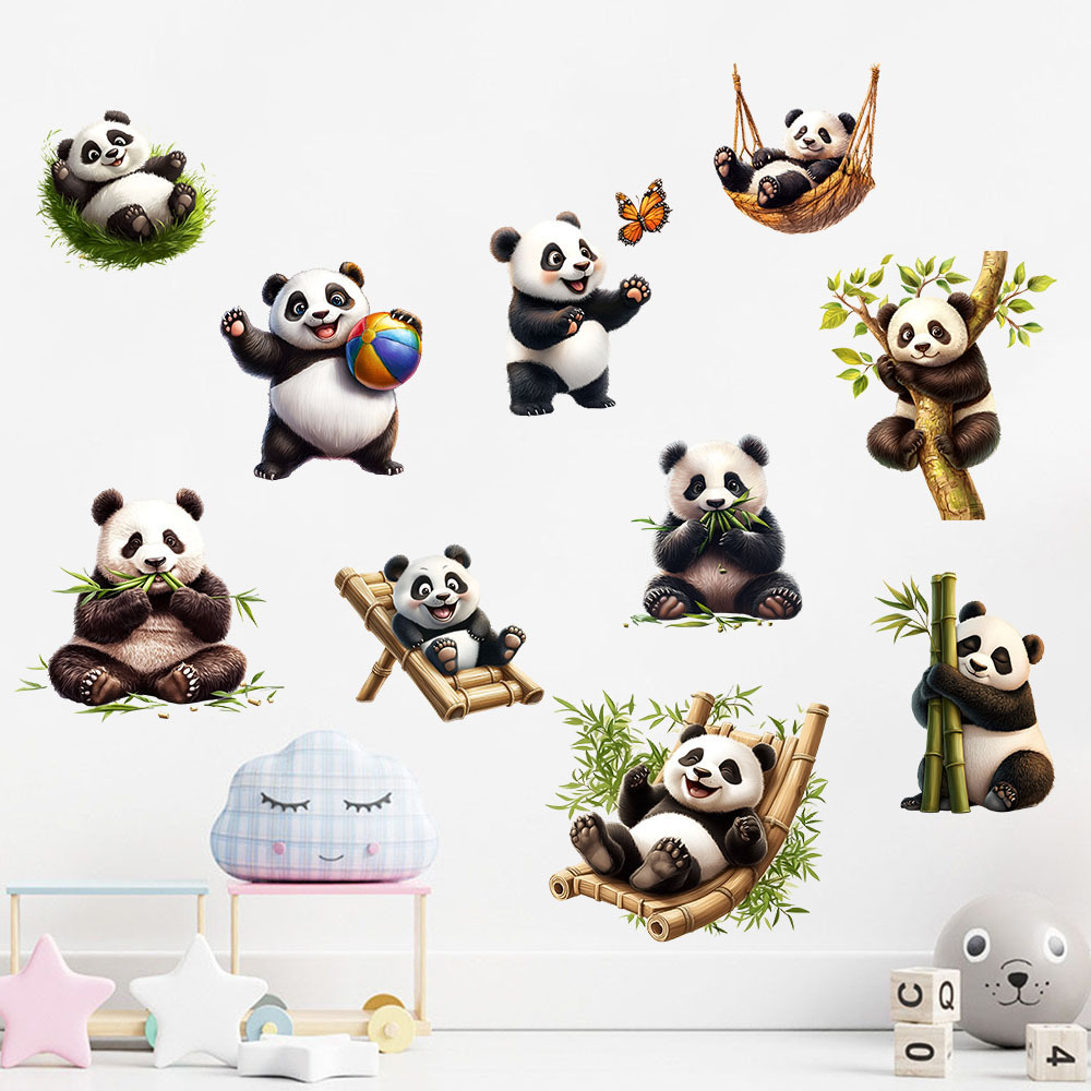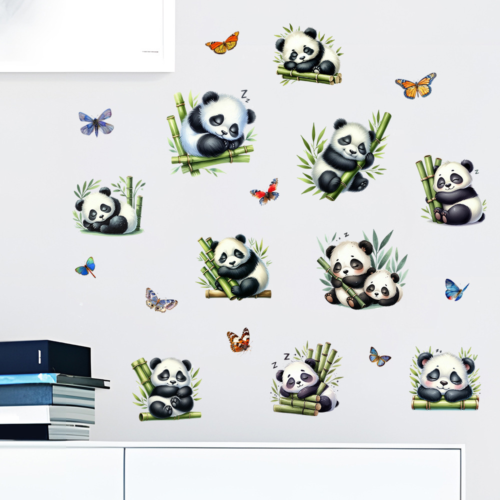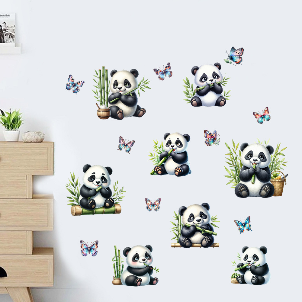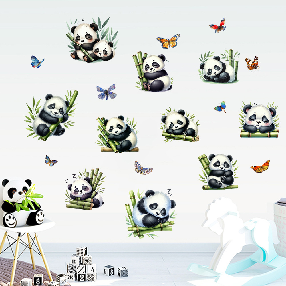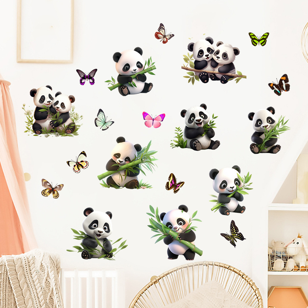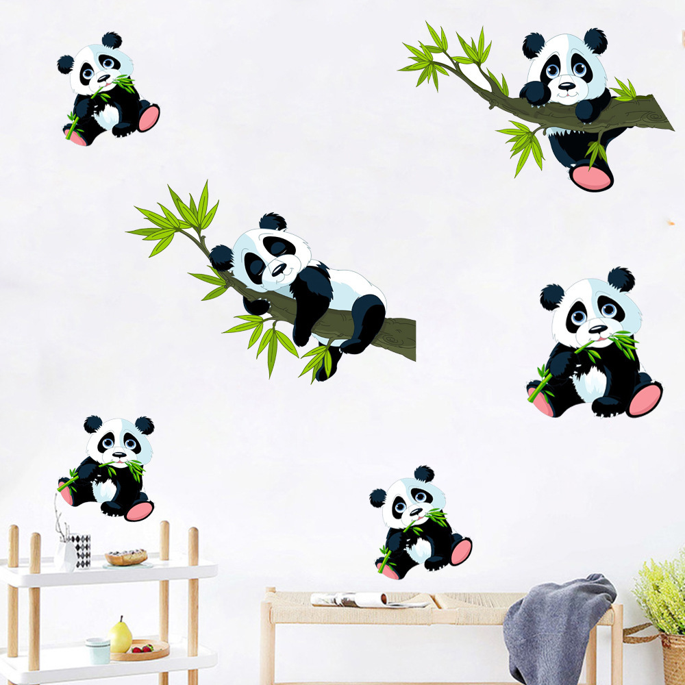 귀여운 팬더 대나무 자체 접착 방수 얼룩 방지 벽 스티커 냉장고 세탁기 어린이 방 장식 그림 구멍 채우기 스티커스토어 가기