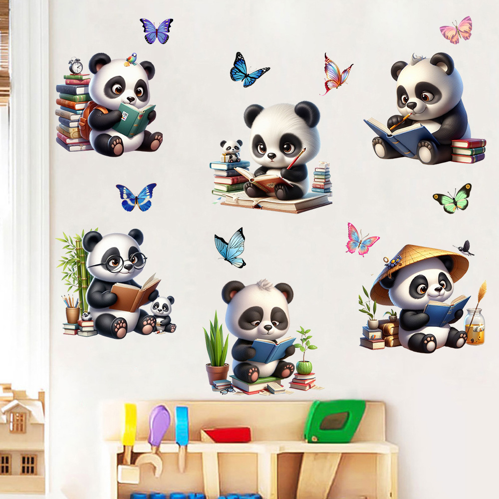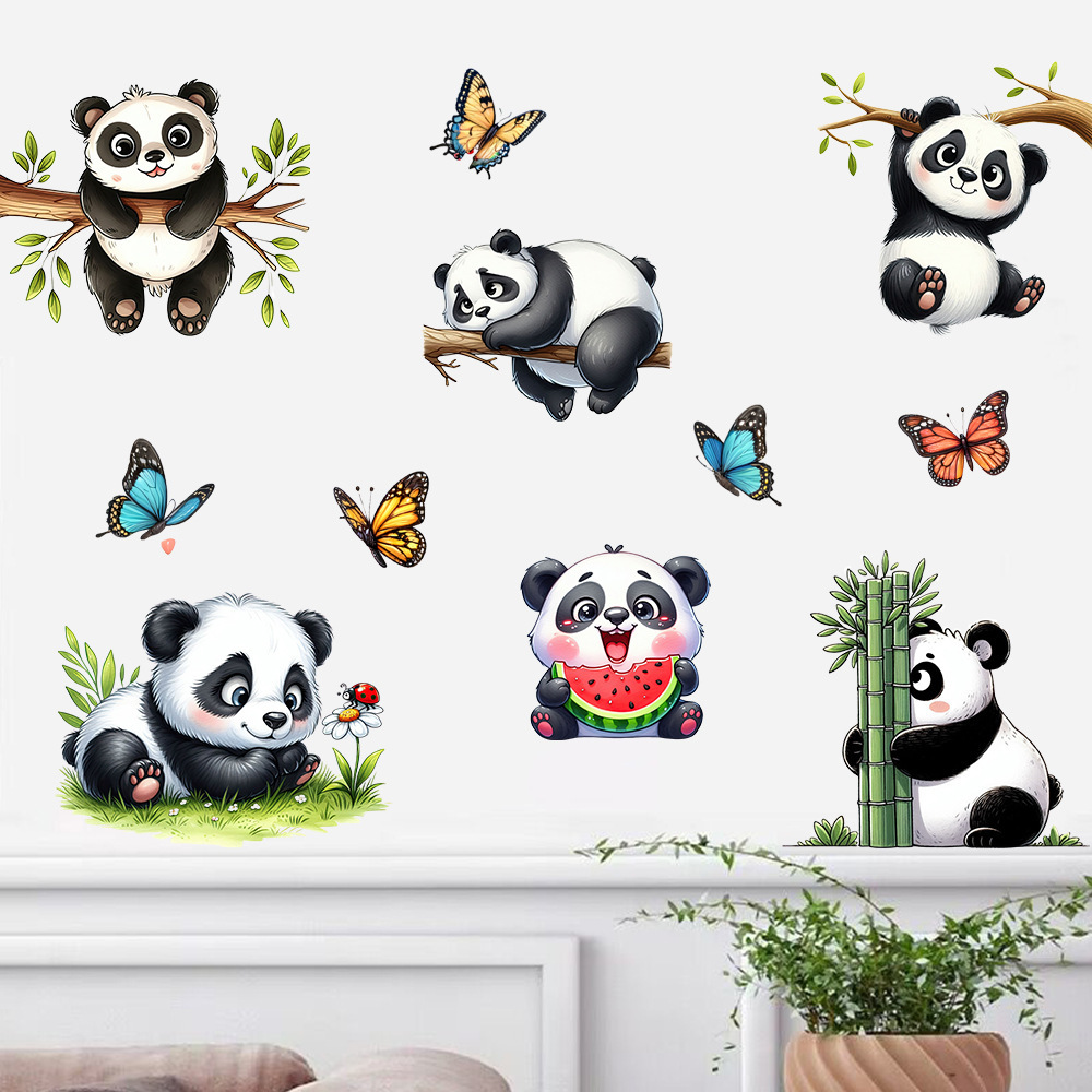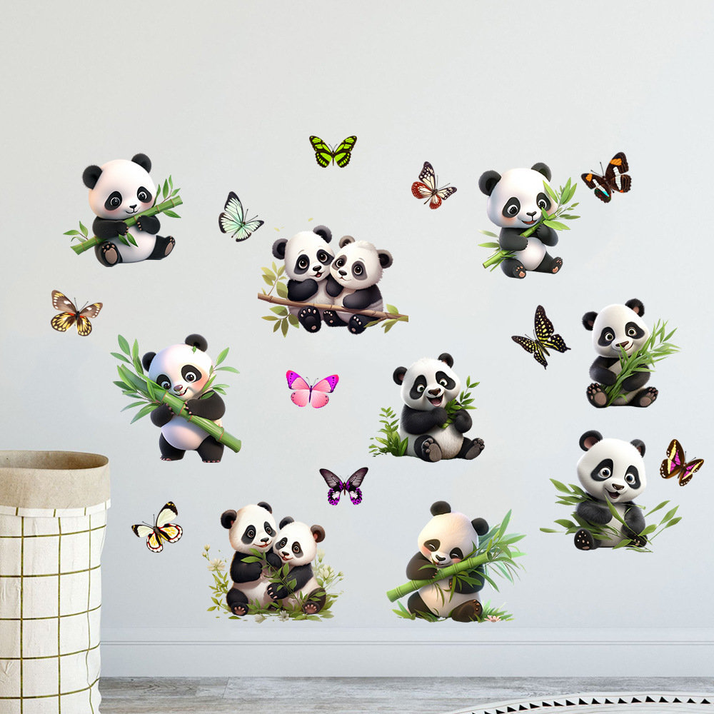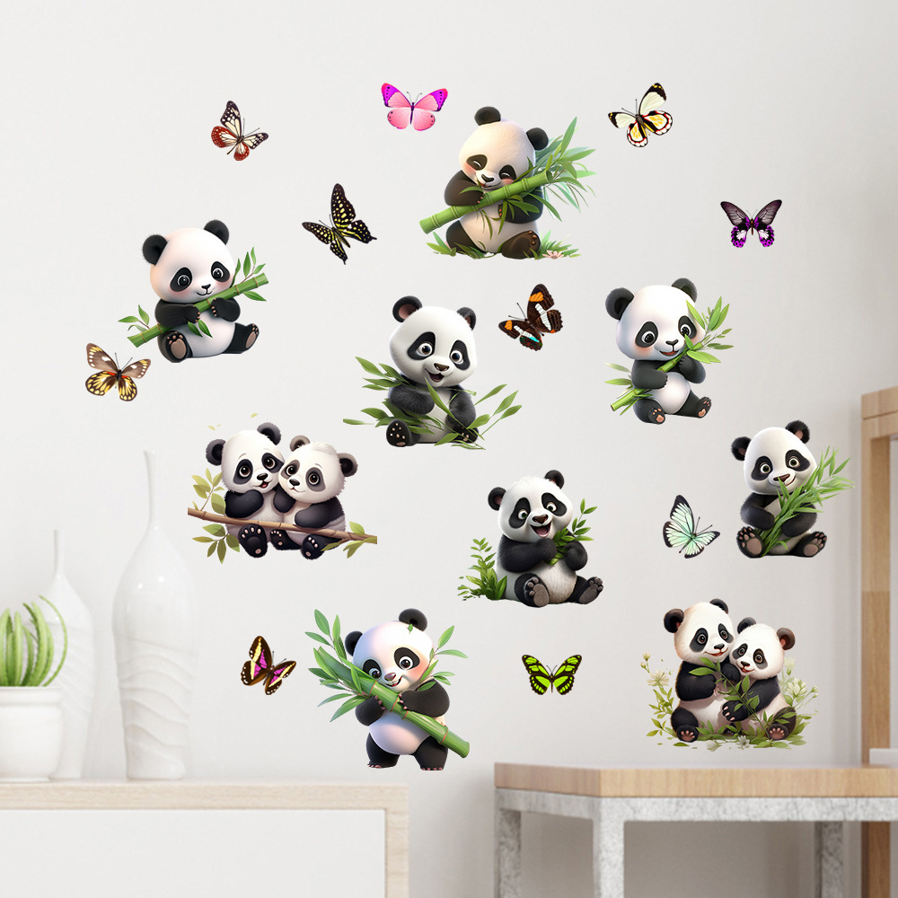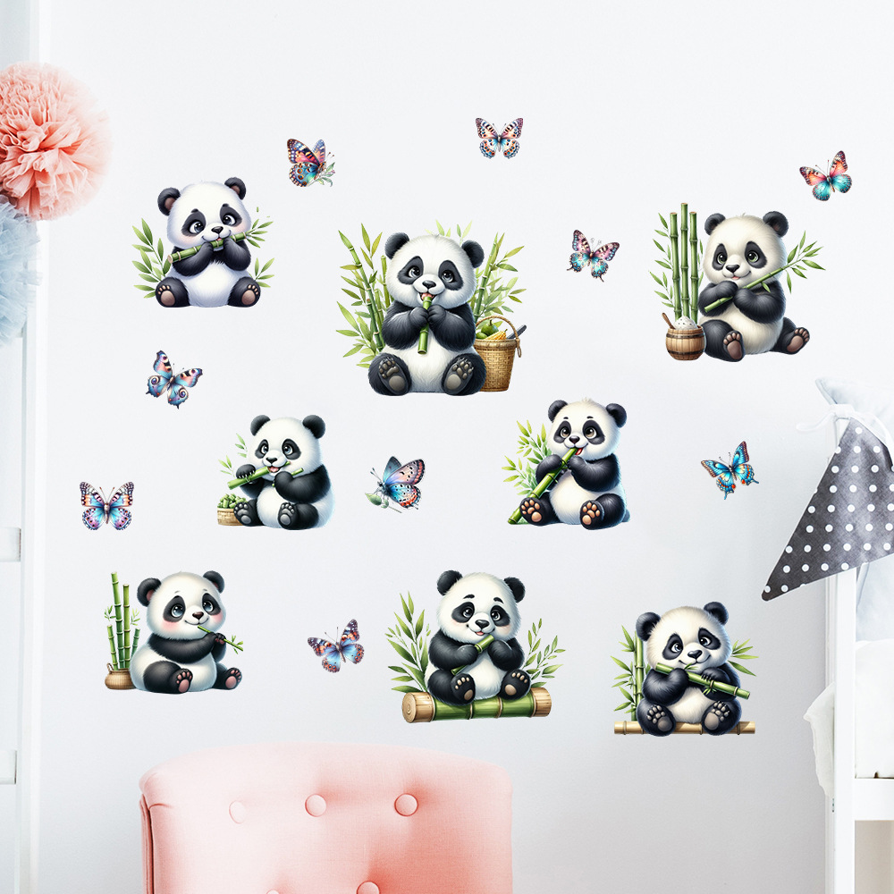 귀여운 팬더 대나무 자체 접착 방수 얼룩 방지 벽 스티커 냉장고 세탁기 어린이 방 장식 그림 구멍 채우기 스티커스토어 가기