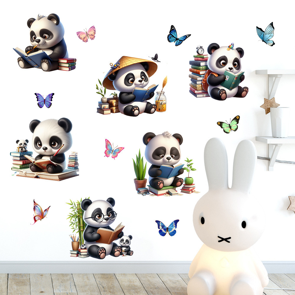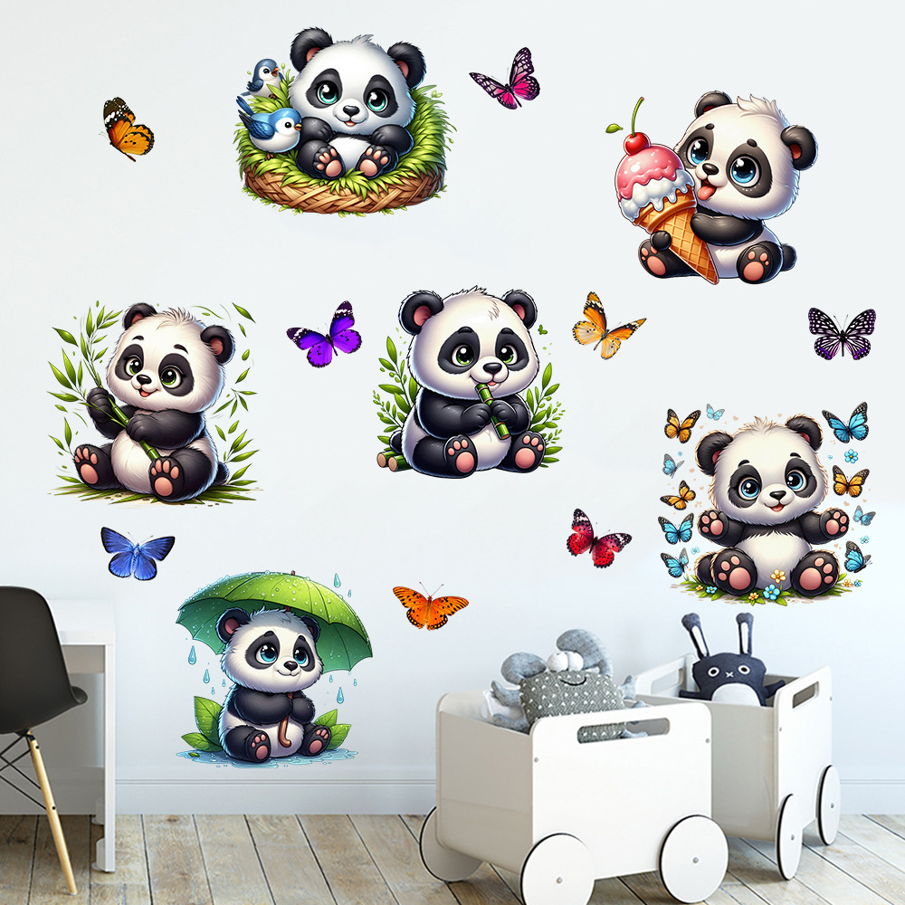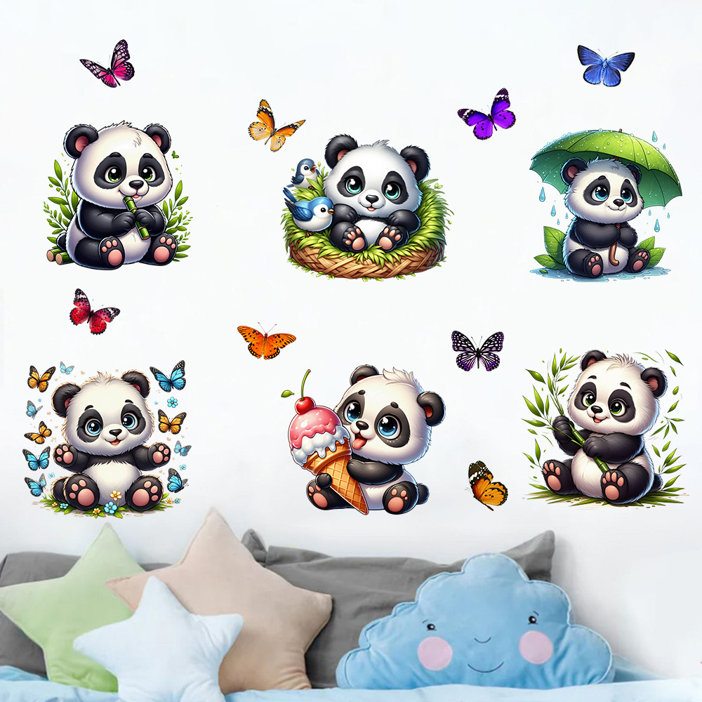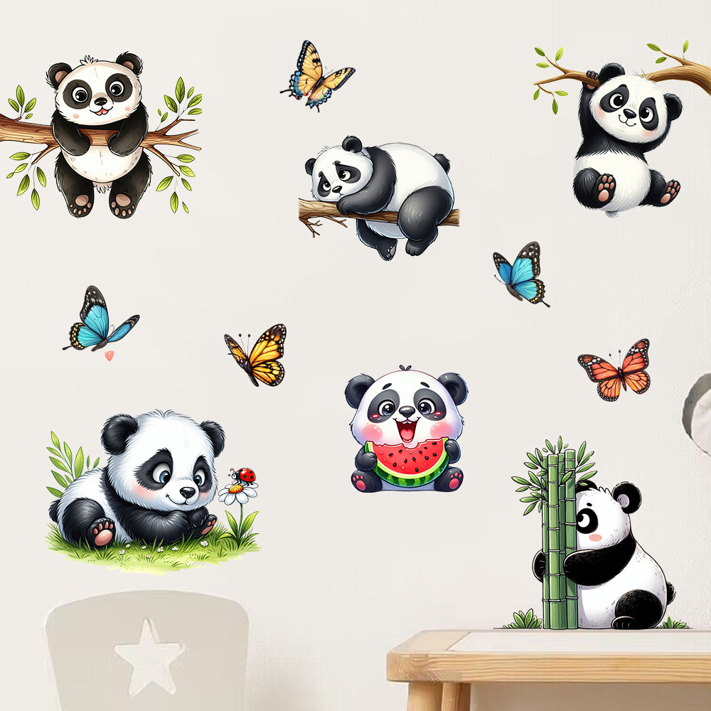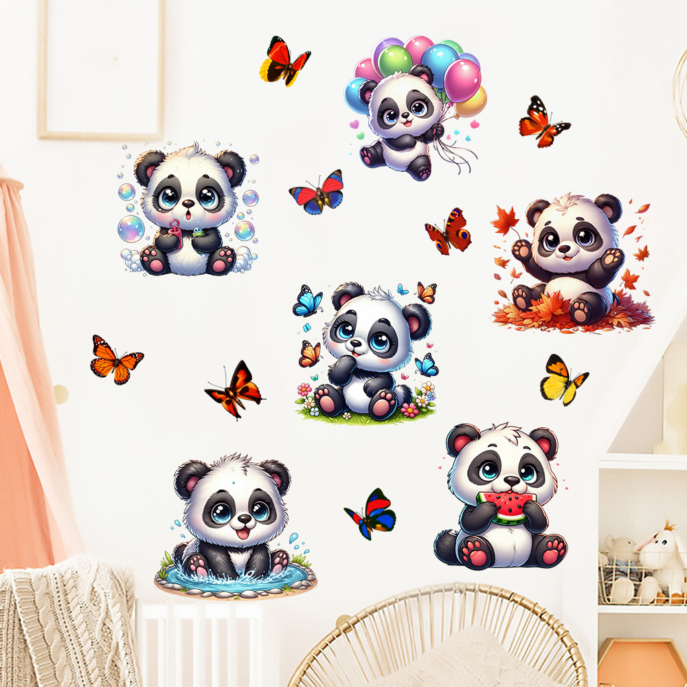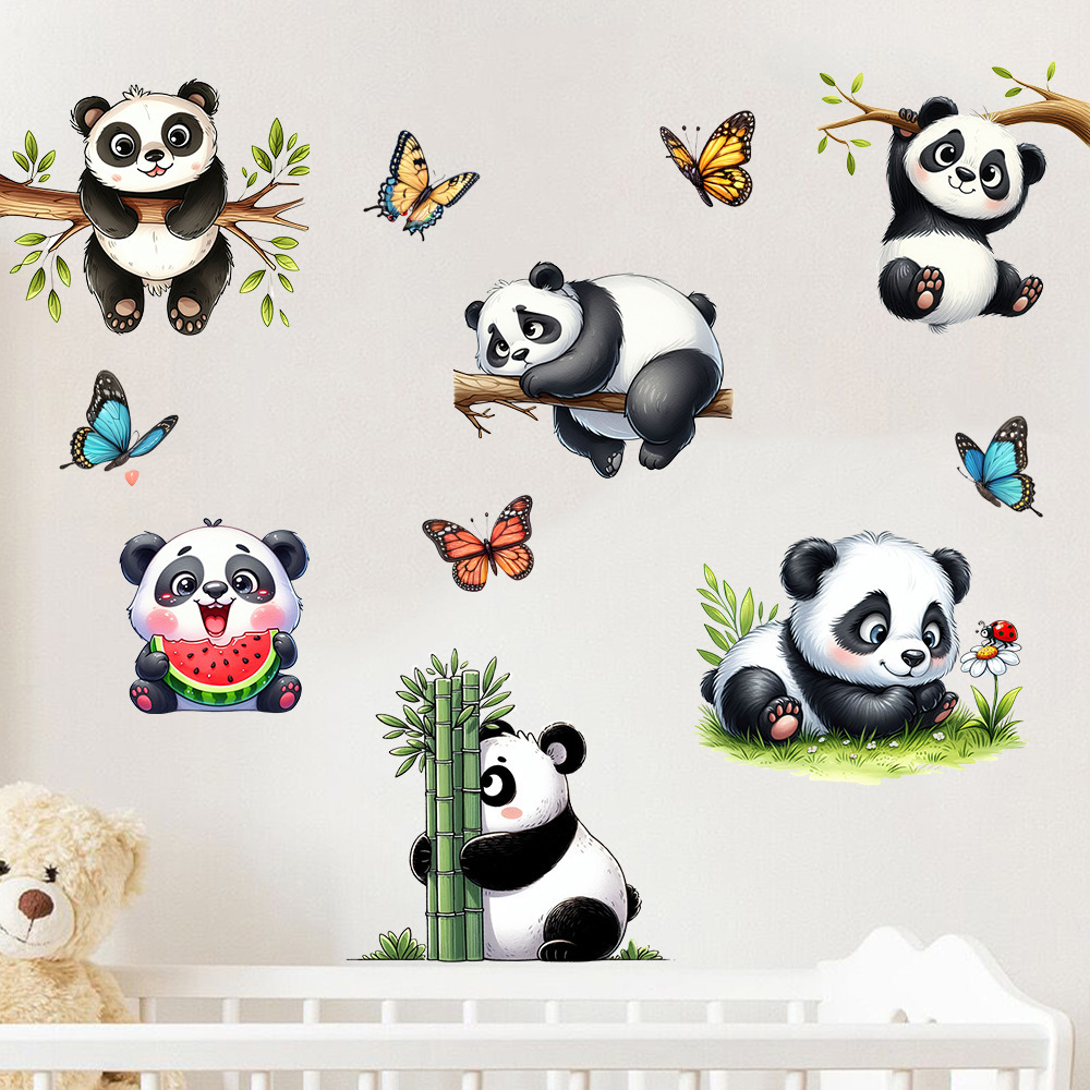 귀여운 팬더 대나무 자체 접착 방수 얼룩 방지 벽 스티커 냉장고 세탁기 어린이 방 장식 그림 구멍 채우기 스티커스토어 가기