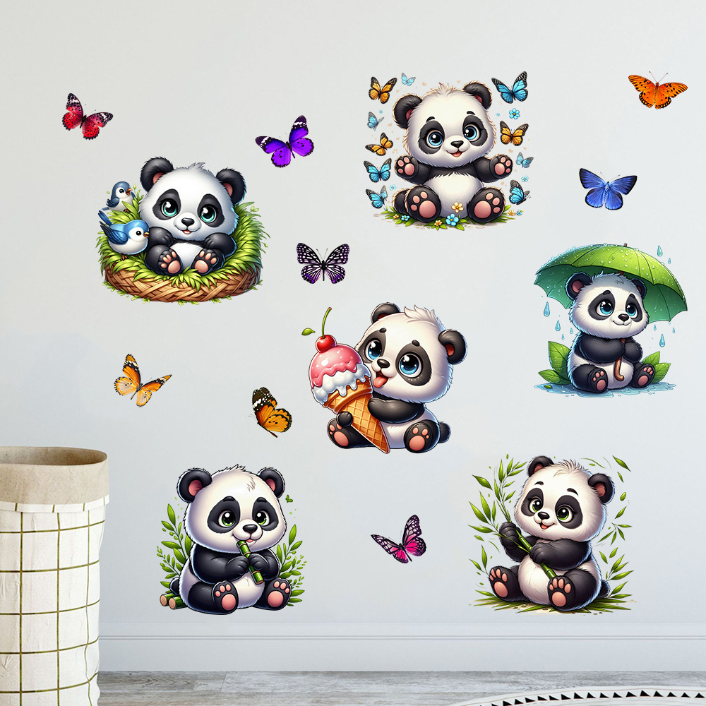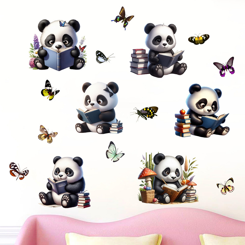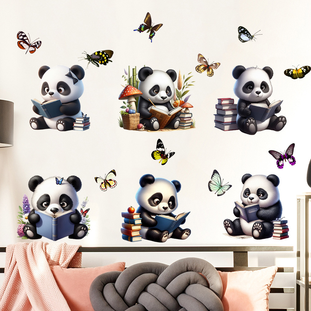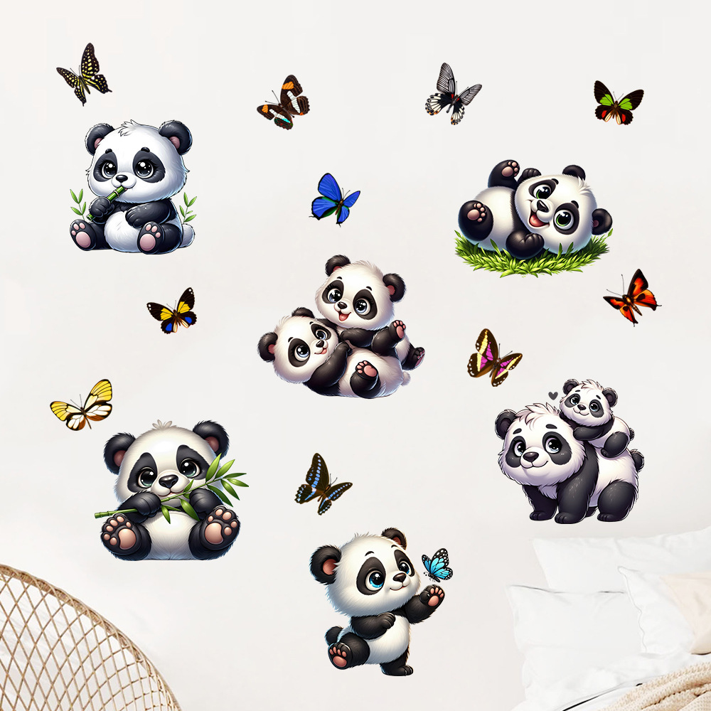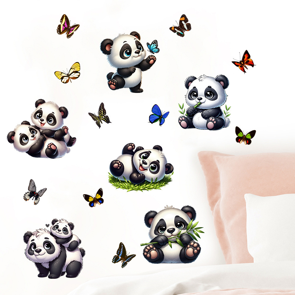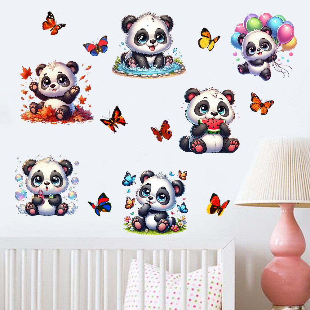 귀여운 팬더 대나무 자체 접착 방수 얼룩 방지 벽 스티커 냉장고 세탁기 어린이 방 장식 그림 구멍 채우기 스티커스토어 가기