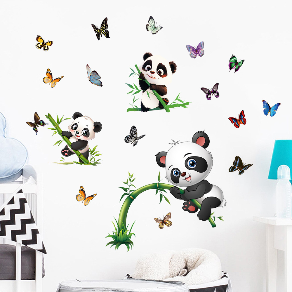 귀여운 팬더 대나무 자체 접착 방수 얼룩 방지 벽 스티커 냉장고 세탁기 어린이 방 장식 그림 구멍 채우기 스티커