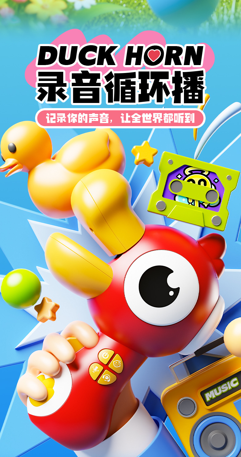• [배터리 버전] 빨간색 큰 입 오리 스피커 전자 상거래 상자