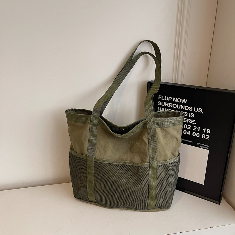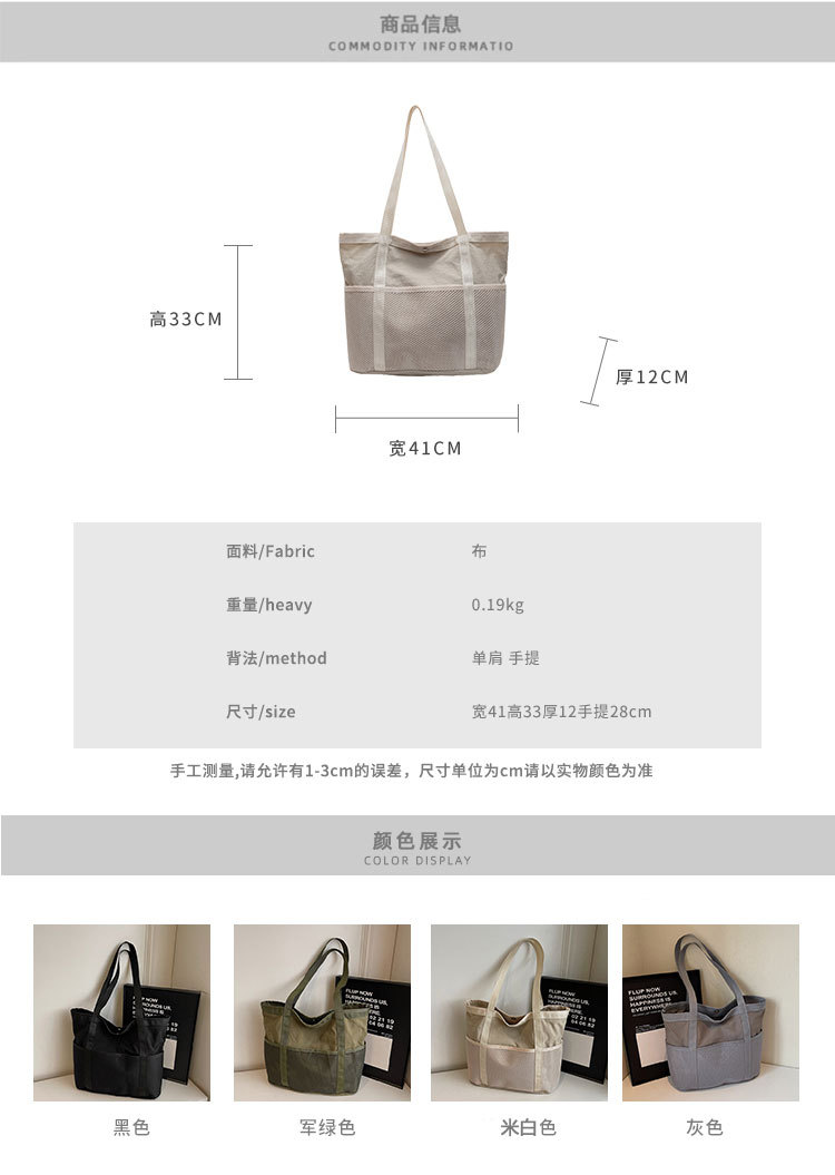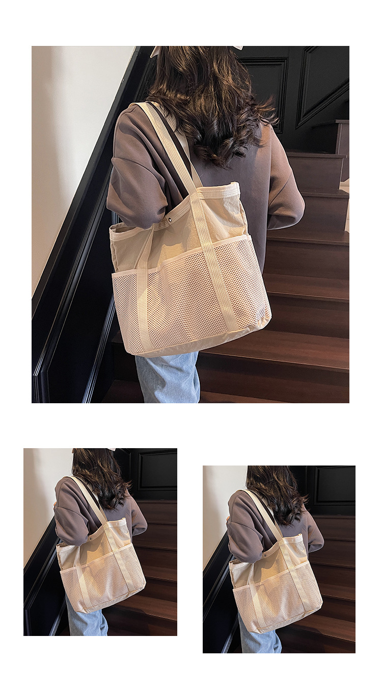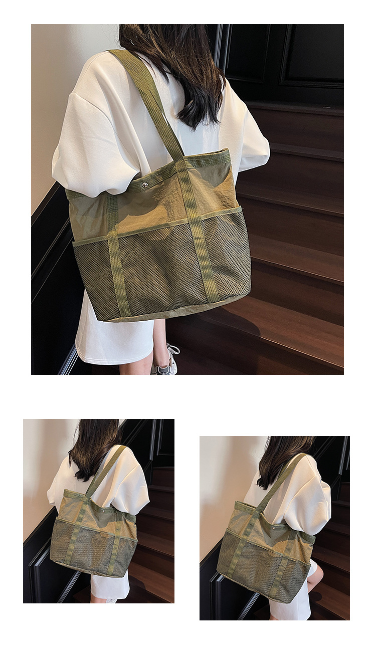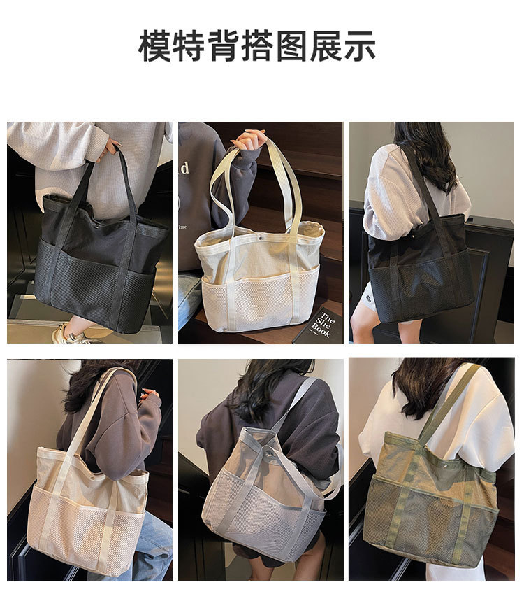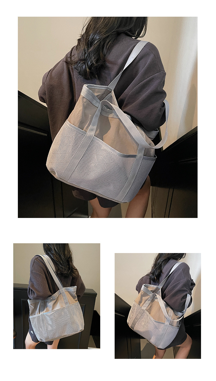 새로운 패셔너블한 대용량 토트백, 메쉬 휴대용 쇼핑백, 여행용 비치백, 클래스 통근 배낭스토어 가기