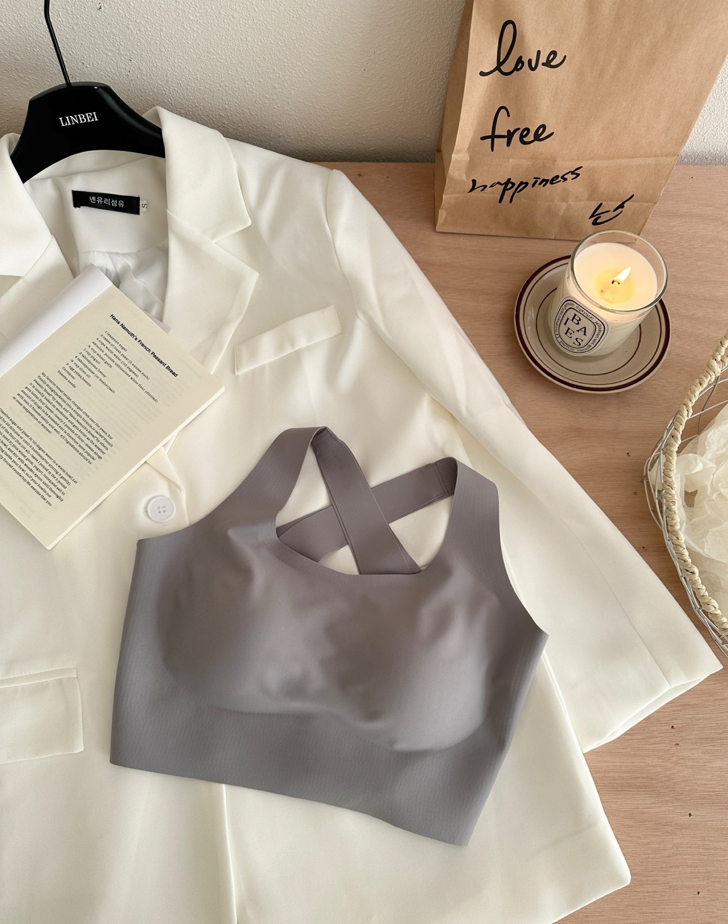 조끼 스타일의 아름다운 등, 이음새가 없고 와이어가 없는 부드러운 지지 속옷, 여성용 얇은 스포츠 누드 느낌의 제한 없는 여름 브라스토어 가기