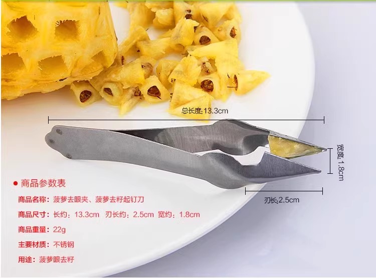 파인애플 칼 필러 스테인레스 스틸 파인애플 클립 눈 제거 클립 파인애플 핀셋 바나나 칼 시미터 껍질을 벗기고 씨앗을 파고 눈을 제거합니다스토어 가기