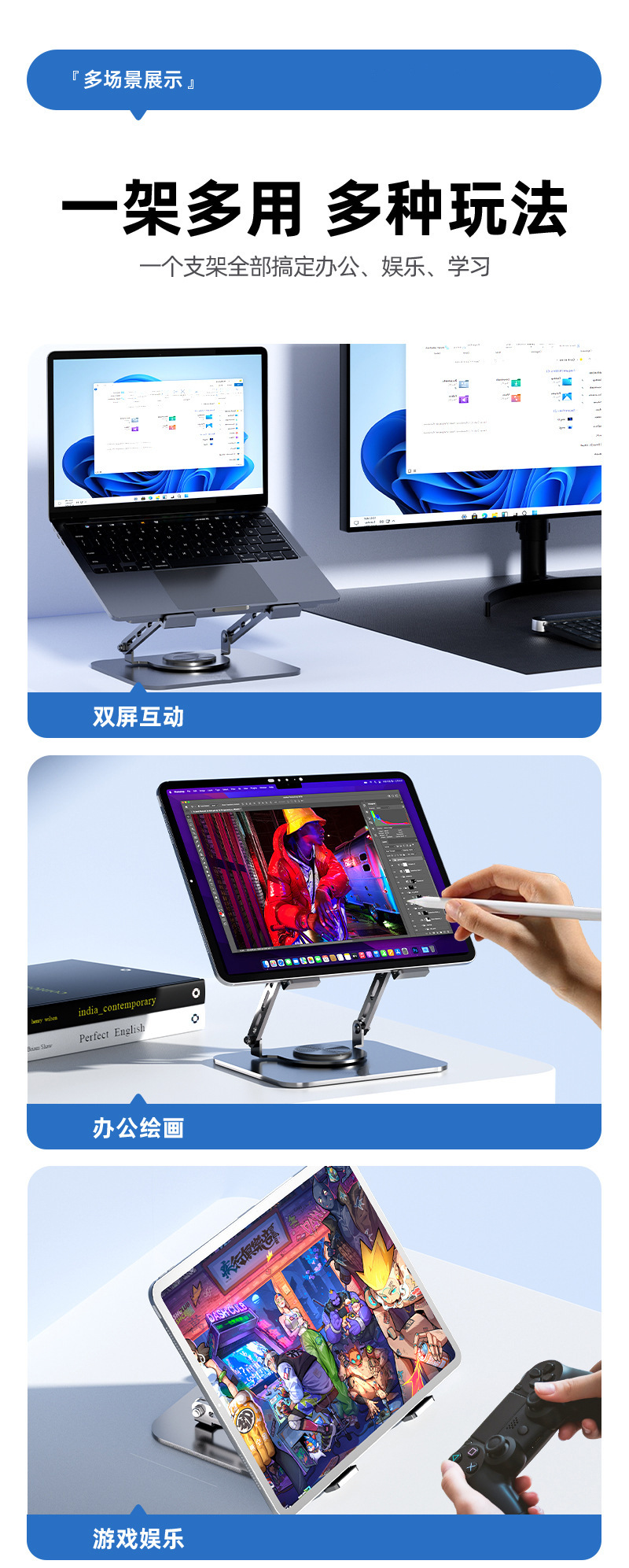 CS4 탄소강 노트북 스탠드 360 ° 회전식 접이식 냉각 강화 컴퓨터 스탠드스토어 가기