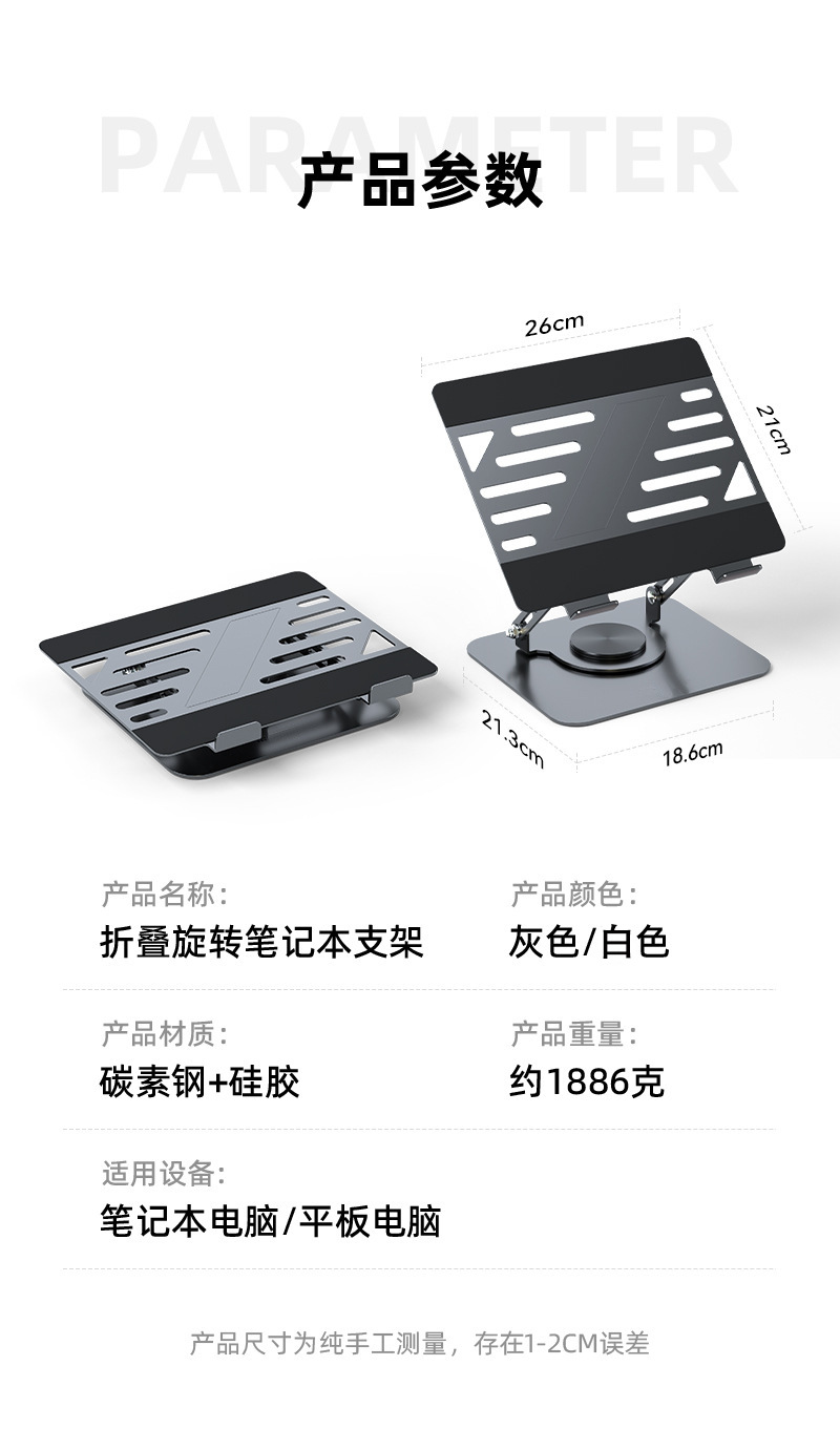 CS4 탄소강 노트북 스탠드 360 ° 회전식 접이식 냉각 강화 컴퓨터 스탠드