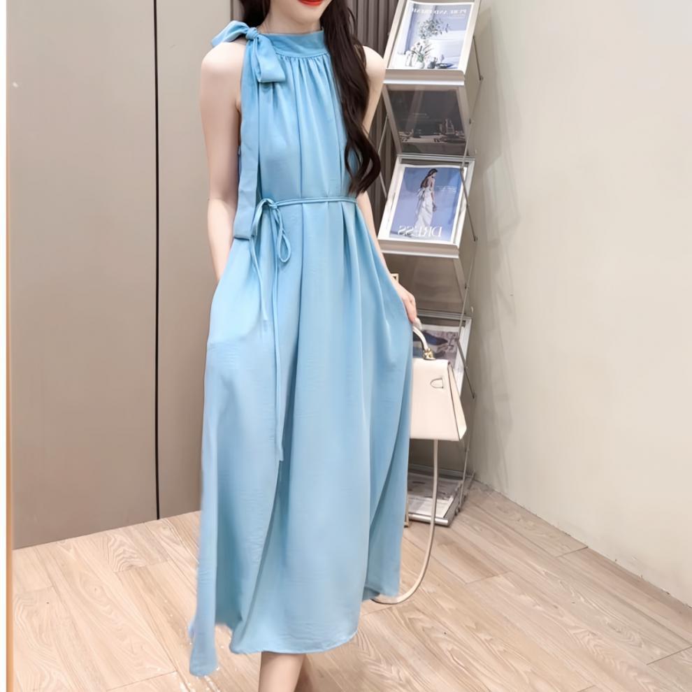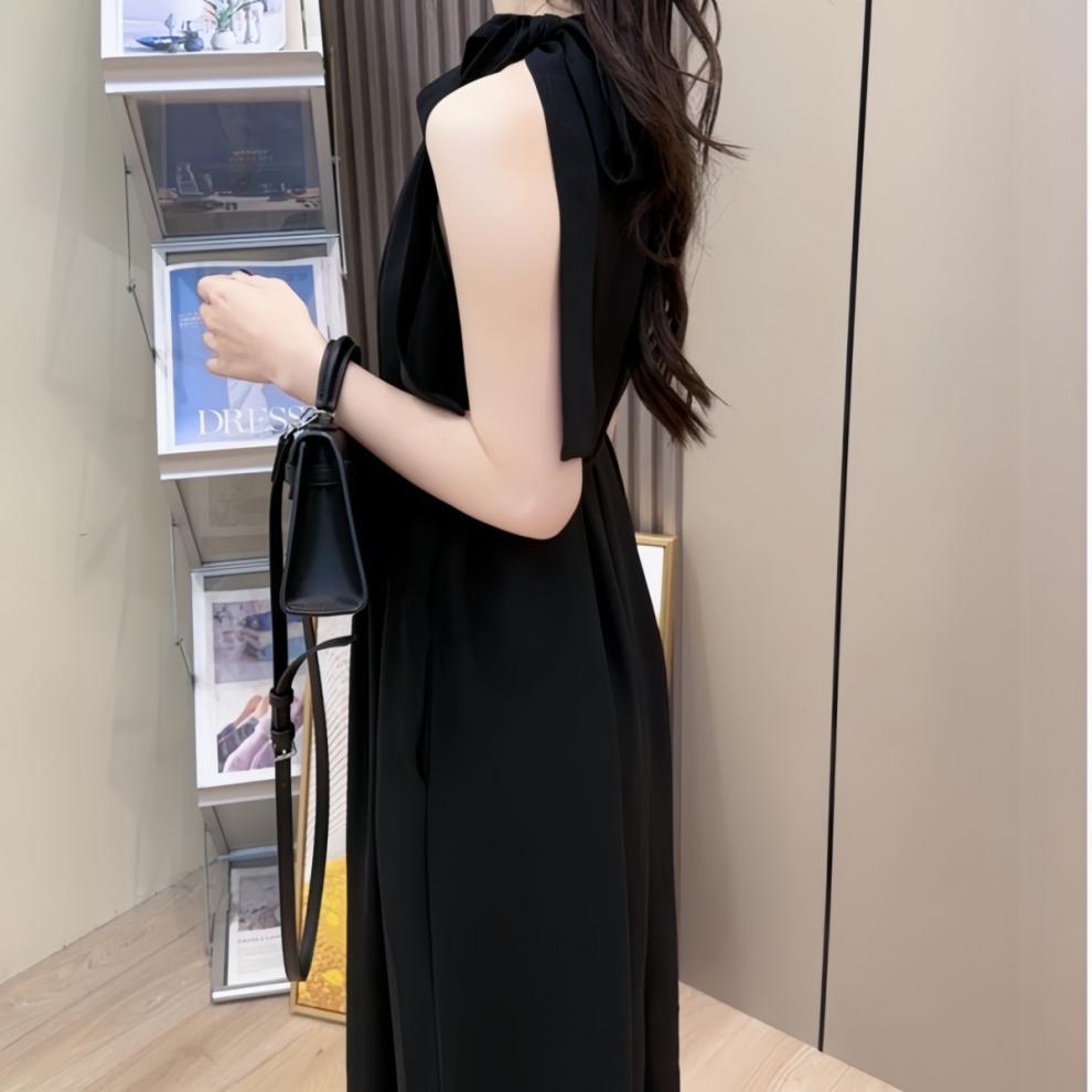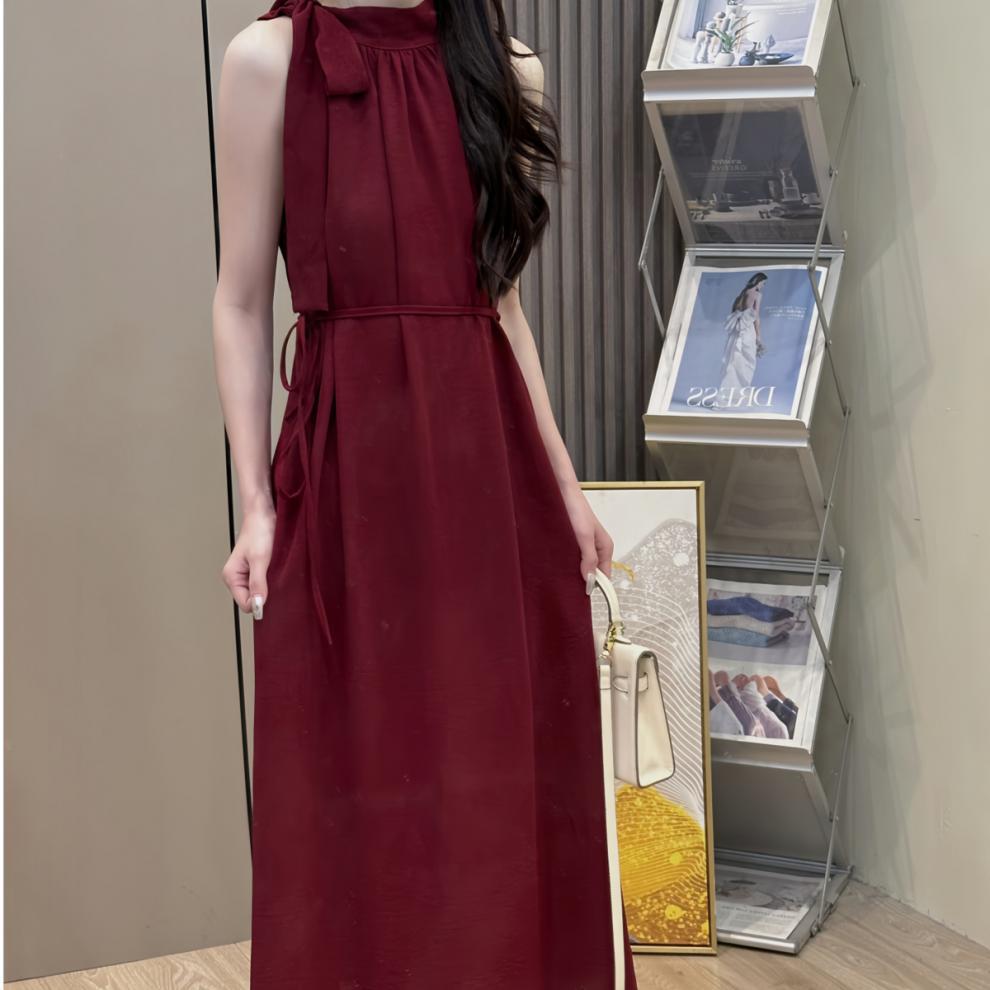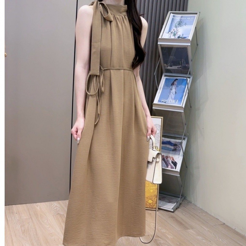 프렌치 여름 여성용 서스펜더 드레스, 오프숄더 레이스업, 루즈하고 슬림한 홀리데이 스타일, 레귤러 슬리브 드레이프 스커트스토어 가기