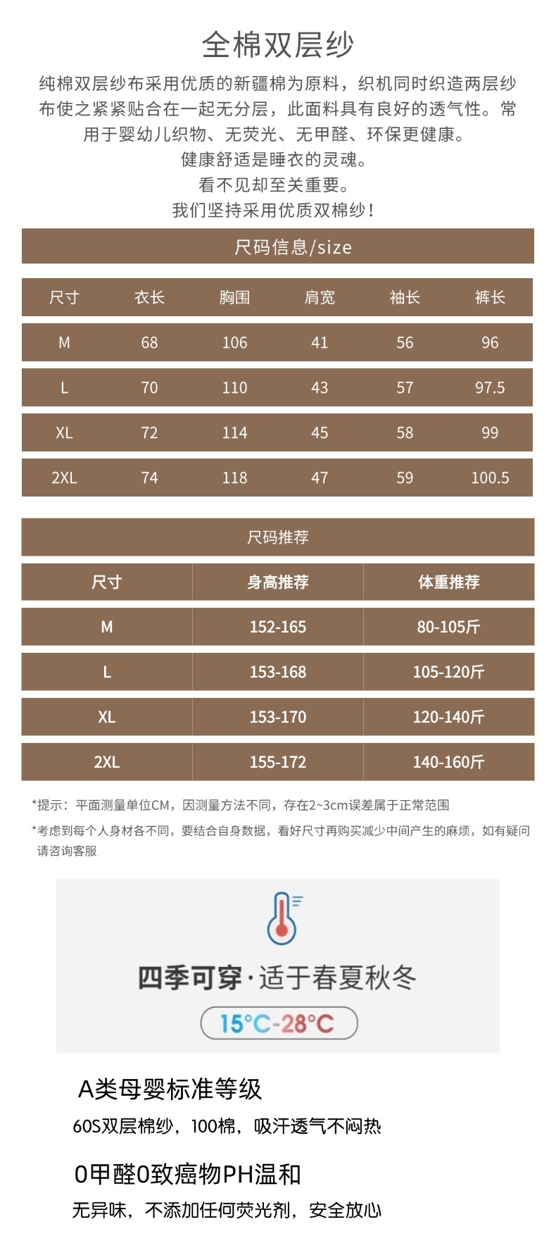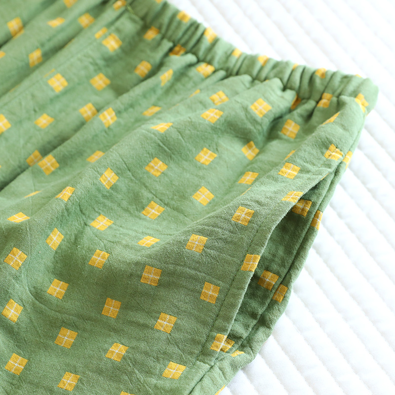 Huayan 면 더블 레이어 면사 여성 홈웨어 긴팔 바지 정장 잠옷 캐주얼 순수 면 통기성 얇은 스타일