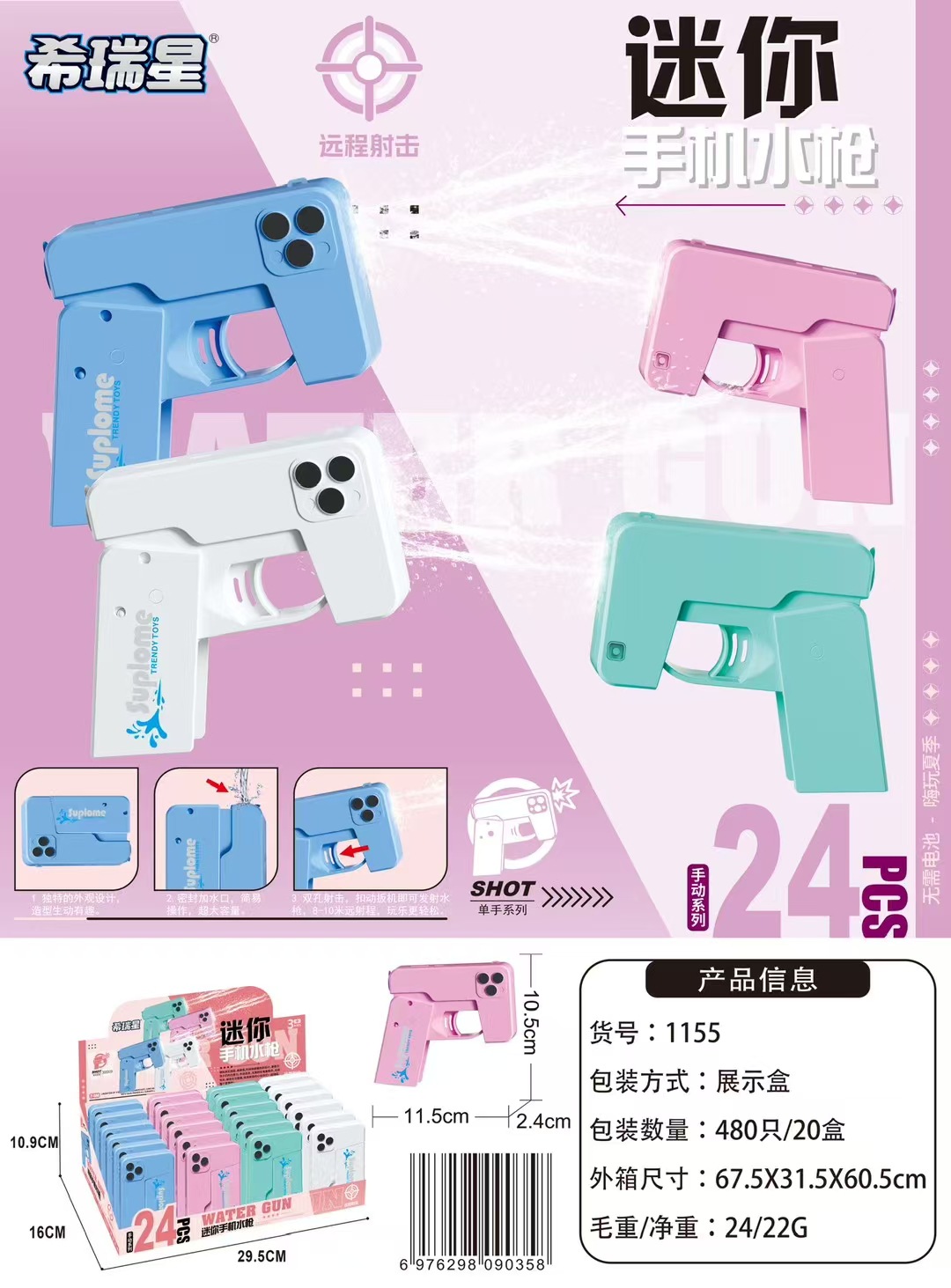 • 핑크 접이식 휴대폰 물총