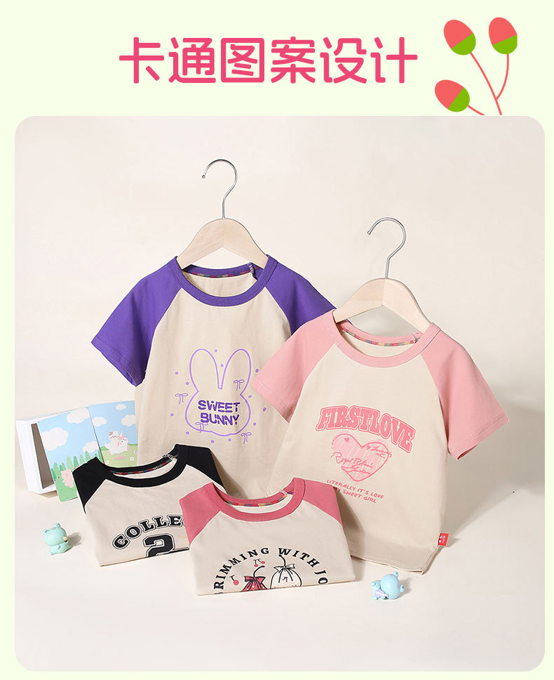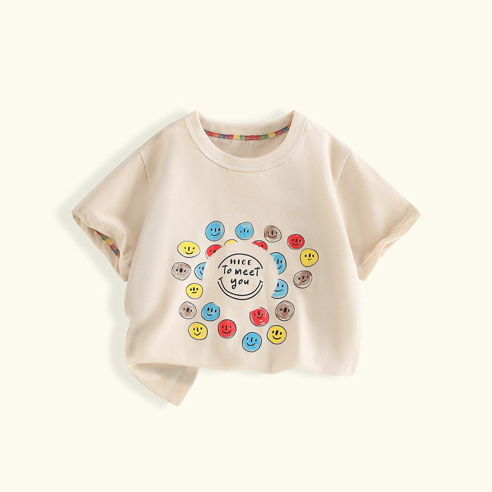 여름 어린이 반팔 티셔츠 2025 면 멀티 컬러 만화 인쇄 한 싱글 피스 라운드 넥 반소매 정상 소년 소녀