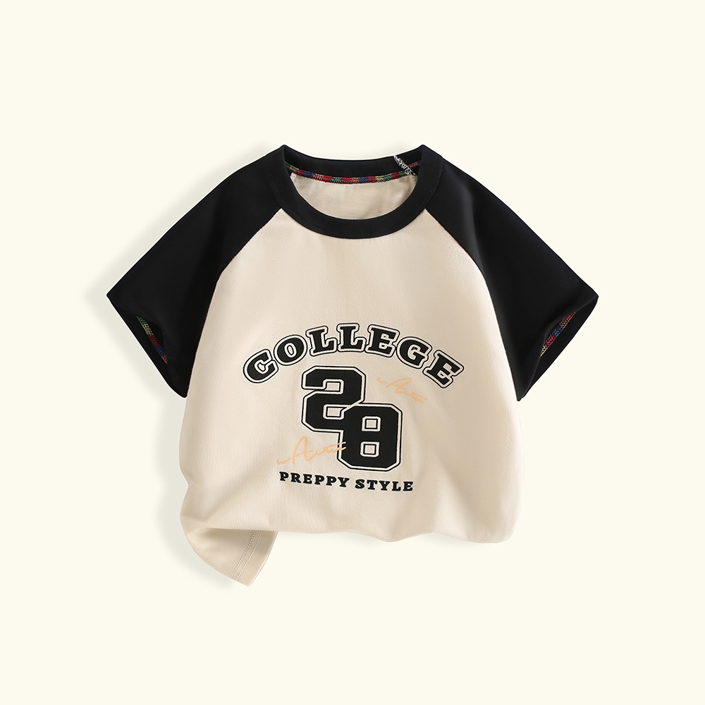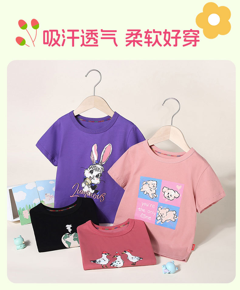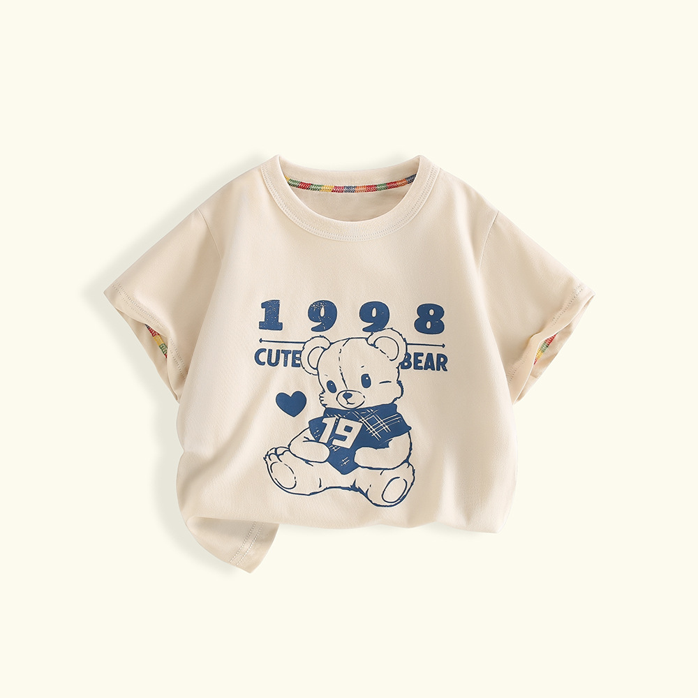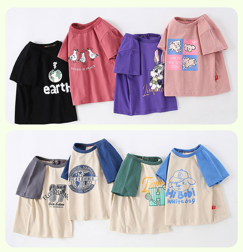 여름 어린이 반팔 티셔츠 2025 면 멀티 컬러 만화 인쇄 한 싱글 피스 라운드 넥 반소매 정상 소년 소녀스토어 가기