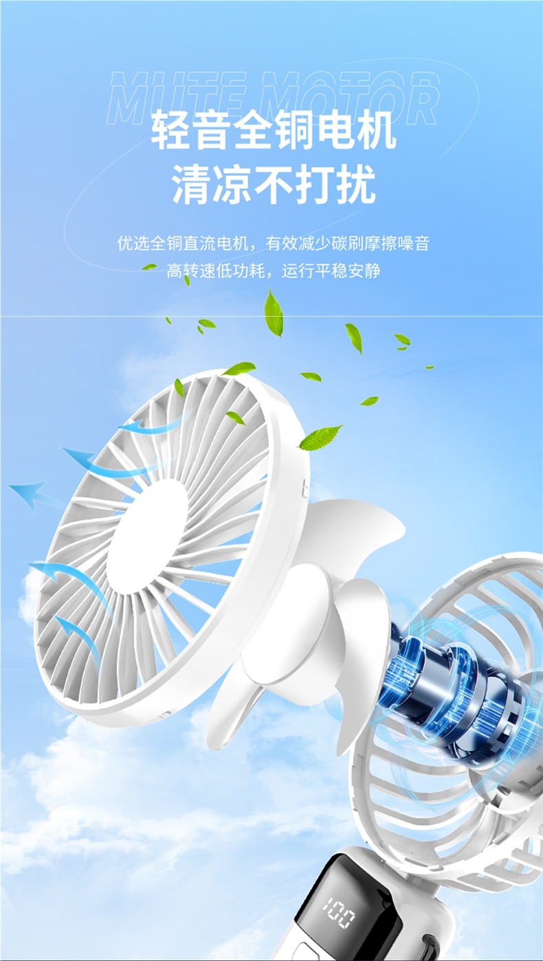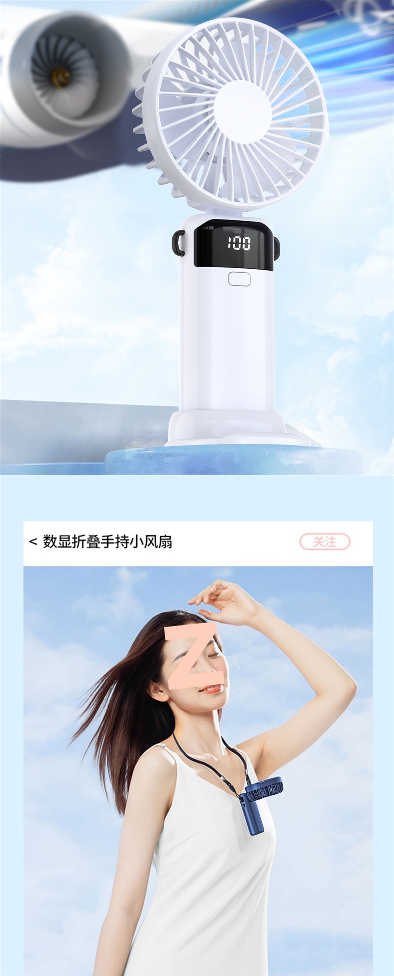 • 기본 버전 [심플 화이트·10000mAh] 지능형 디지털 디스플레이丨5단계 조절 가능丨데스크탑 + 핸드헬드 + 행잉 넥