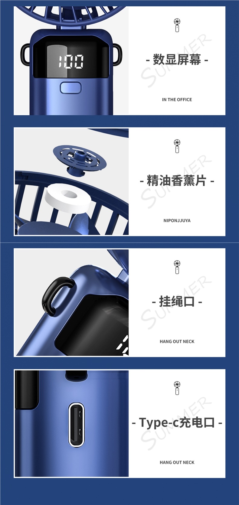 • 기본 버전 [라이트 럭셔리 블루·10000mAh] 지능형 디지털 디스플레이丨5단계 조절 가능丨데스크탑 + 핸드헬드 + 행잉 넥