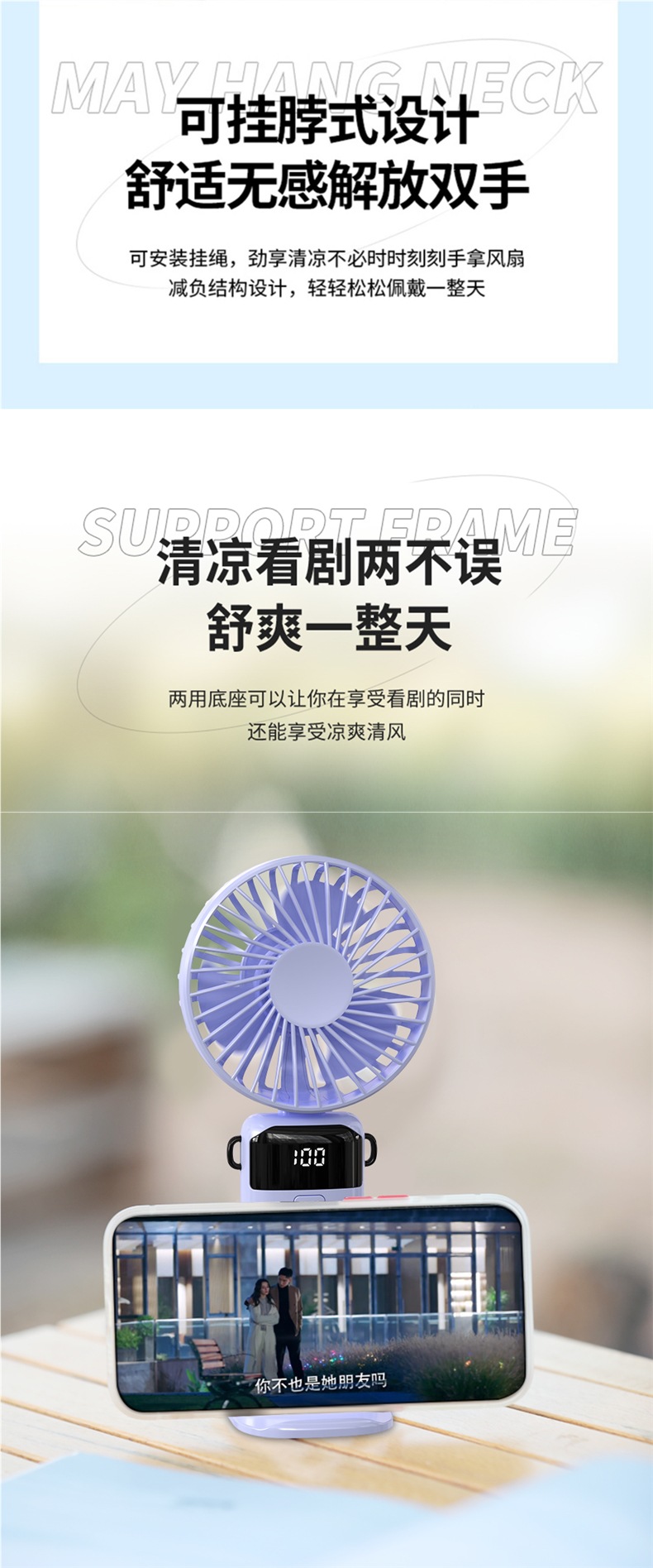 • 기본 버전 [타로 퍼플·10000mAh] 지능형 디지털 디스플레이丨5단계 조절 가능丨데스크탑 + 핸드헬드 + 행잉 넥