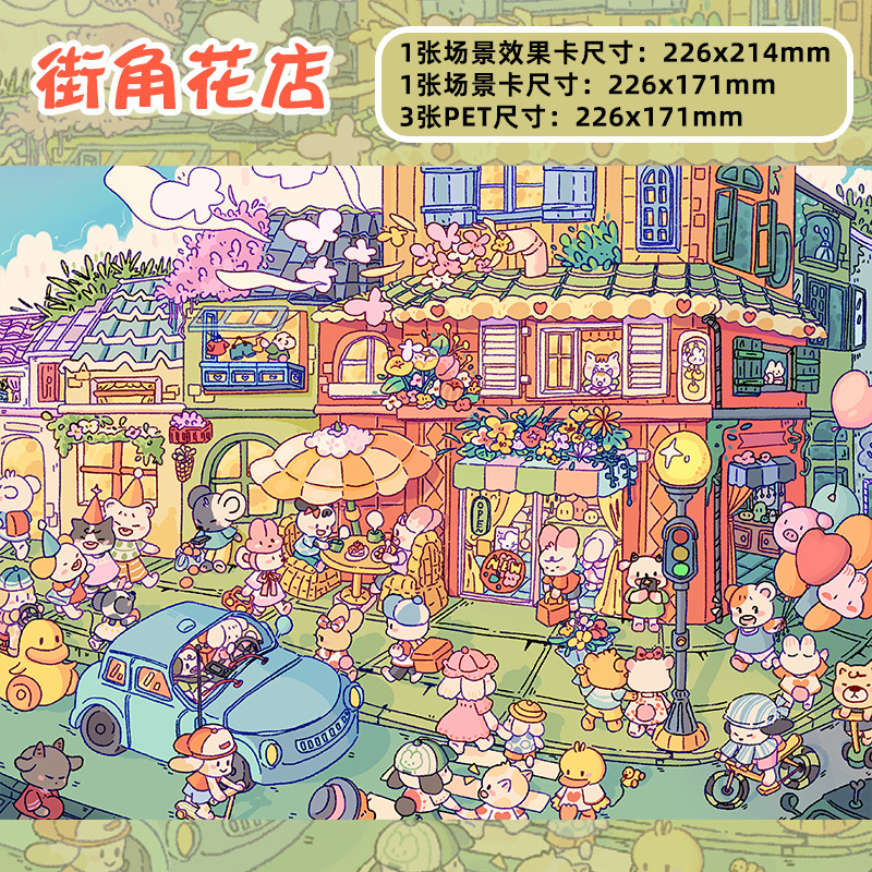 Yan You 2.0 시리즈 조경 스티커 DIY 귀여운 만화 거리 코너 꽃 가게 타오 위안 빌라 마이크로 대형 장면 콜라주