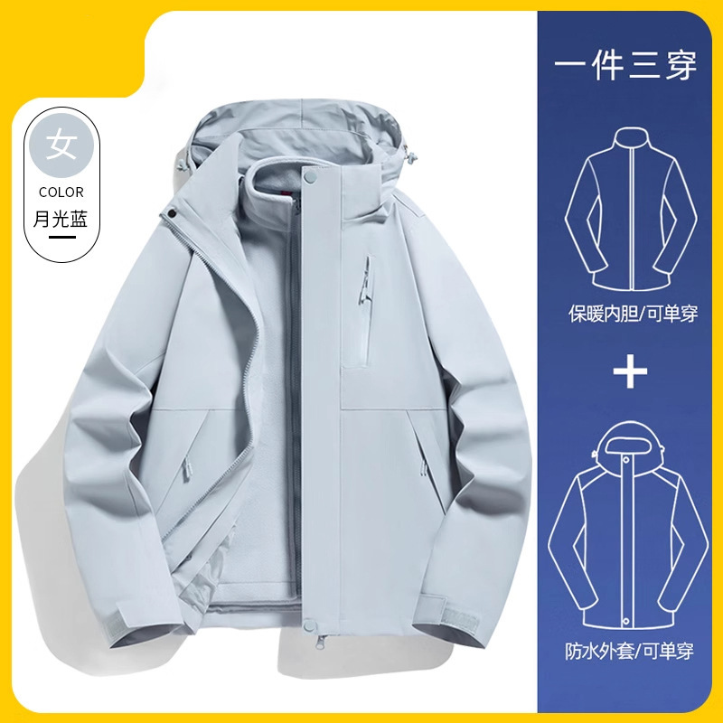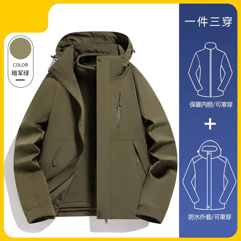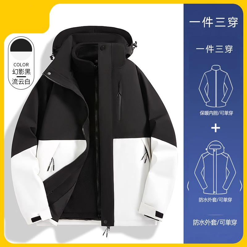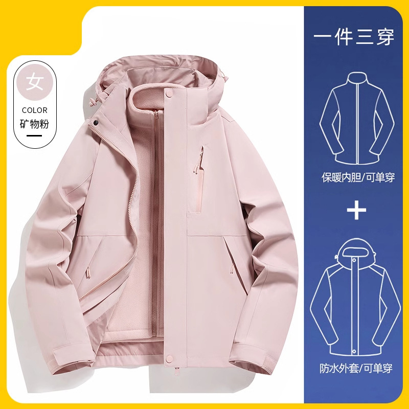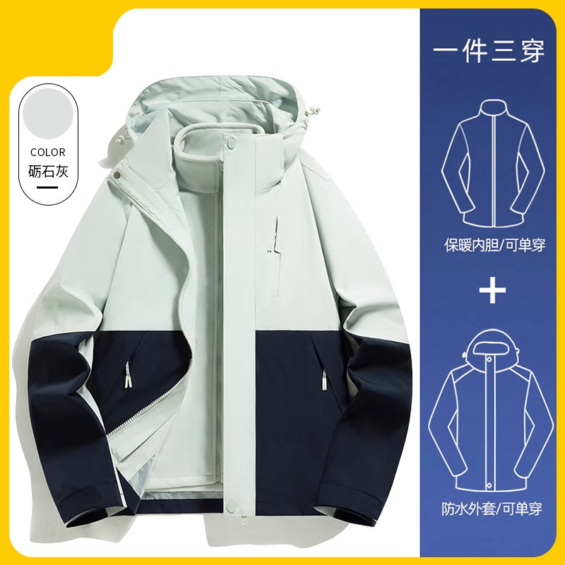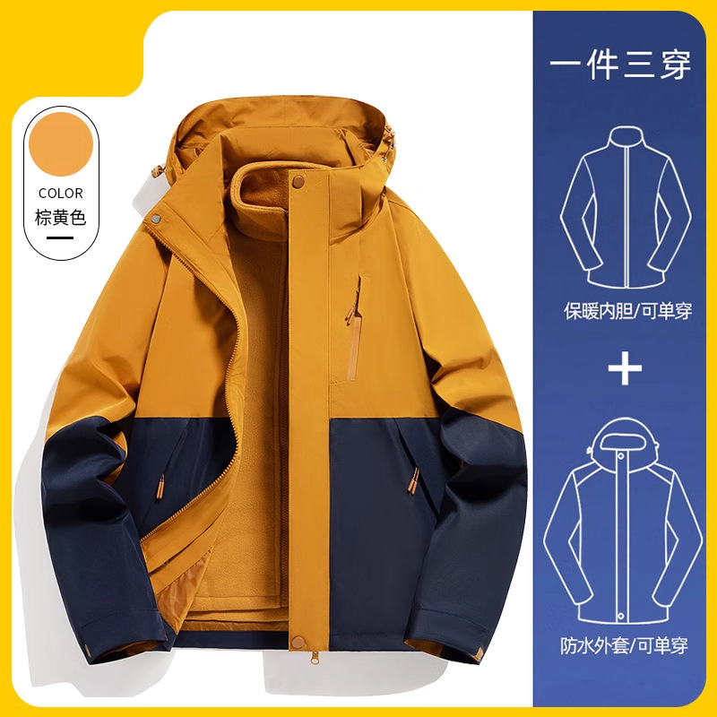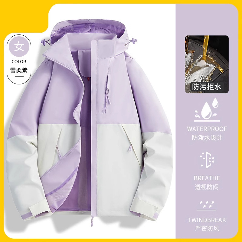 Camel HJCAMEL 남성용 및 여성용 야간 퍼플 재킷, 가을 겨울 3-in-one 방풍 및 방수 소형 등산복스토어 가기