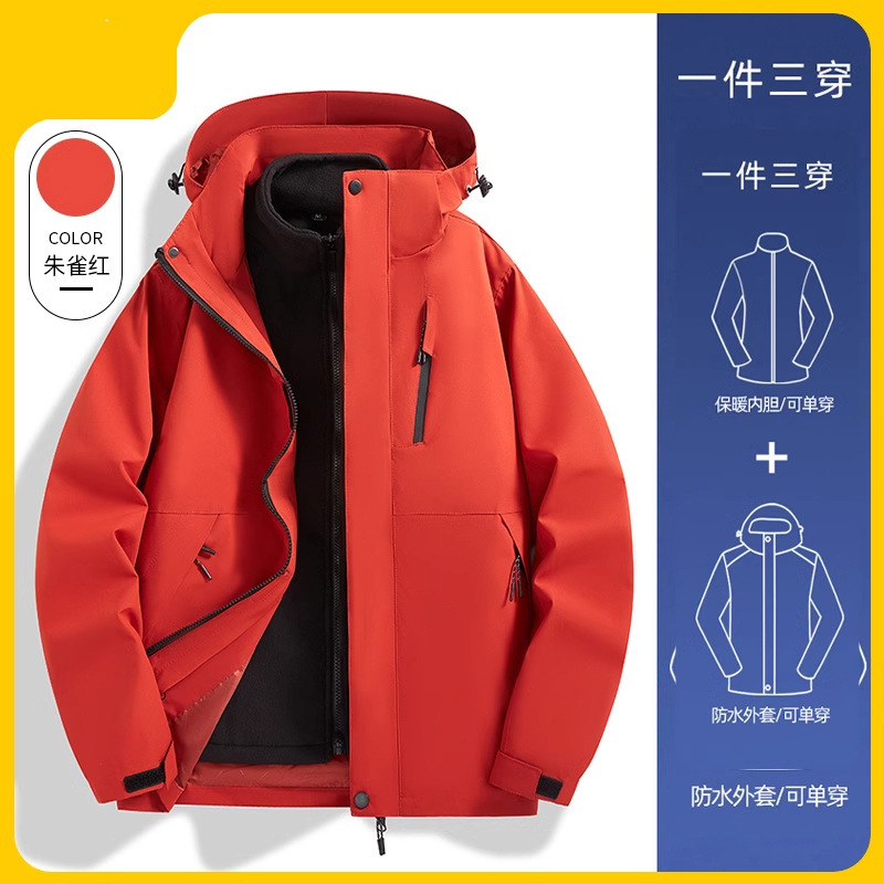 Camel HJCAMEL 남성용 및 여성용 야간 퍼플 재킷, 가을 겨울 3-in-one 방풍 및 방수 소형 등산복