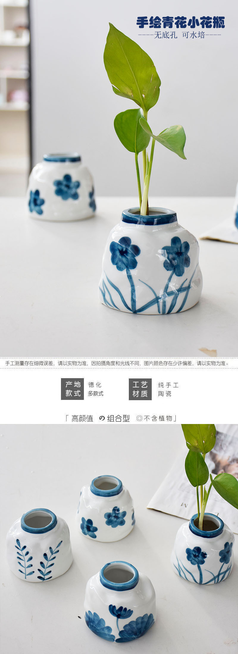 크리 에이 티브 손으로 그린 파란색과 흰색 세라믹 작은 꽃병 인터넷 연예인 물에 심은 pothos 수경 꽃병 데스크탑 사무실 장식 장식품스토어 가기