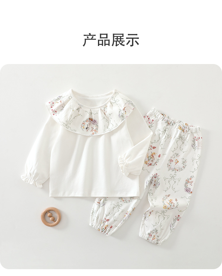 아기의 가을 옷과 바지 세트 순수한면 아기 소녀의 분할 홈 옷 소녀의 긴 소매 잠옷베이스 2 피스 세트