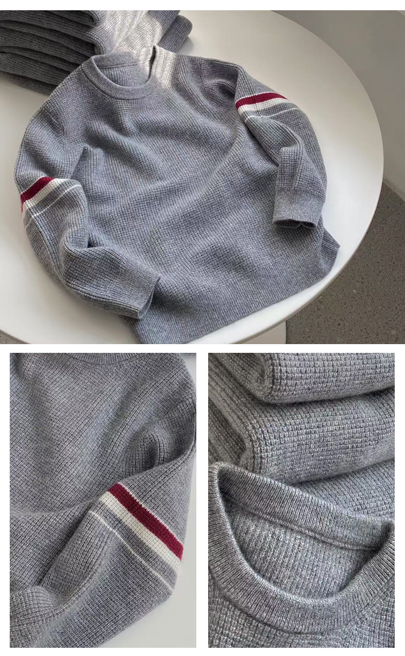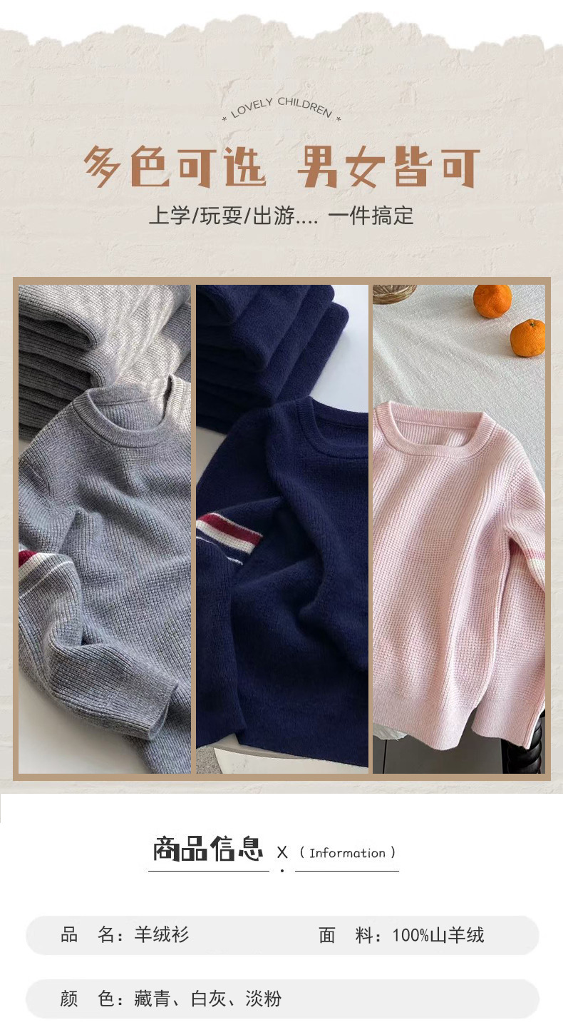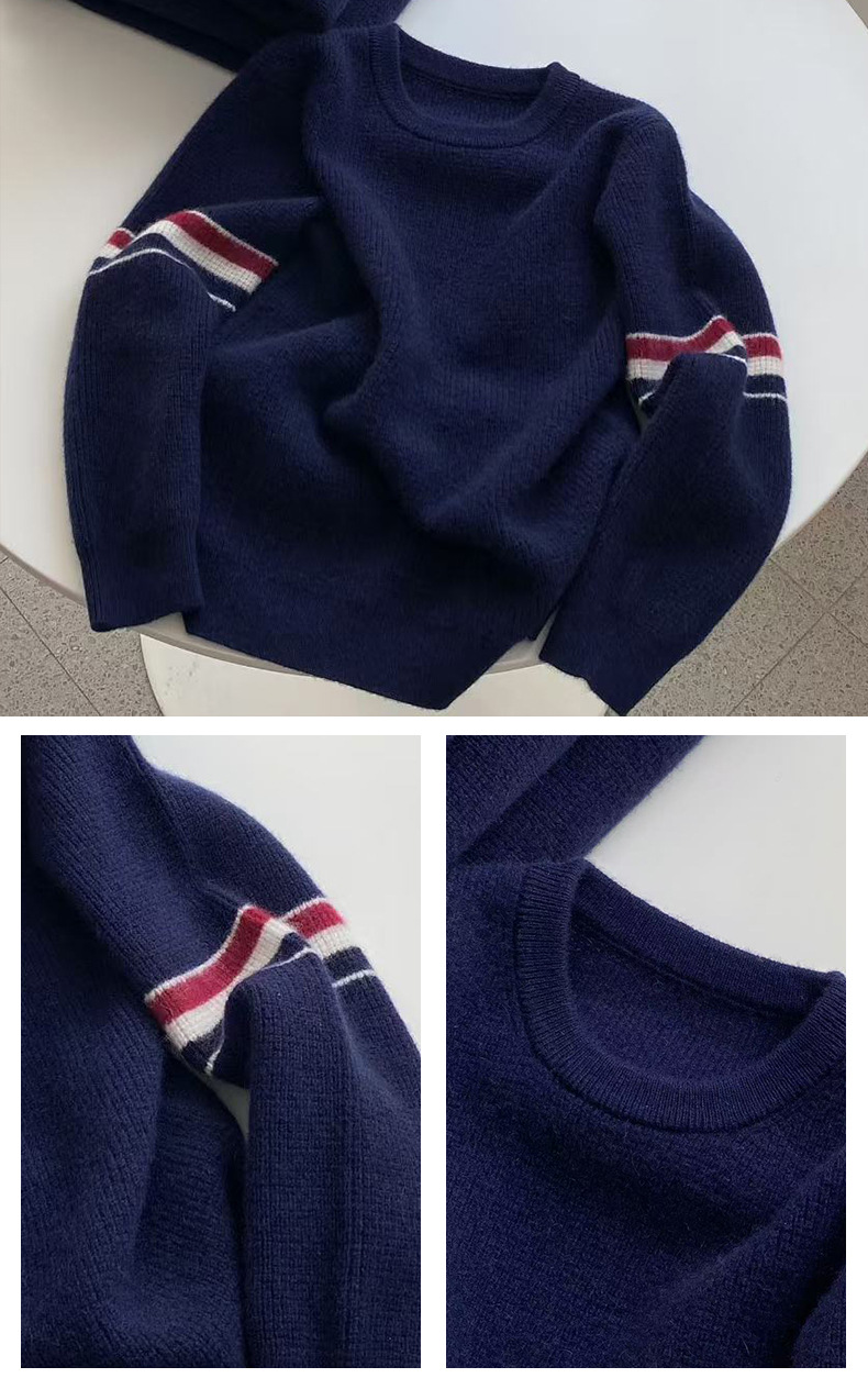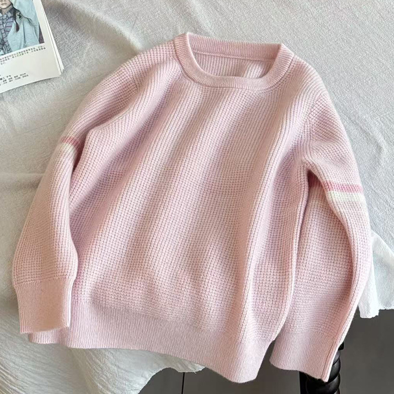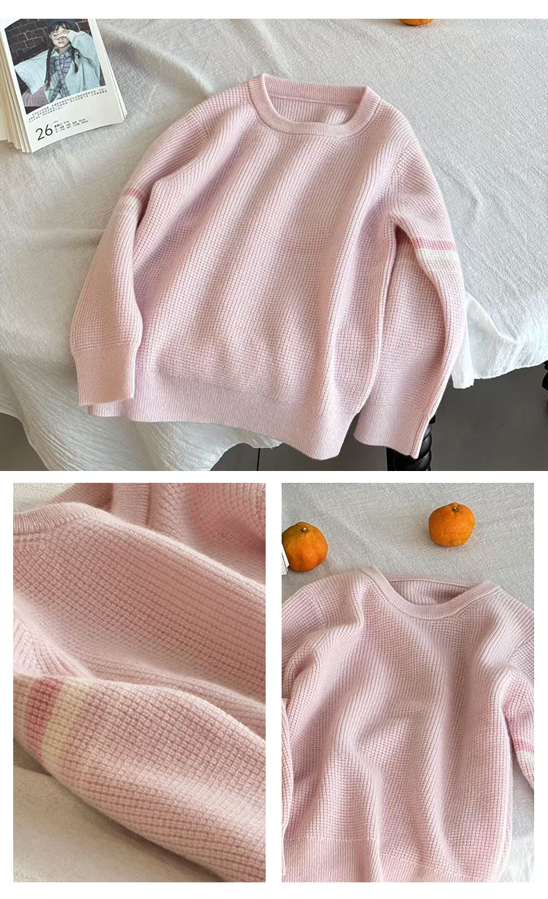새로운 스타일의 소년과 소녀 아기 부모-자식 착용 작은 향기로운 니트 스트라이프 대비 색상 라운드 넥 풀오버 스웨터 100 캐시미어