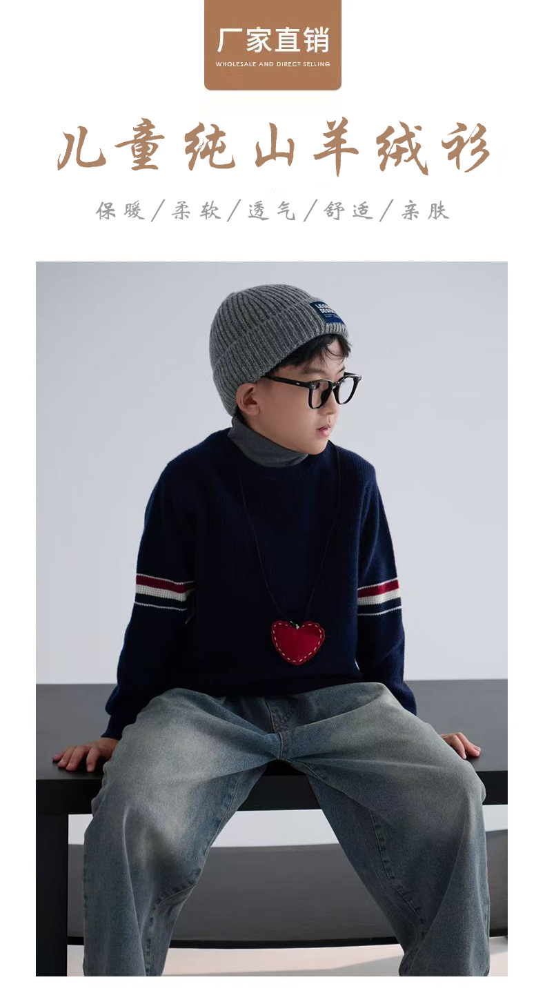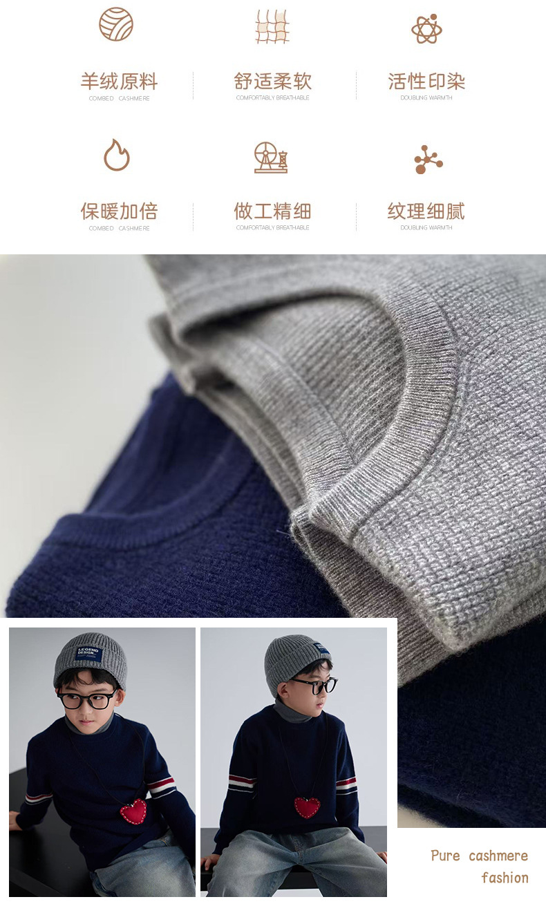 새로운 스타일의 소년과 소녀 아기 부모-자식 착용 작은 향기로운 니트 스트라이프 대비 색상 라운드 넥 풀오버 스웨터 100 캐시미어스토어 가기