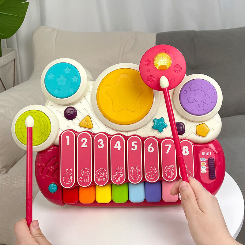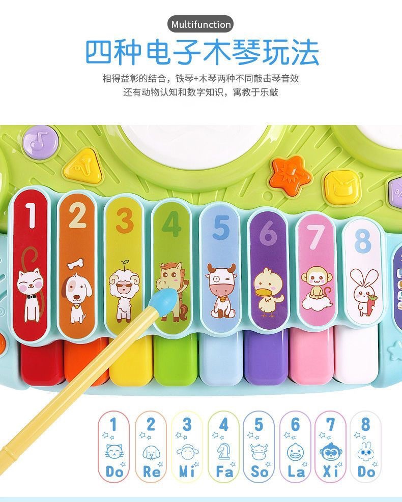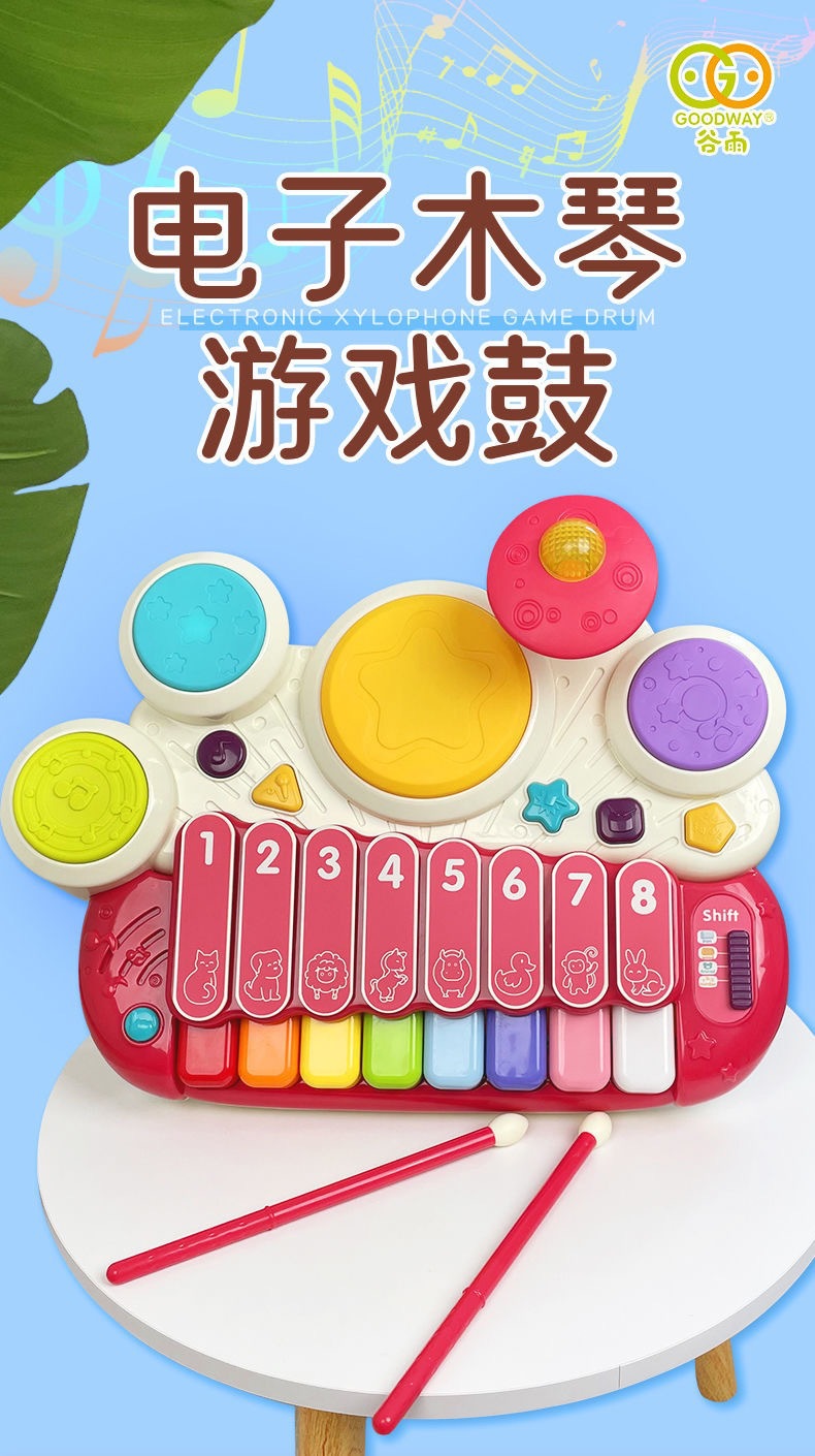구유 통 르 톈디 어린이 조기 교육 음악 전자 실로폰 게임 드럼 소년 소녀 교육 계몽주의 장난감 도매