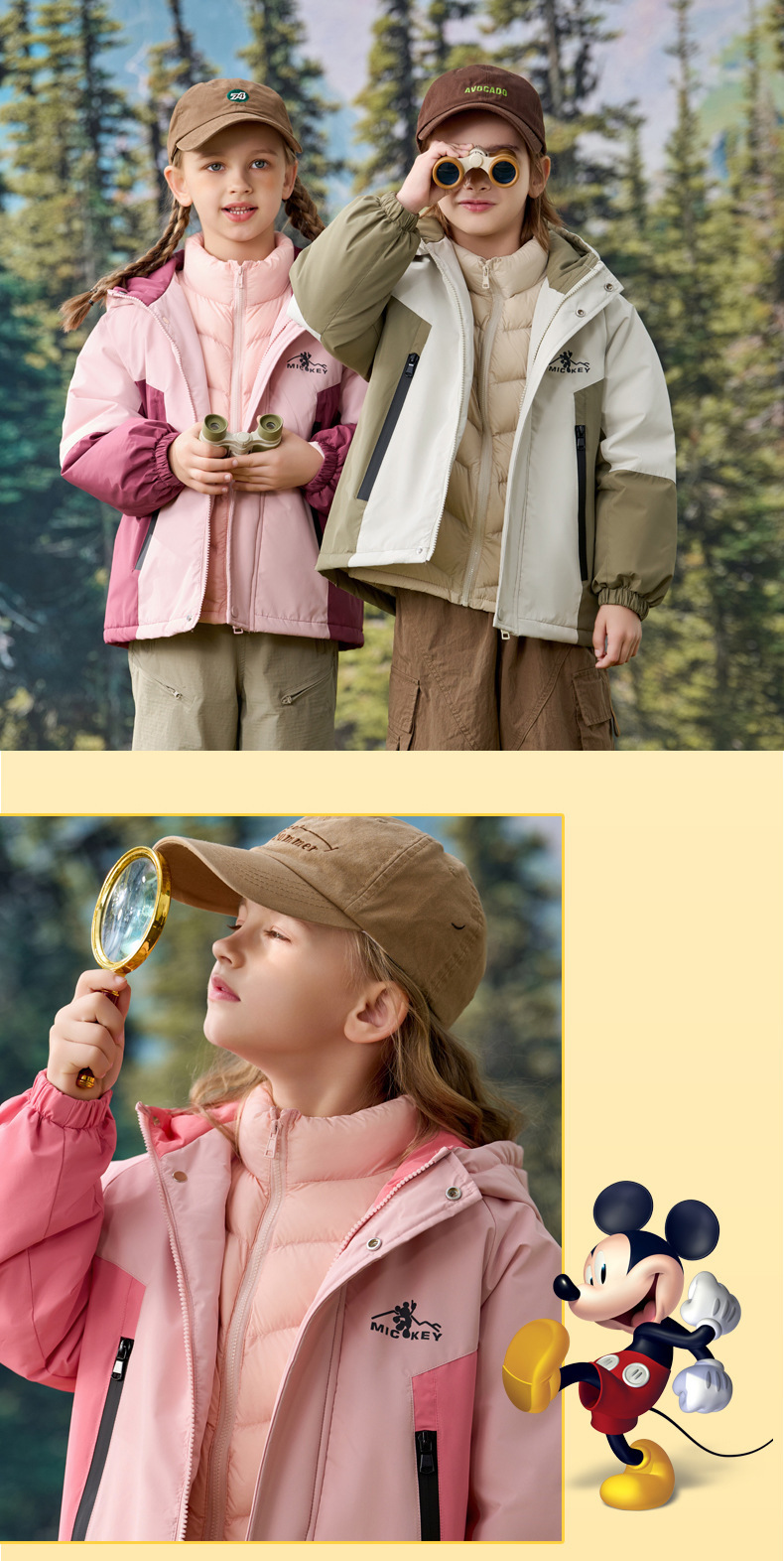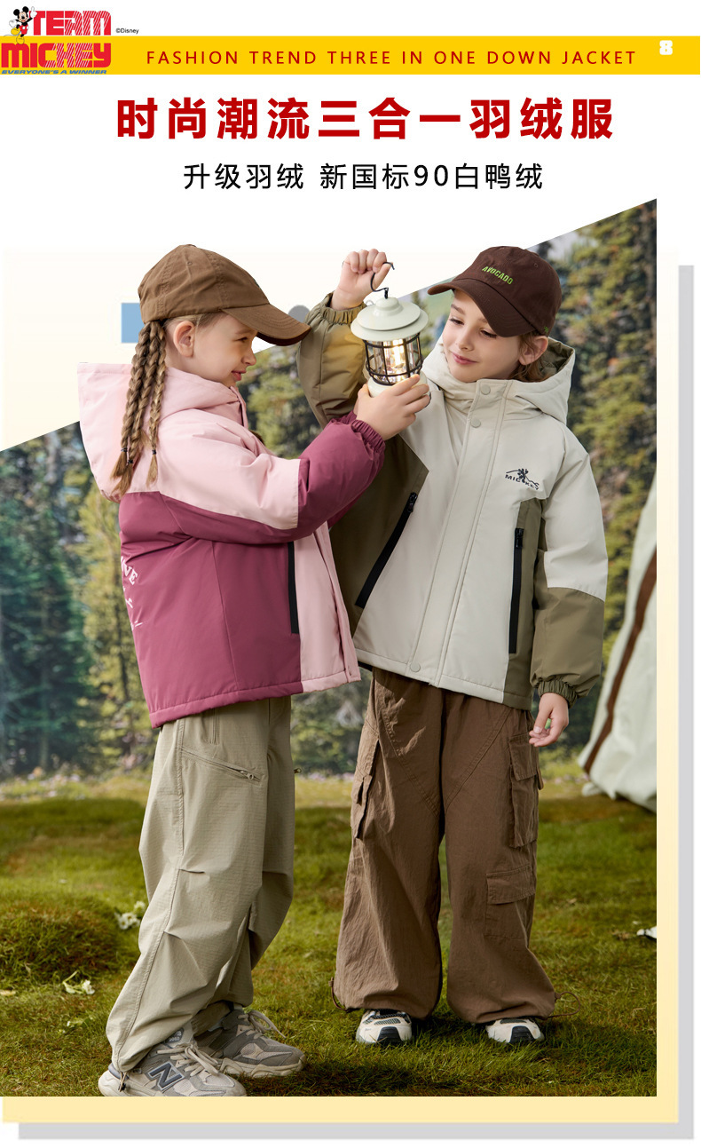 디즈니 아동용 아웃도어 재킷 중소형 아동복 3-in-One 90 화이트 덕 다운 등산복