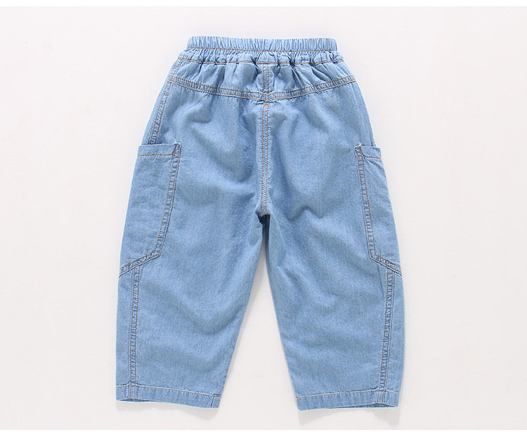 100% 면 여름 소녀 청바지 얇은 느슨한 스트레이트 캐주얼 바지 아기 어린이 면화 바지스토어 가기
