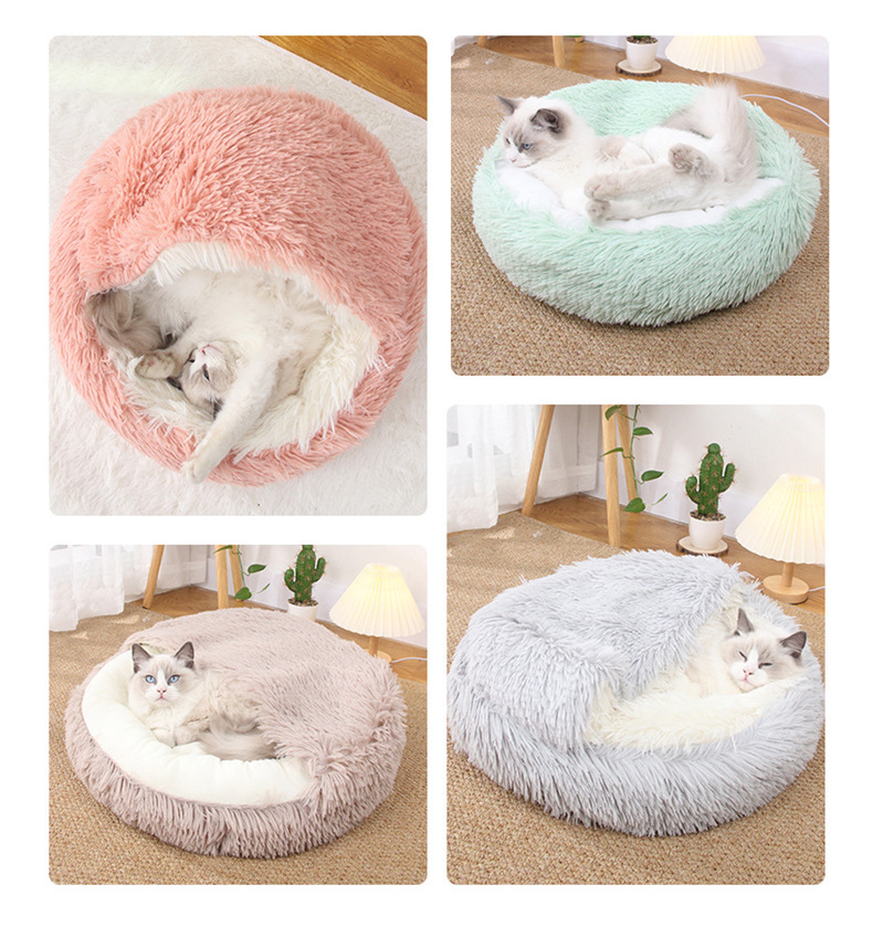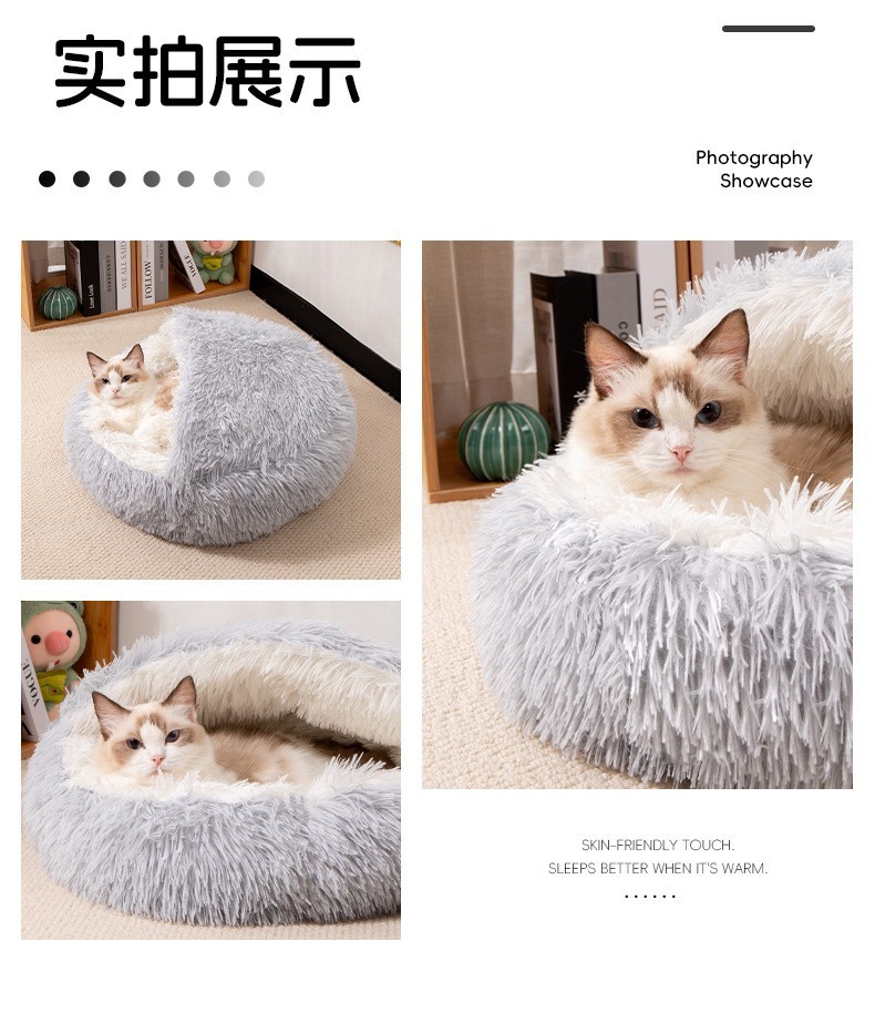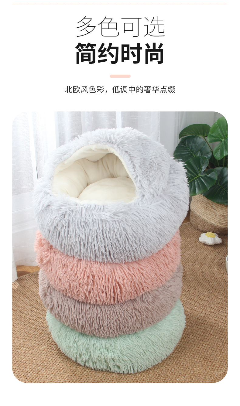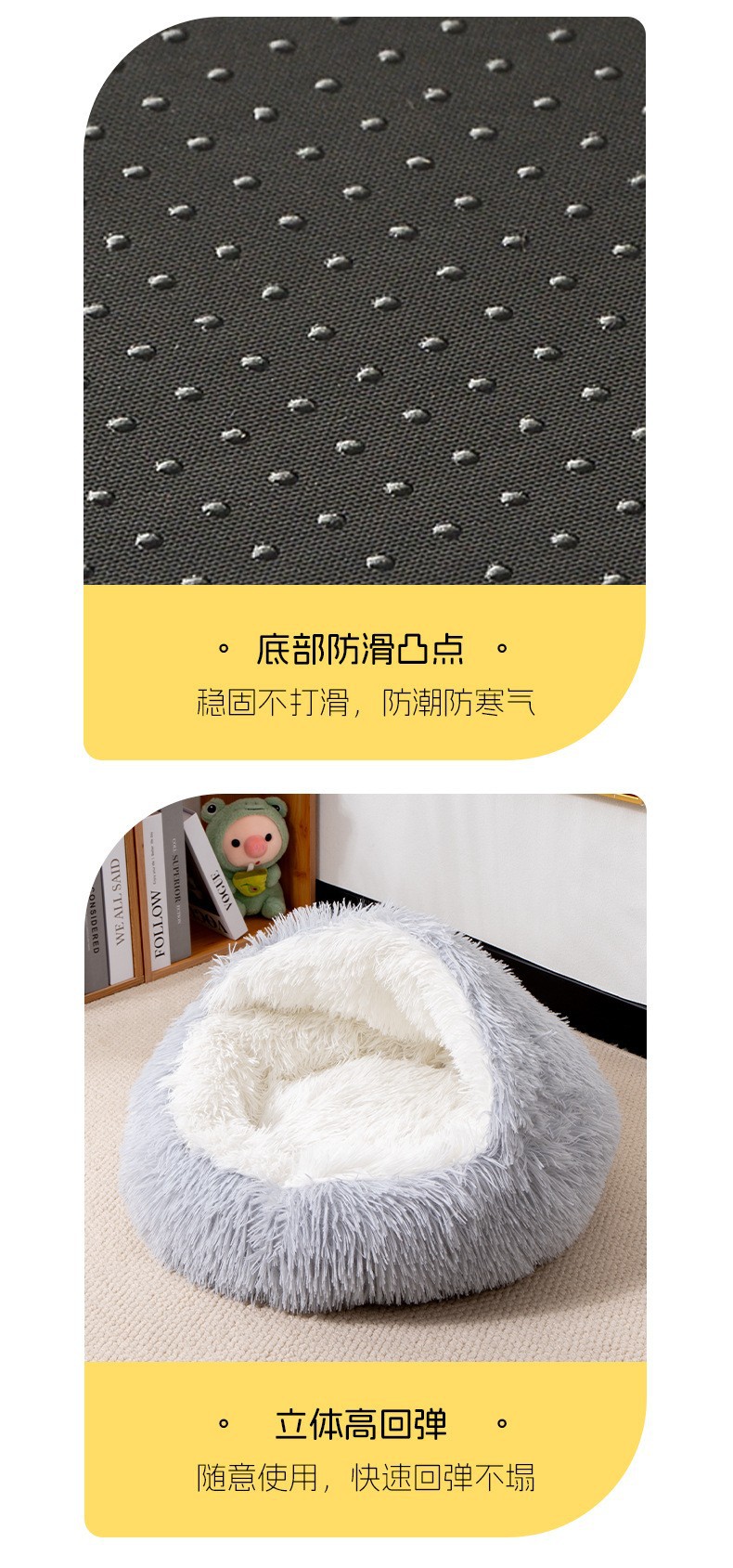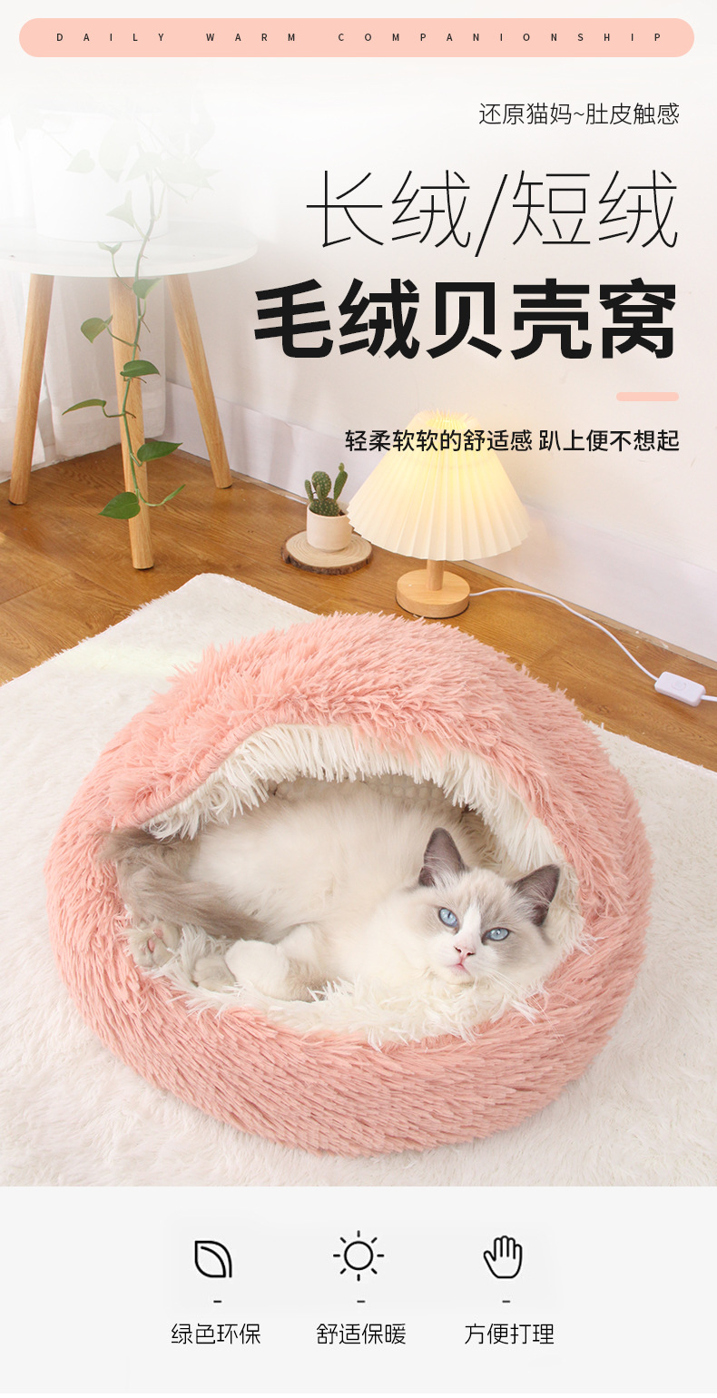 긴털 플러시 쉘 모양의 겨울철 따뜻하고 편안한 애완동물 둥지, 고양이 둥지, 긴털 반밀폐형 고양이 둥지, 애완용품스토어 가기