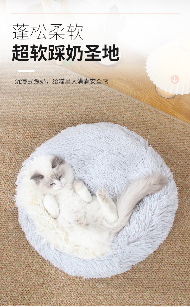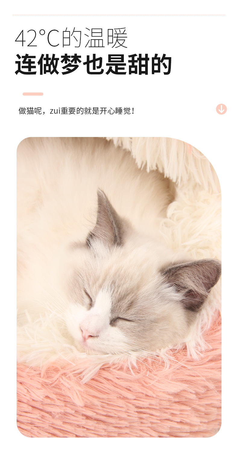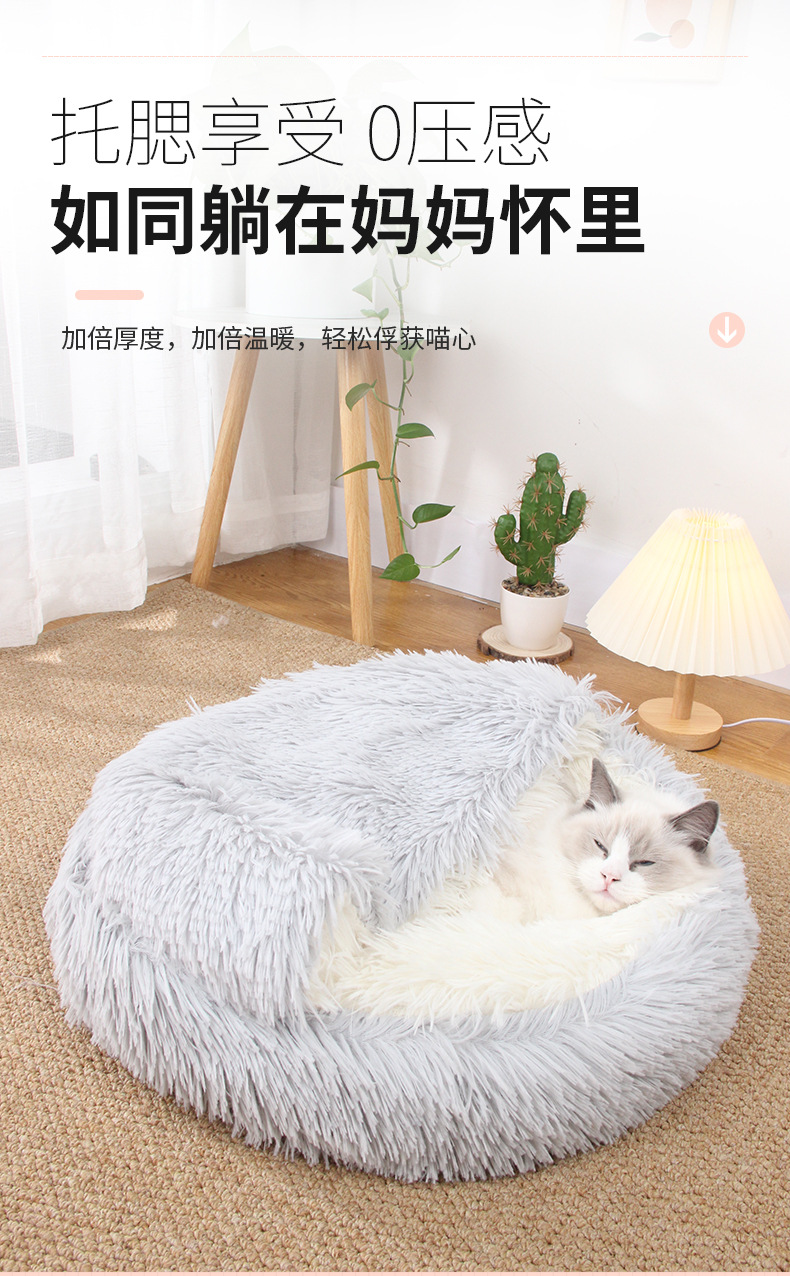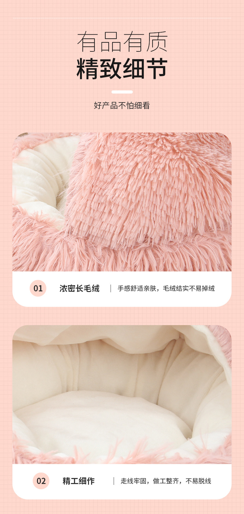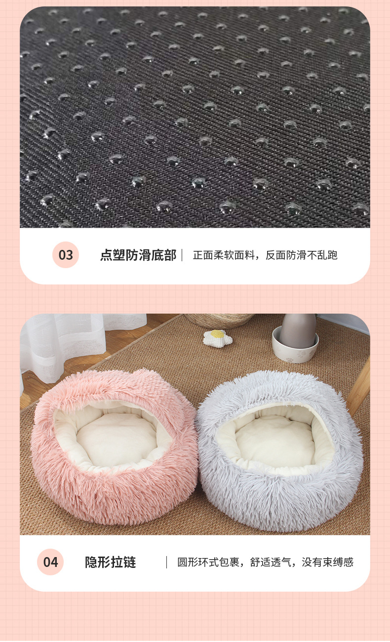 긴털 플러시 쉘 모양의 겨울철 따뜻하고 편안한 애완동물 둥지, 고양이 둥지, 긴털 반밀폐형 고양이 둥지, 애완용품스토어 가기