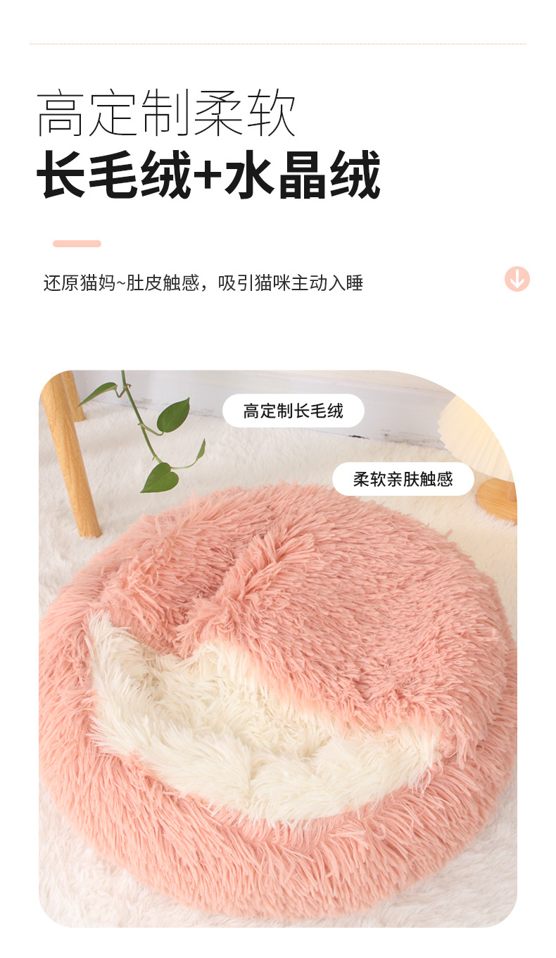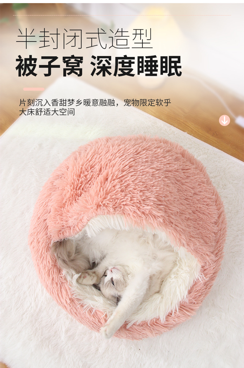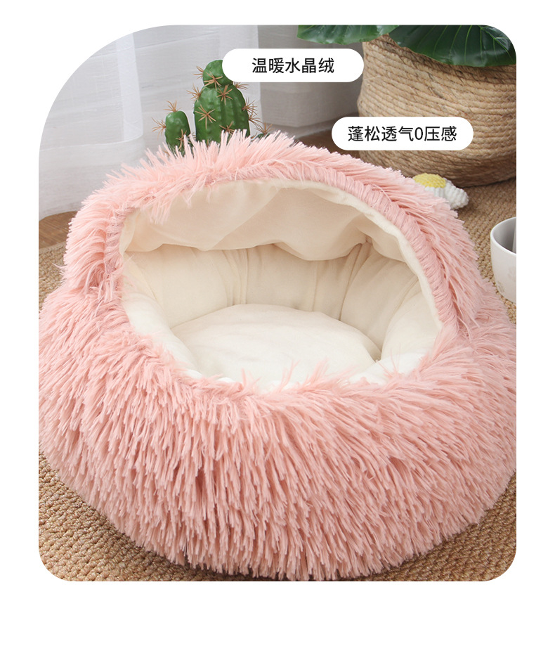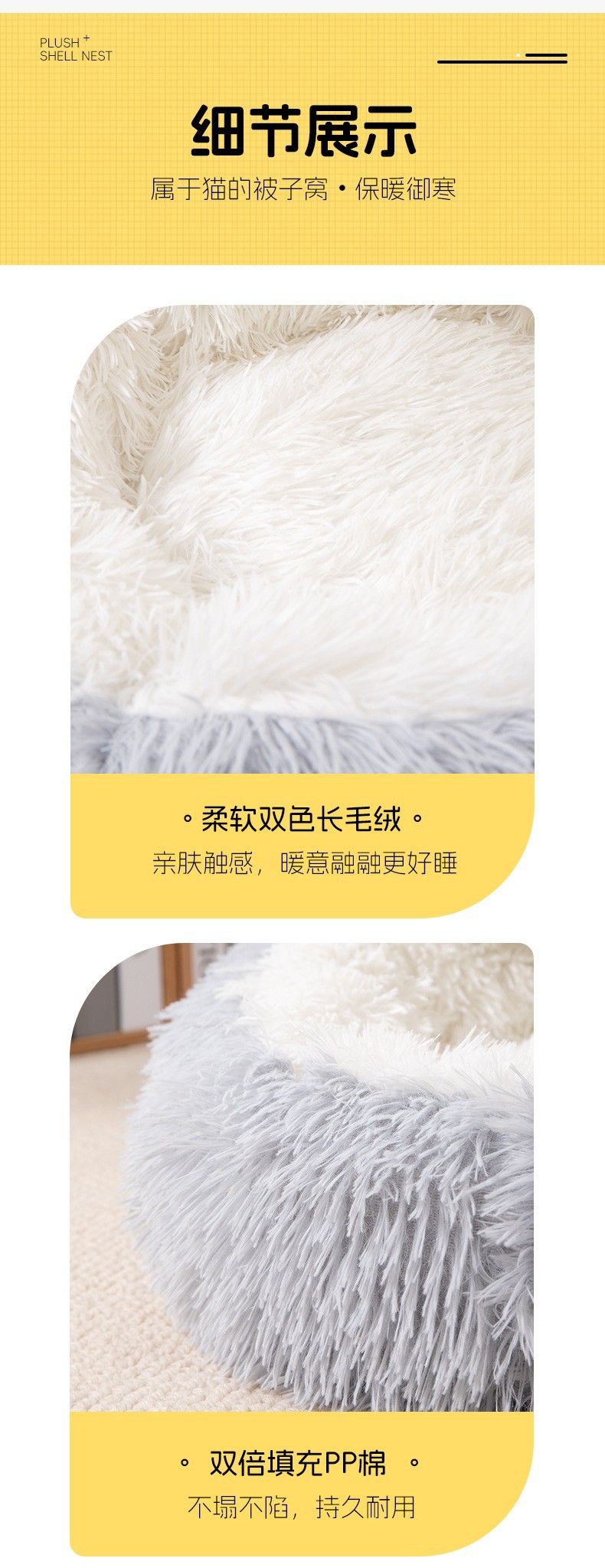 긴털 플러시 쉘 모양의 겨울철 따뜻하고 편안한 애완동물 둥지, 고양이 둥지, 긴털 반밀폐형 고양이 둥지, 애완용품