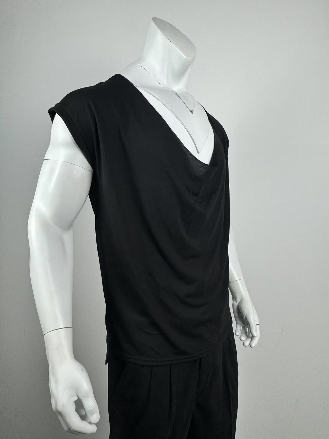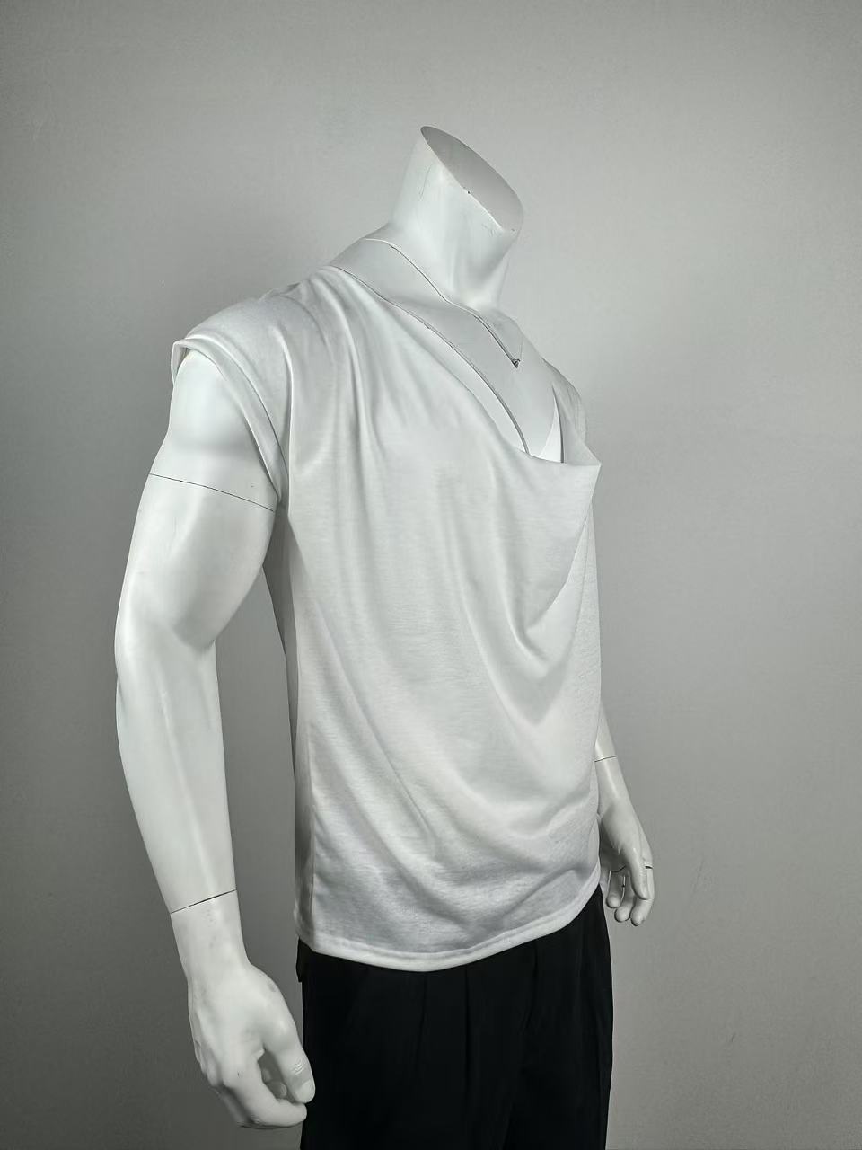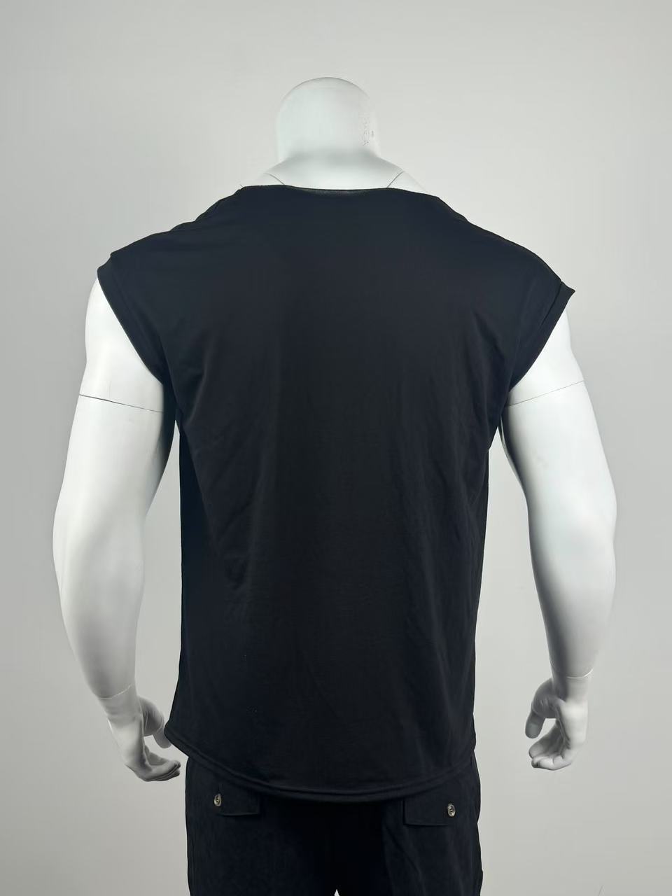 국경 간 남자 아마존 핫 솔리드 컬러 민소매 스포츠 V-넥 베이스 셔츠 유럽과 미국의 와이드 숄더 솔리드 컬러 스윙 칼라 조끼
