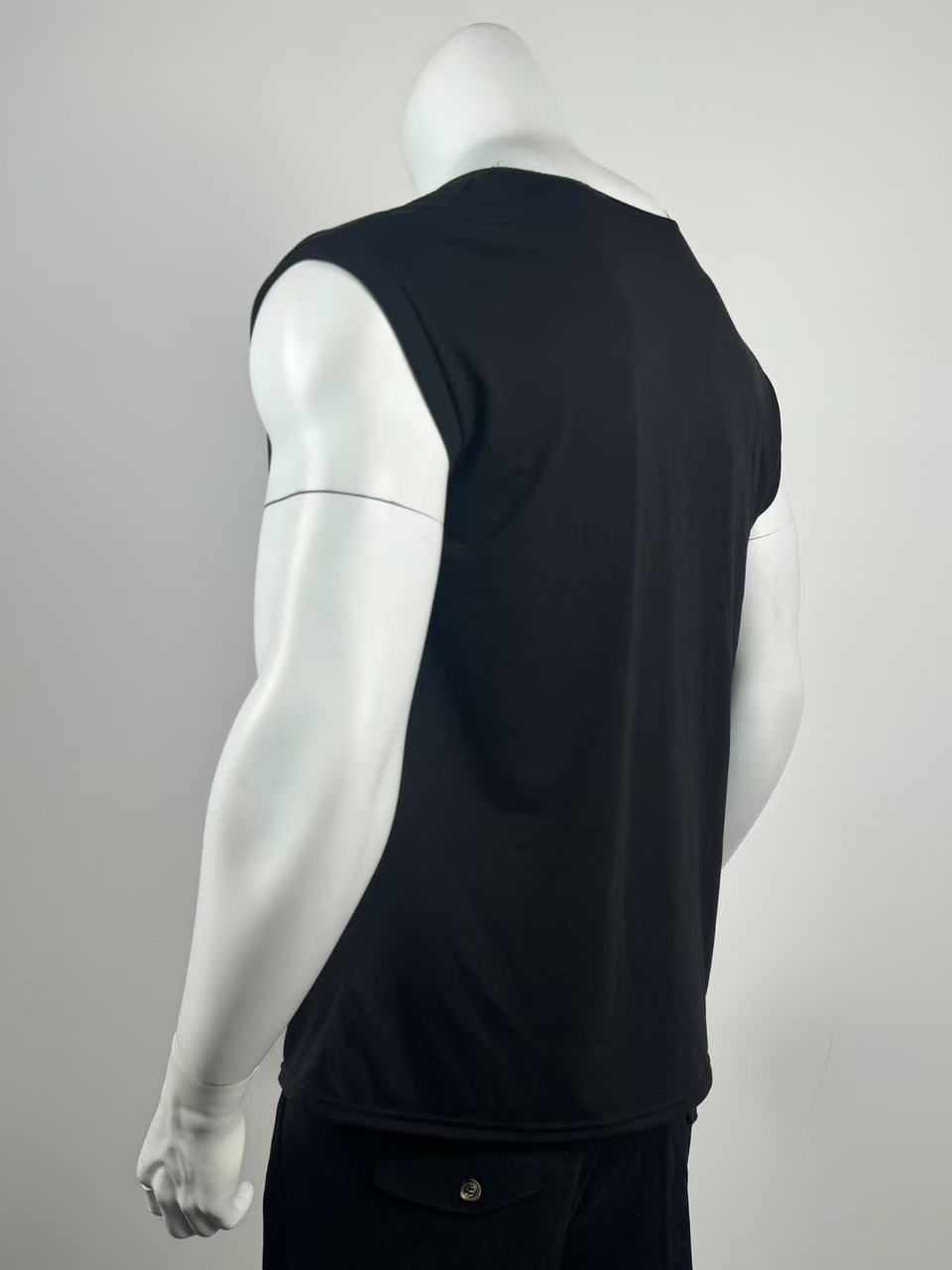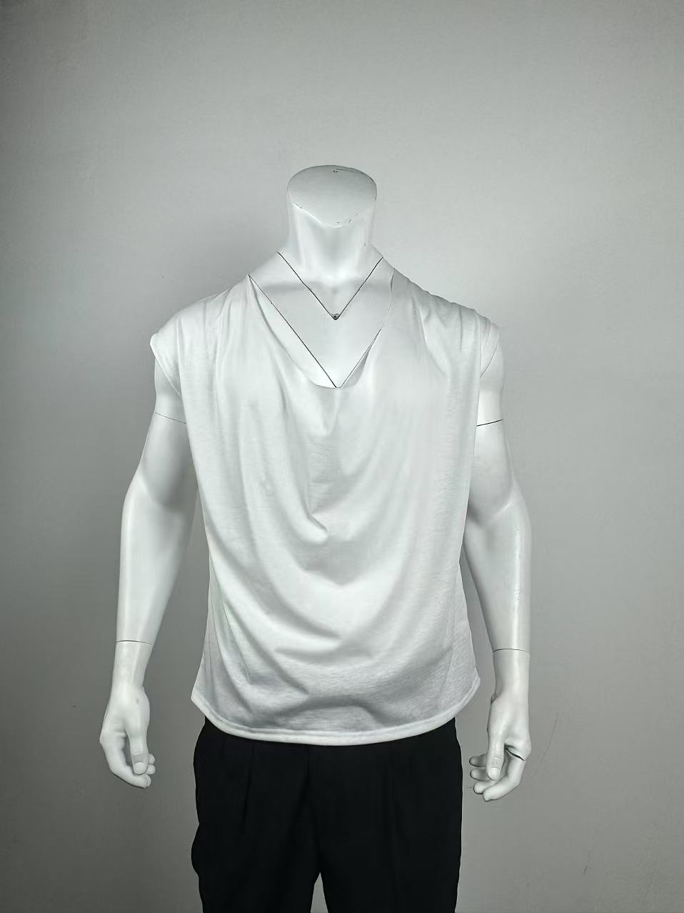 국경 간 남자 아마존 핫 솔리드 컬러 민소매 스포츠 V-넥 베이스 셔츠 유럽과 미국의 와이드 숄더 솔리드 컬러 스윙 칼라 조끼스토어 가기