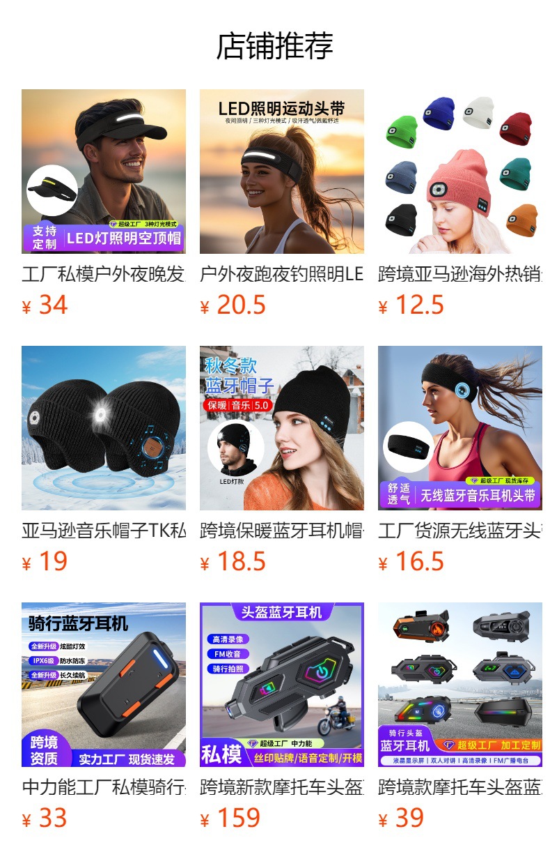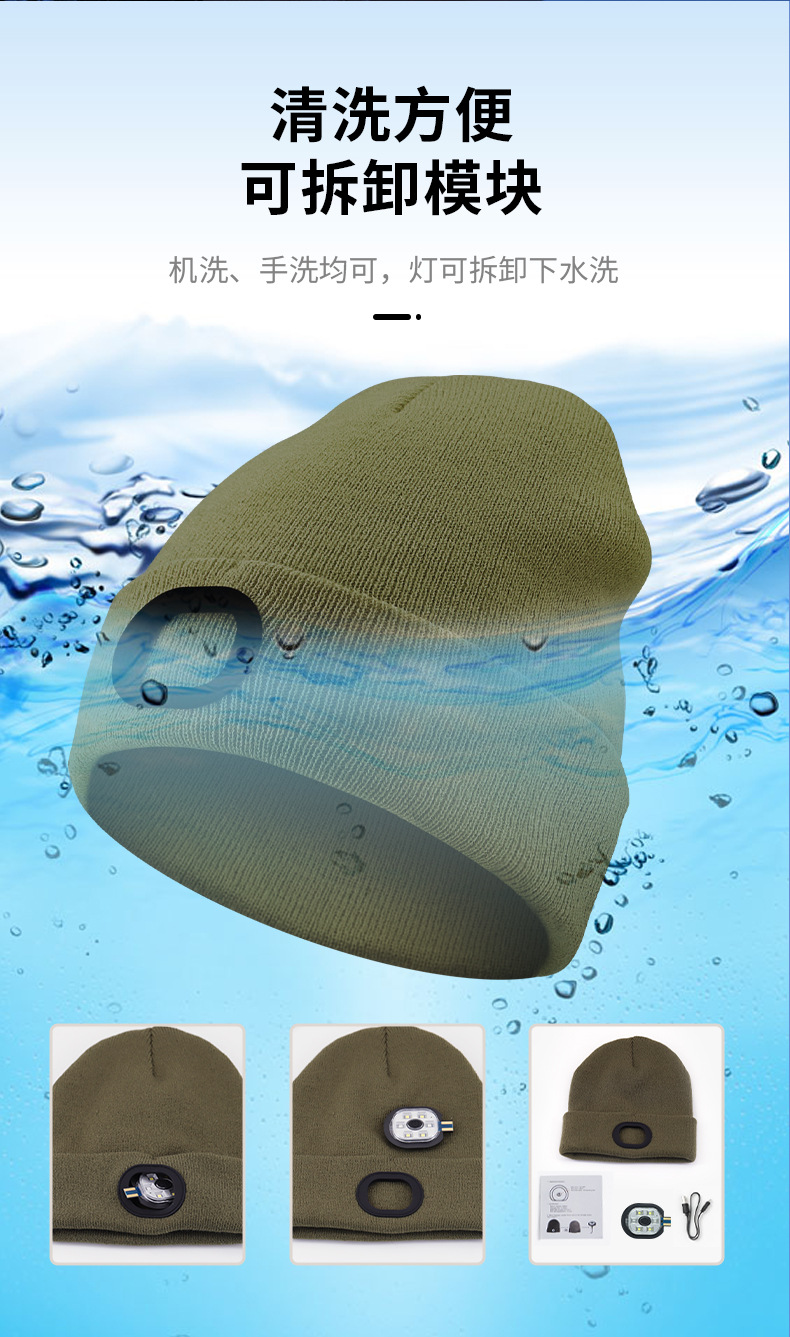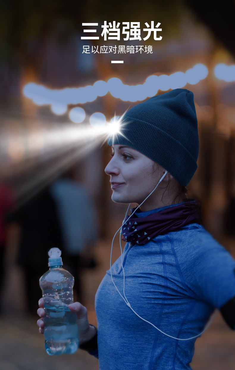Temu 국경 간 소스 야외 야간 조명 경고 충전식 헤드 착용 LED 라이트 플립 니트 모자스토어 가기