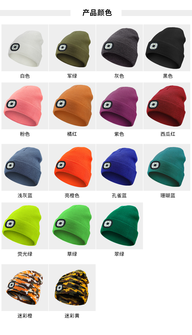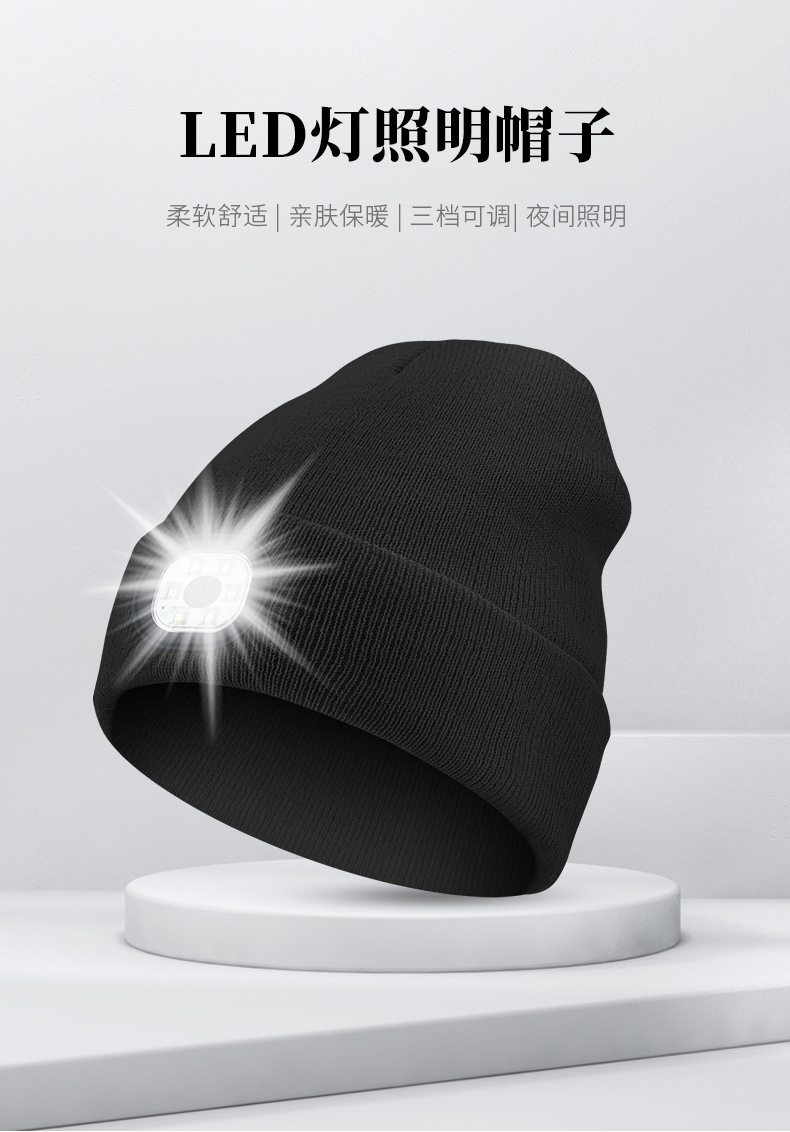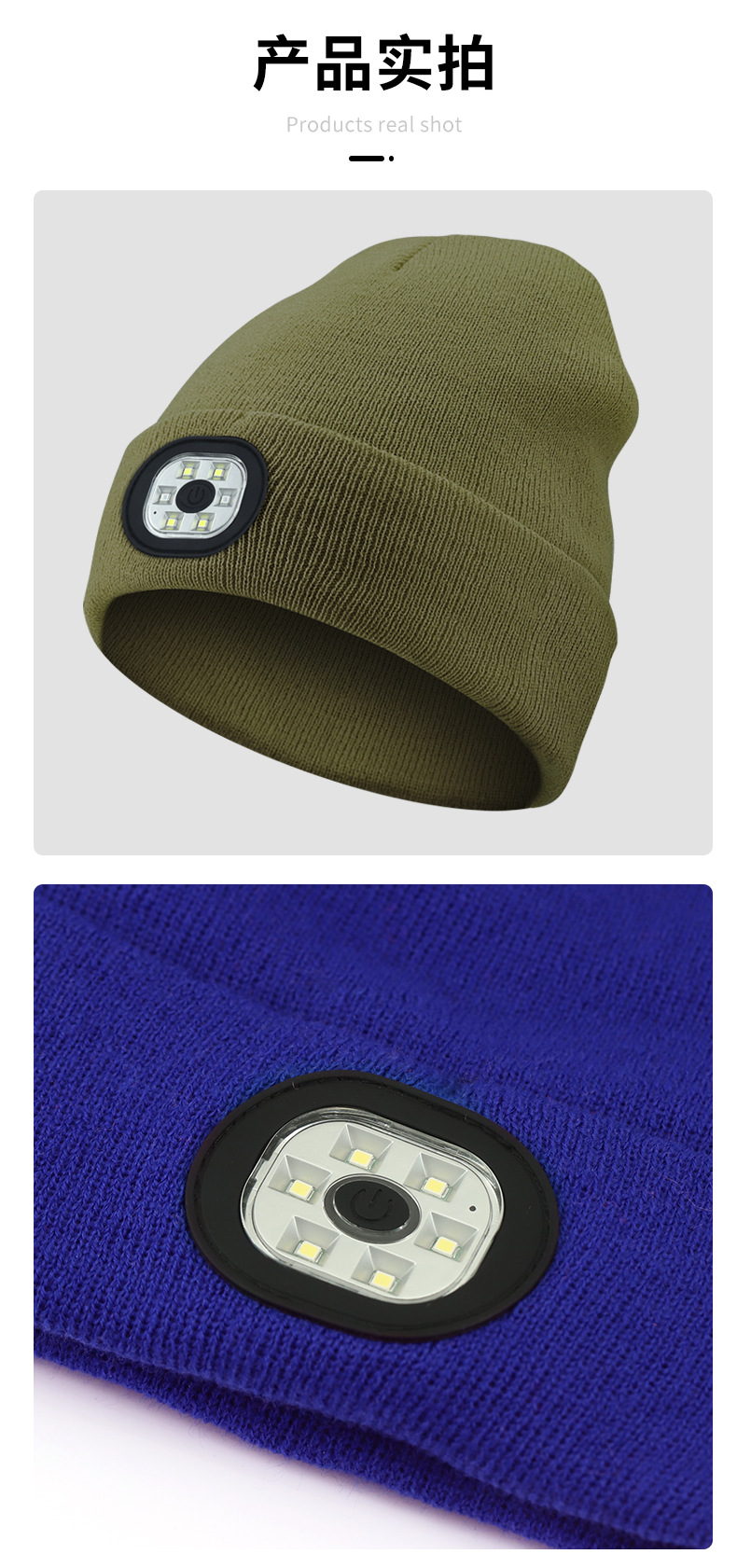 Temu 국경 간 소스 야외 야간 조명 경고 충전식 헤드 착용 LED 라이트 플립 니트 모자