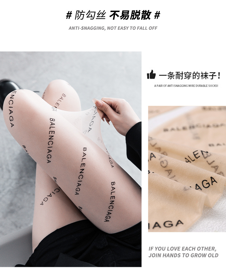블랙 실크 스타킹, 여성스러운 레터링 얇은 스타킹, 흠집 방지, 광택 있는 레그 워머, 누드 느낌의 레깅스 스타킹